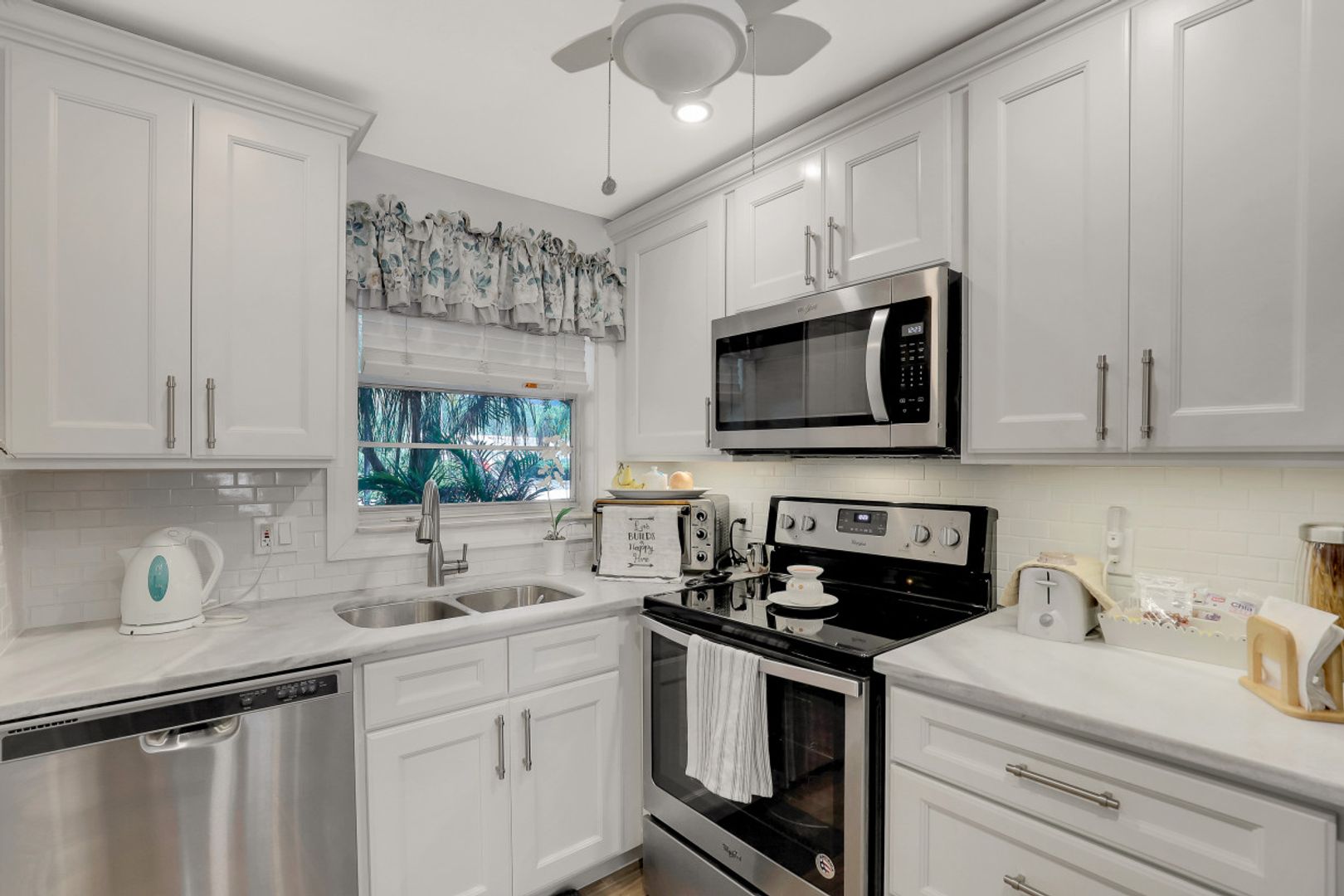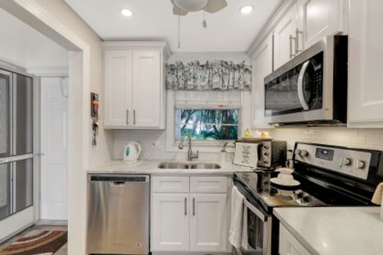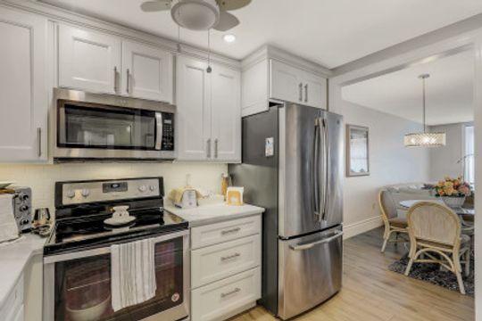Located in Forest Lakes, this cozy 1st-floor condo is ideal for those looking to relax here in Naples Florida. With two beds and two baths, this property is completely updated and ready to be someone’s home. Modern tile flooring and seven-inch white baseboards are throughout the living space. Light grey walls and updated light fixtures give this unit a modern feel. The kitchen has been modernized with quartz countertops, white shaker cabinets, and stainless steel appliances. Master bedroom has an attached ensuite bathroom, including a walk-in tile shower. Enjoy the beautiful golf course and lake views from the enclosed back sunroom that allows direct access to the backyard, as well as the south western exposure, producing perfect sunset views. There are also quite a few amenities provided by the community, such as the clubhouse, community pool, and tennis and pickleball courts. Located off of Pine Ridge, it is only a short distance from Clam Pass Beach, as well as the popular shops and restaurants of Naples located in Waterside and the Mercato. Come see this condo today and begin your life in paradise.