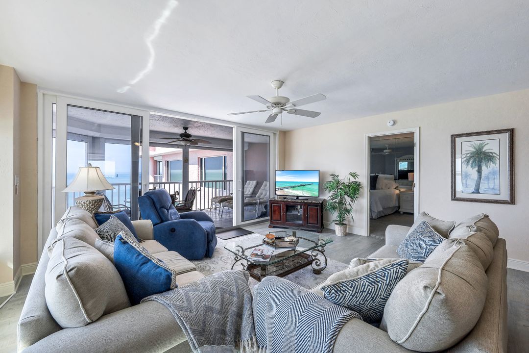 Top Floor unit offering mesmerizing views of the Gulf enhanced by a private beach, sightings of Dolphin, Manatee and incredible boat traffic!! Start your day with majestic sunrises as you enjoy uninterrupted views of the Gulf of Mexico. The unit offers 2 bedrooms + a den and two full bathrooms. All windows and doors have been up graded to impact, new a/c unit and it is offered turnkey for you convenience The Plantation is a gated community which offers a private beach, pool/spa, community room, fitness center, sauna, tennis courts and a beautiful outdoor grilling area with a fire pit. The building is located close to a public beach access and some of Marco Island's finest restaurants.