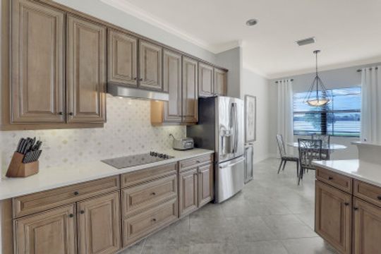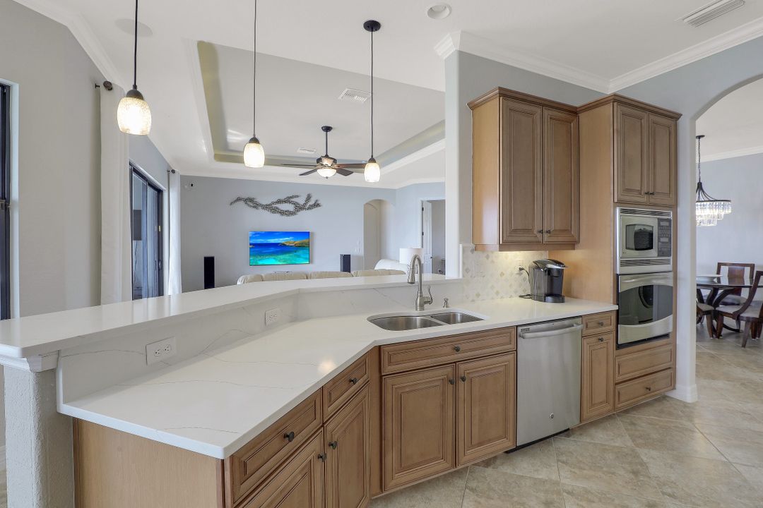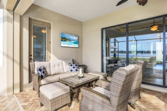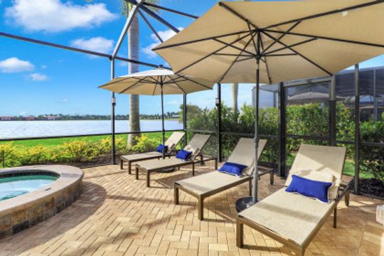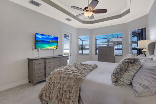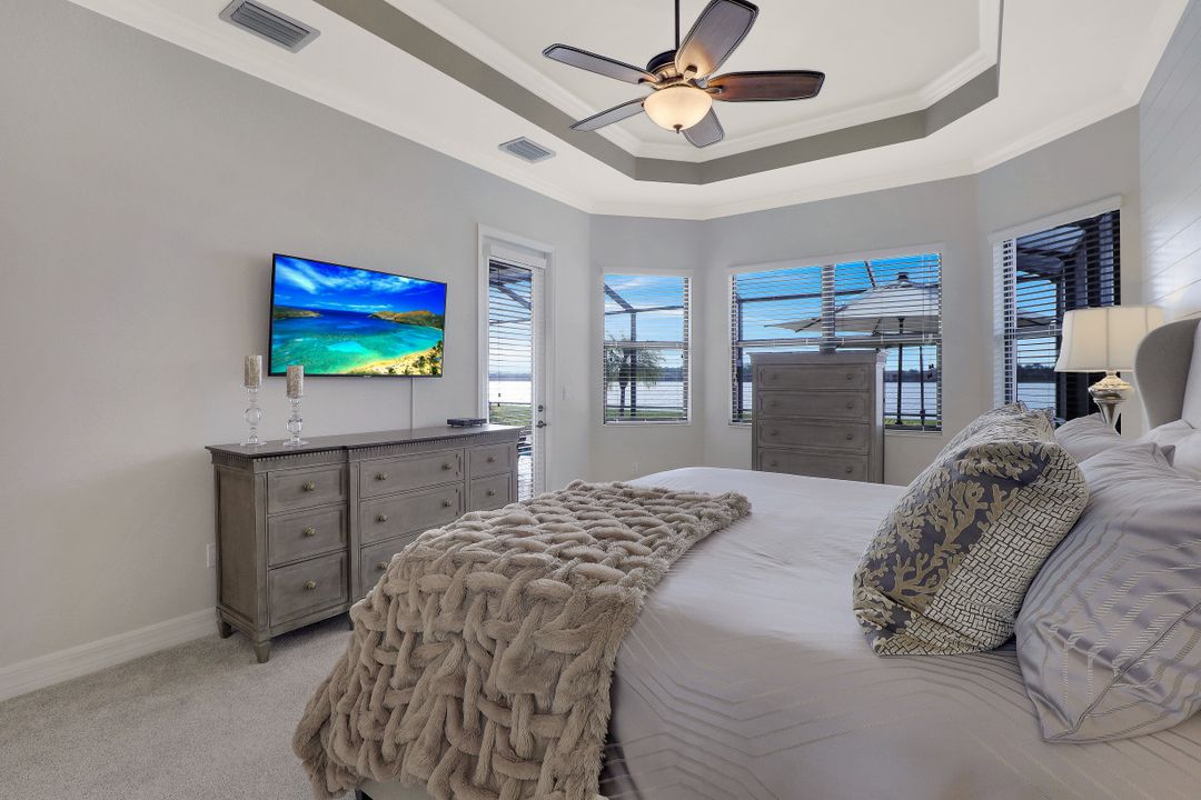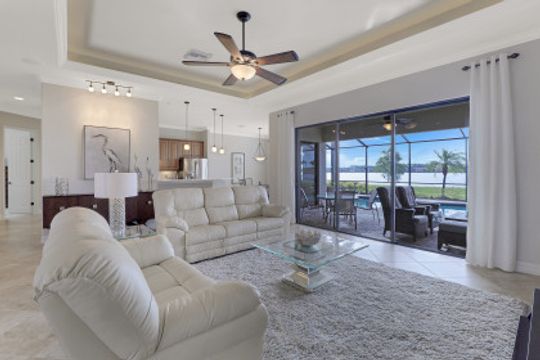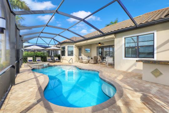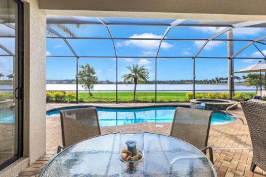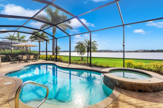 One of only 27 homes on the largest lake in Heritage Bay Golf & Country Club. When you walk through the front door you are greeted with expansive views over a 100 acre lake. Southern exposure make this great room style 3+Den, 2.5 Bath, 3 Car Garage home light & bright 365 days a year. Many recent updates in 2019 include new Quartz countertops and backsplash; fresh interior and exterior paint; new pool cage screens; new pool pump; LED cage lights; upgraded landscaping; 4 cameras; new elongated toilets; UV air filtration system; garage storage shelves; new carpets with upgraded padding in the bedrooms/den; and more! Other notable features include HURRICANE IMPACT WINDOW & DOORS, ELECTRIC ROLL DOWN SHUTTER, outdoor kitchen, crown molding and wall detail molding. HERITAGE BAY offers a 27 Hole Championship Golf Course (FULL GOLF MEMBERSHIP included in Master Dues), resort pool, tennis courts, pickleball courts, pro shop, restaurants, bar, chickee hut, 20,000 sq ft fitness center, & social activities. $10,000,000 Amenity Campus Remodel and Expansion to be completed early 2021. CLUB EXPANSION ASSESSMENT PAID IN FULL!