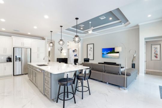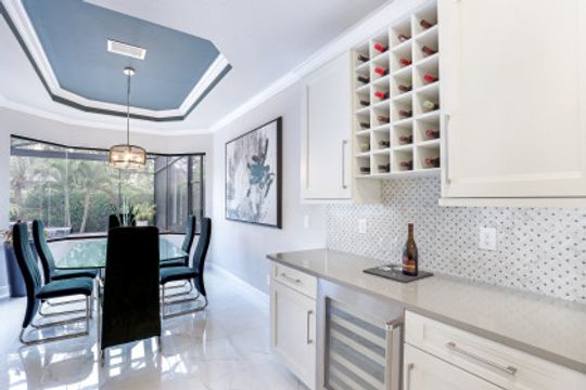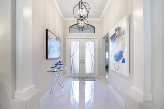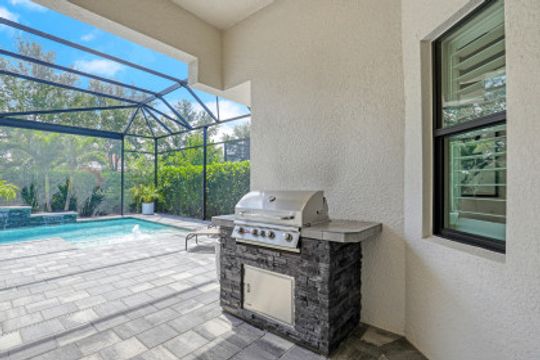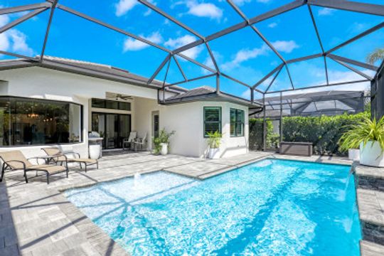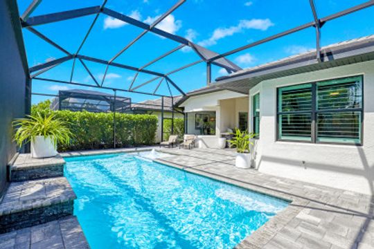 This immaculate Toll Brothers built home is situated in the quaint gated community of Palazzo of Naples - a private enclave of just 85 homes. Built in 2018, this open great room style floorplan home offers 3+Den, 2.5 Baths, oversized two car garage (30'/25'x19') and features a long list of special features and upgrades: HURRICANE IMPACT WINDOWS & DOORS; WHOLE HOUSE GENERATOR & surge protector; GAS heated salt water pool, sunshelf with bubbler & raised waterfall wall with stone accents; picture window screen cage; marble look tile flooring throughout the common areas and baths; heavily upgraded kitchen including the highest levels of materials including quartz countertops, tile backsplash, luxury cabinetry with soft close, extended dry bar, GAS cooktop with range hood, wall oven, and large single basin sink; special order lights & fans; glass front doors; wood floors and wall built-in in the den; plush carpeting in the bedrooms; widened driveway with upgraded pavers; flat tile roof; tankless gas water heater; and more! LOW HOA Fees of just $1,068/Quarter including lawn care. Just 2 min from I75, 15 min to the Beach, 20 min to RSW, 12 min to Mercato, 20 min to Downtown/Olde Naples.