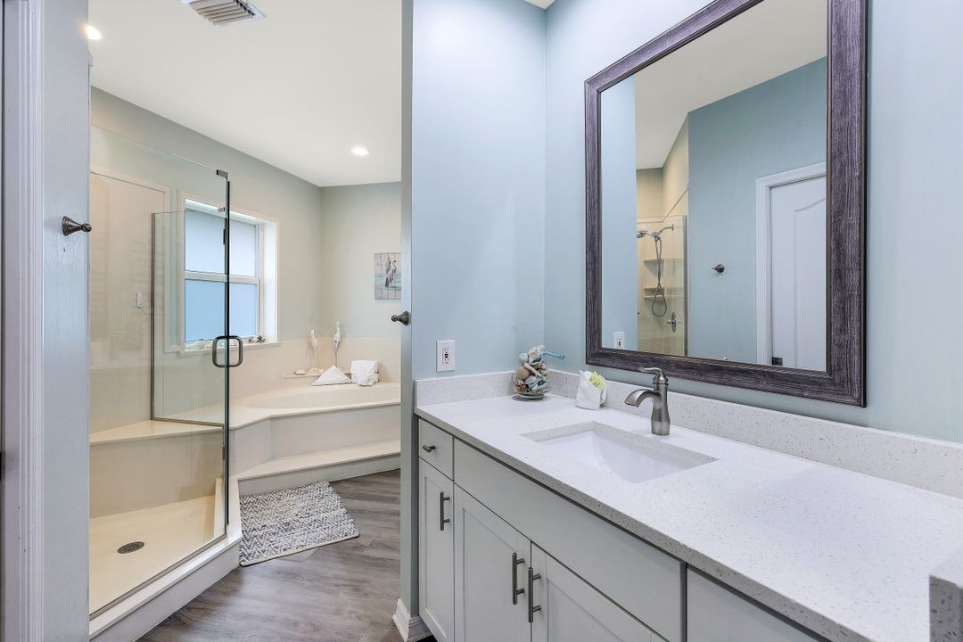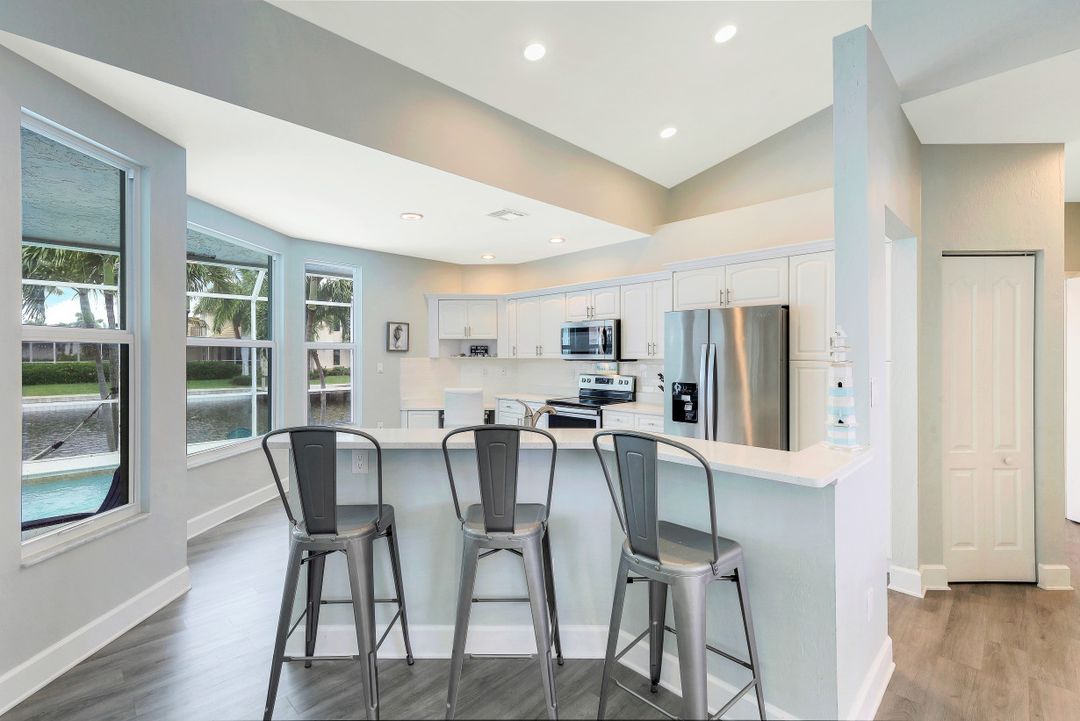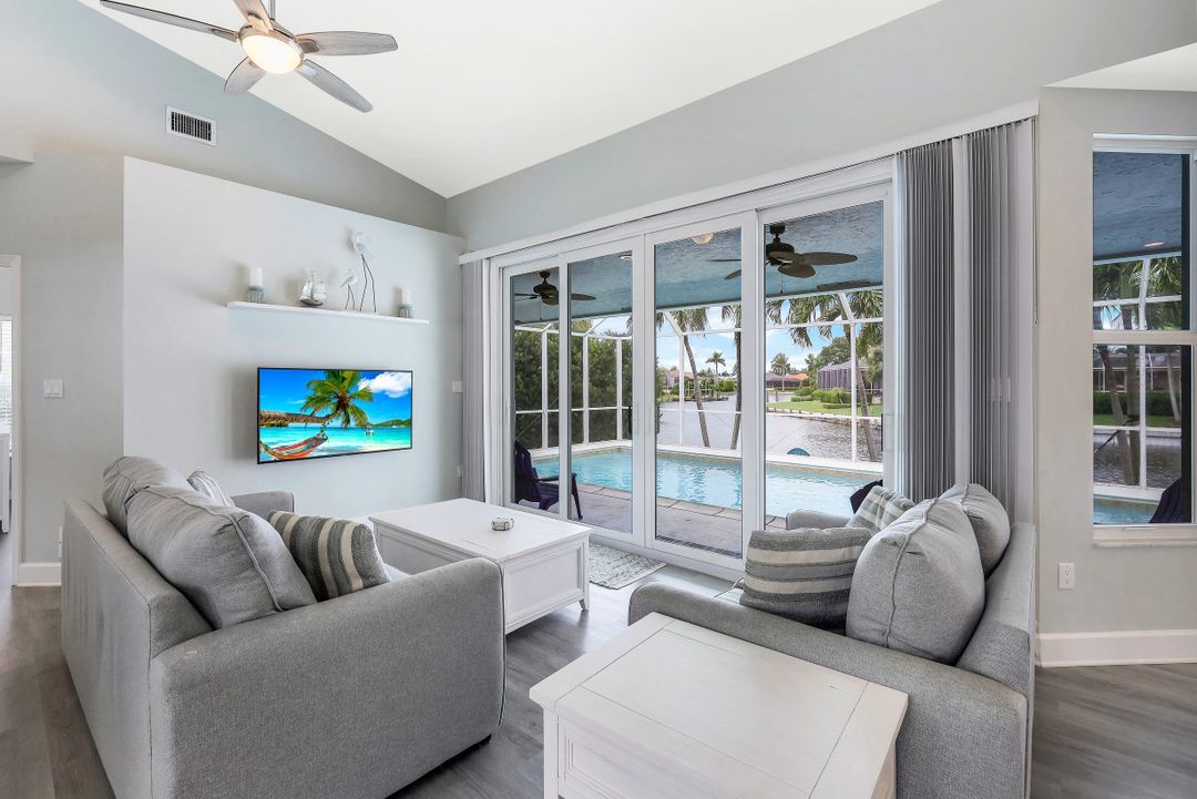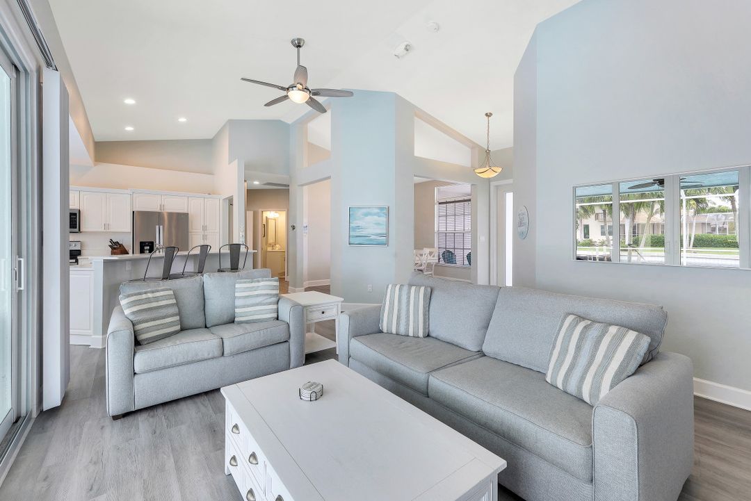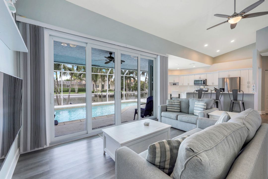 Great opportunity to purchase an updated 4 bedroom, 2 and a 1/2 bath, waterfront home that is only 1/2 mile to Resident’s Beach. This location is ideal for beach-goers and boaters with great access to the Gulf under the Smokehouse Bay bridge with 14+ feet of clearance. With amazing converging waterway views, a new roof, new seawall, all new impact windows/doors, new stainless appliances and a new AC unit, this home is ready to move in now. It also features extra large rooms, a private backyard, screen enclosed heated saltwater pool, security cameras, built in Bluetooth speakers, Ring doorbell and Nest thermostat. It is being sold fully furnished with a coastal chic decor.
