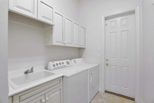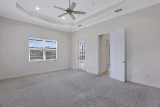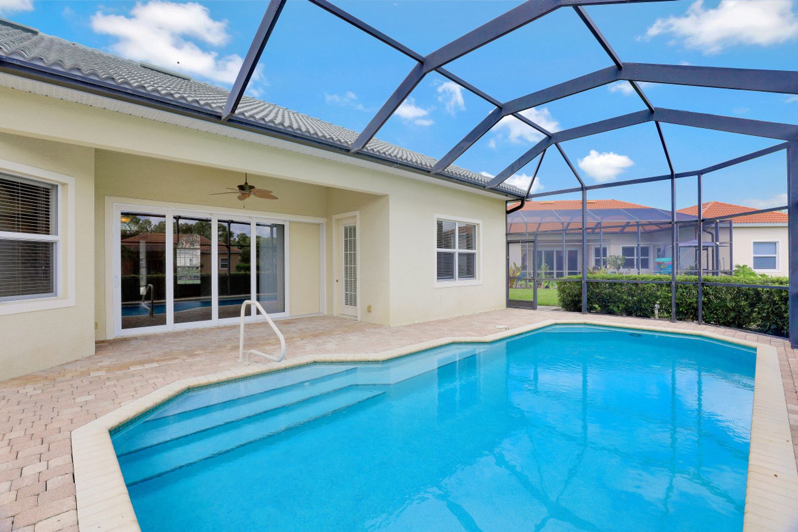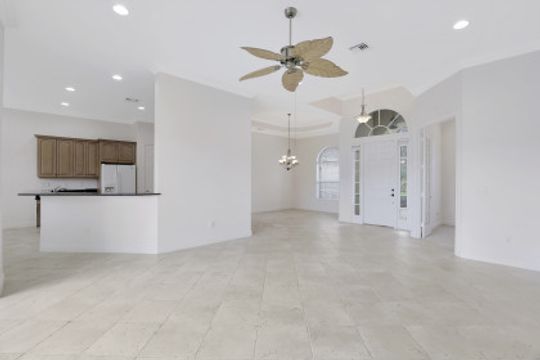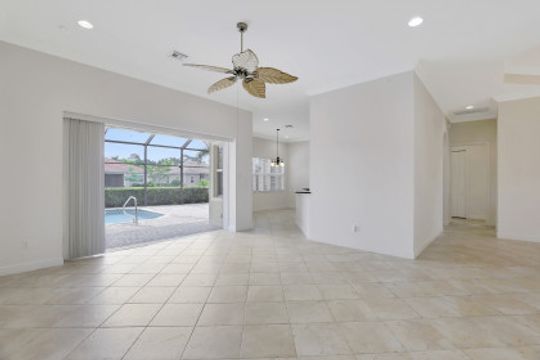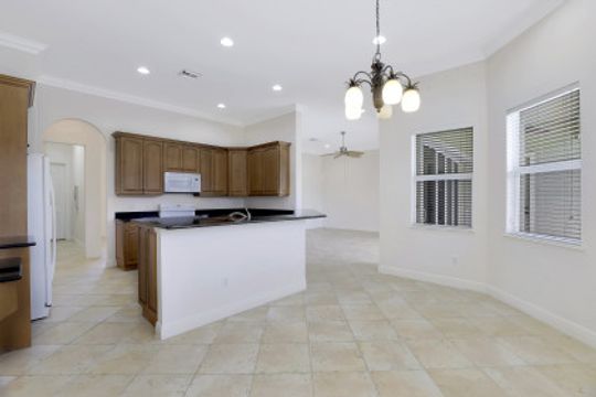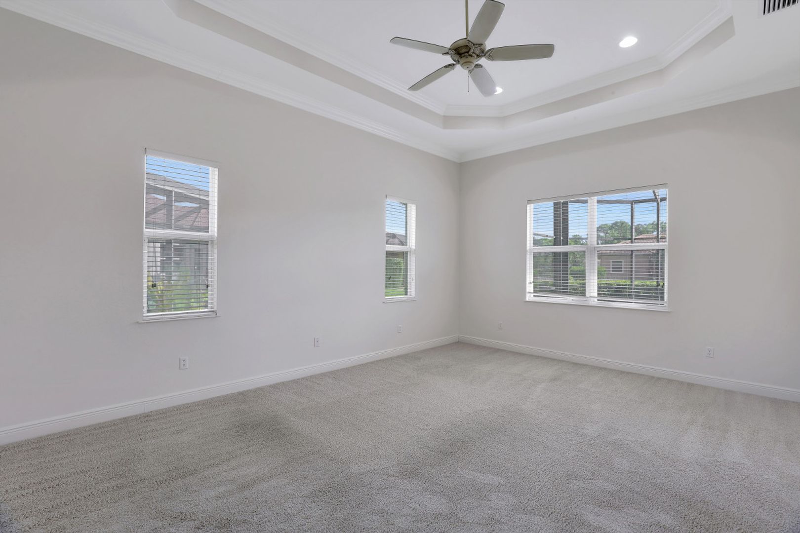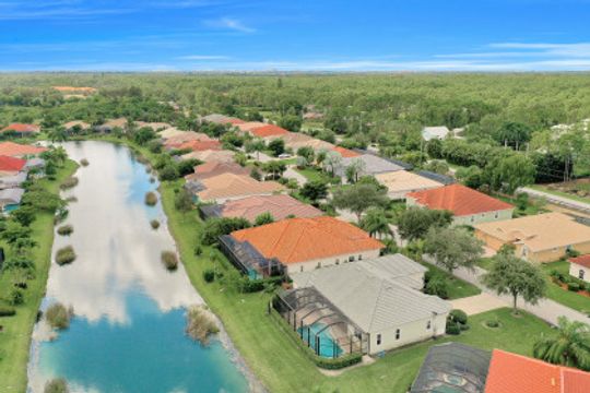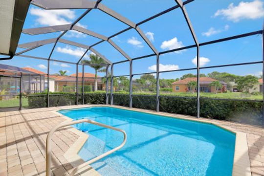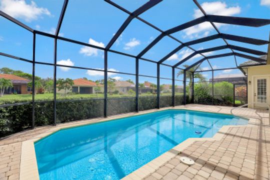This spacious 3 BR + den, 3 BA pool home, located in the beautiful community of Fairwinds, awaits your personal touch! Upon entering the foyer, you will be impressed by the great room where dining, kitchen & living areas are all open to one another. Sliding glass doors lead out to a a covered lanai w/a large pool that overlooks the lake & fountain. Tray ceilings in DR & MBR along w/crown molding throughout, add a touch of refinement to this lovely home. The layout of this home offers split BRs for extra privacy, plus a den w/French doors, which could be utilized as a home office or 4th BR. The expansive MBR suite has his & her walk-in closets, a jetted spa tub, walk in shower, dual sinks & large windows which offer so much natural light. Diagonal porcelain tile throughout main living area, carpet in den & 2nd BR, wood floors in 3rd BR. This open concept home boasts a large eat-in-kitchen overlooking the pool & lake. Upgraded granite counter-tops w/extended breakfast bar, & oak cabinets. Large laundry room w/ closet for extra storage -- there is even a laundry sink! Perfect location in Bonita Springs, close to Gulf beaches, shopping, & fine dining. Minutes to the Intl. Airport!