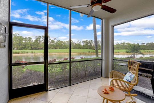 THE BEST VALUE IN NAPLES! This immaculate 2 Bedroom, 2 Bath "Brookside" model condo is located in one North Naples' most desirable RESORT STYLE country club communities, Heritage Bay. A FULL GOLF MEMBERSHIP is included with this property with access to a 27 hole championship golf course and the recently remodeled "Club at Heritage Bay" which offers: resort pool with beach entrance; pool side bar & grille; formal & informal dining rooms; 7 tennis courts; bocce courts; pickle ball courts; 8,000 sq ft fitness center; tennis & golf pro shoppes; activities director; and social events galore! This FIRST FLOOR CONDO comes FURNISHED and offers sweeping and peaceful views overlooking the lake, golf course, and preserve. Fine appointments include: hurricane impact windows/doors; diagonal tile throughout the common areas & baths; storage closet; covered dedicated parking space; and more! Reasonable dues of $11,584/year which includes FULL golf & club privileges, cable TV, internet, water, sewer, building insurance, building maintenance, 24/7 manned gate, 5 satellite pools throughout the community, and all common ground maintenance. Assessment for Club Renovation Project has been paid in full!