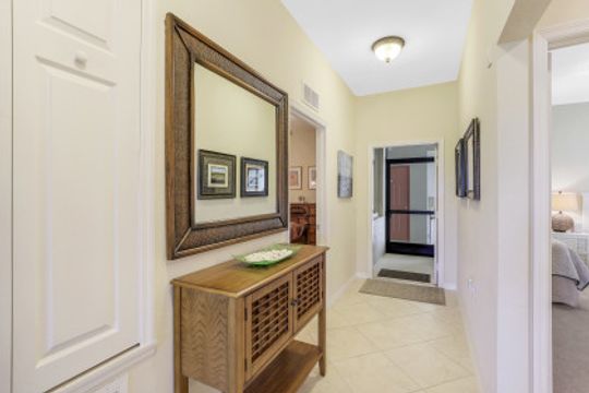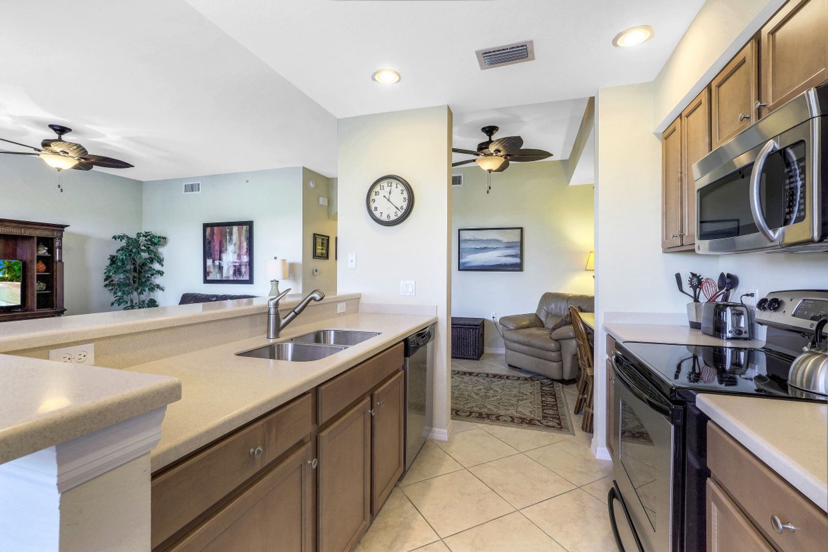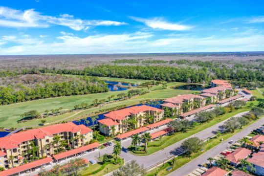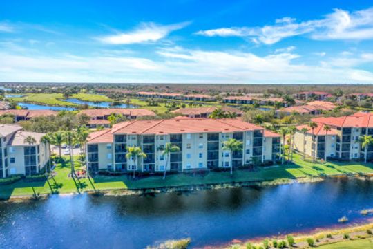 THE BEST VALUE IN NAPLES! This immaculate 2 Bedroom, 2 Bath "Brookside" model condo is located in one North Naples' most desirable RESORT STYLE country club communities, Heritage Bay. A FULL GOLF MEMBERSHIP is included with this property with access to a 27 hole championship golf course and the recently remodeled "Club at Heritage Bay" which offers: resort pool with beach entrance; pool side bar & grille; formal & informal dining rooms; 7 tennis courts; bocce courts; pickle ball courts; 8,000 sq ft fitness center; tennis & golf pro shoppes; activities director; and social events galore! This TURNKEY third floor condo (common elevator) offers sweeping and peaceful views overlooking the lake, golf course, and preserve. Fine appointments include: hurricane impact windows/doors; 2.5 year old AC; diagonal tile throughout the common areas & baths; storage closet; covered dedicated parking space; and more! Reasonable dues of $11,584/year which includes FULL golf & club access, cable TV, internet, water, sewer, building insurance, building maintenance, 24/7 manned gate, 5 satellite pools throughout the community, and all common ground maintenance.