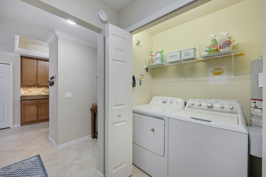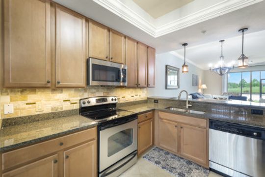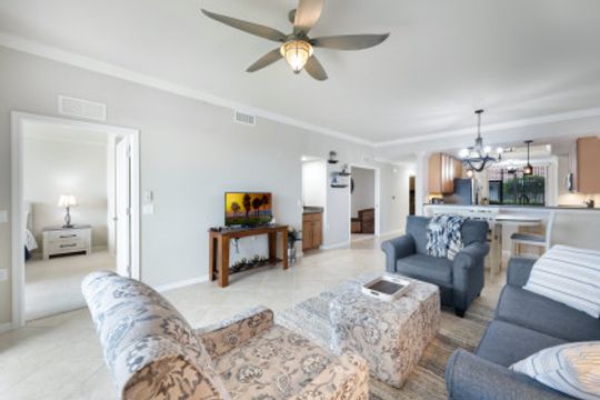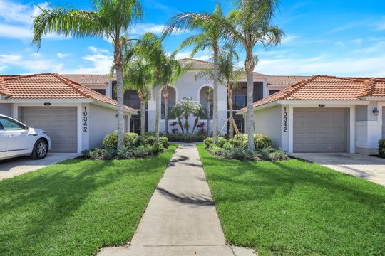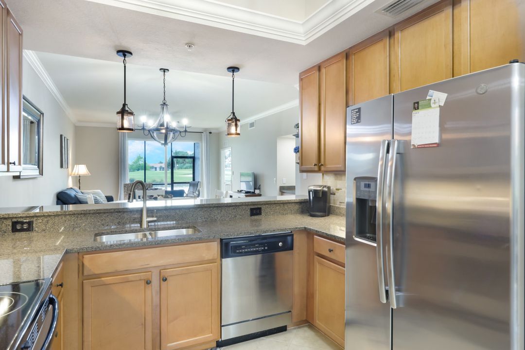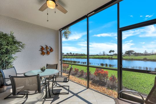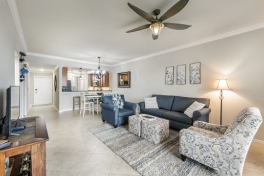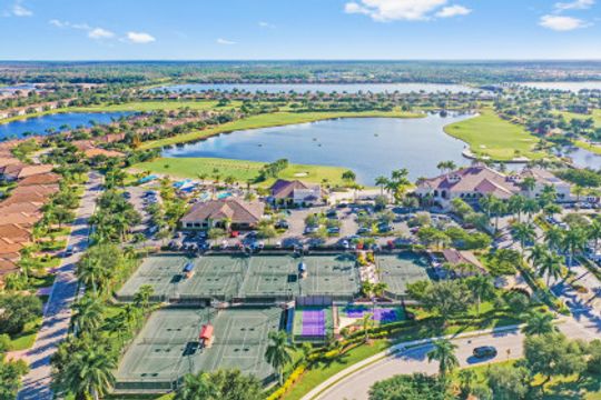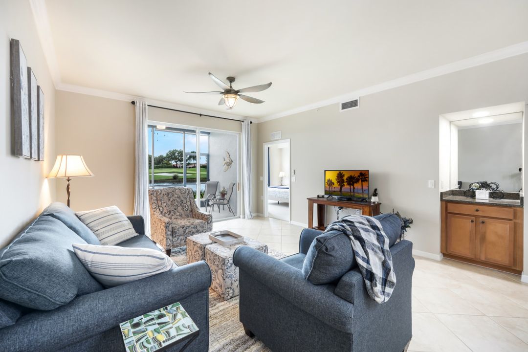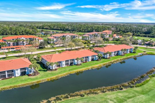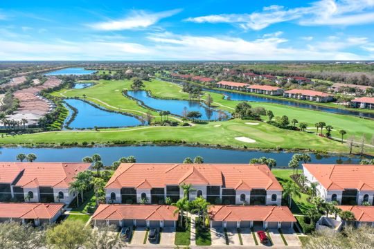 LIVE A VACATION LIFESTYLE IN ONE OF THE BEST BUNDLED GOLF COMMUNITIES IN NAPLES! GOLF MEMBERSHIP INCLUDED! This pristine 2 bedroom plus Den/Home Office or 3rd Bedroom, Barrington Model is being offered TURNKEY. Enjoy the convenience of living on the 1st floor with one of the best views in the community overlooking the golf course and lake. Enjoy the gorgeous Naples sunsets from your screened lanai (one of two screened in Tile lanai's.) There is also a detached one car garage for storage. The light and bright kitchen features stainless steel appliances and granite countertops. A long list of Enhancements/Special Features include NEW HVAC (2023), NEW WATER HEATER (2023), WASHER (2021) DRYER (2022), PAINTED INTERIOR (2023), Crown Molding, Diagonal Tile, Upgraded Light Fixtures including Pendants lights in kitchen, New Garbage Disposal, 4 Upgraded ceiling fans, Linen nook in Owners Bath, WIFI thermostat, keyless entry plus more! Heritage Bay is a gated community which offers a 27-hole championship Golf Course, Resort pool, Cabana pool/Restaurant, 5 Satellite Pools Clubhouse offers fine dining and events, Tennis, Pickleball, Bocce Ball, Wellness Center.