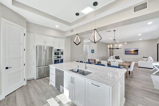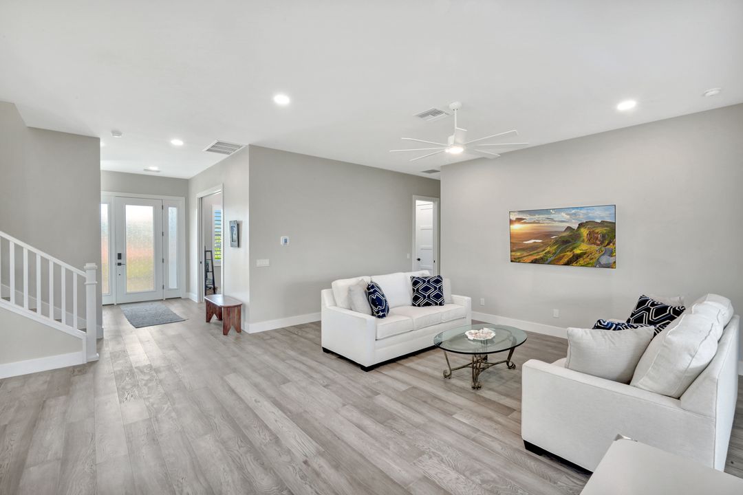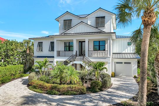 Welcome to 1044 Fish Crow Road — a newly built (2024), custom-designed coastal masterpiece on Sanibel Island. Crafted by renowned architect Wright Jenkins and constructed by the distinguished Benchmark General Contractor, this 4-bedroom + den, 3.5-bathroom pool home delivers exceptional quality, sophistication, and functionality in one of the island’s most desirable locations. Located in the coveted Gulf Shores community, residents enjoy a short 5-minute walk to a private deeded beach access—leading to one of the most pristine and secluded stretches of shoreline anywhere in Florida. Built to meet the latest building codes for maximum longevity and performance, this home offers concrete construction, pre-cast reinforced concrete slab flooring on the first level, and elevated structural engineering throughout. A private elevator services all three floors, providing effortless access throughout. Inside, the home showcases a bright coastal-modern design, highlighted by soaring ceilings, engineered hardwood flooring, and an abundance of natural light. The expansive chef’s kitchen is equipped with luxury stainless appliances, custom cabinetry, and a large center island perfect for entertaining. The spacious owner’s suite offers a peaceful retreat with a spa-inspired bathroom, walk-in closet, and serene views. Additional guest suites provide comfort and privacy for family and visitors. Outdoor living shines with the oversized caged pool area, ideal for enjoying Sanibel’s breezes year-round. A whole-house generator adds peace of mind, along with impact-rated windows and doors throughout. Every detail of this home reflects thoughtful design, premium craftsmanship, and timeless coastal living. A rare opportunity to own a newly built luxury residence just steps from the Gulf.