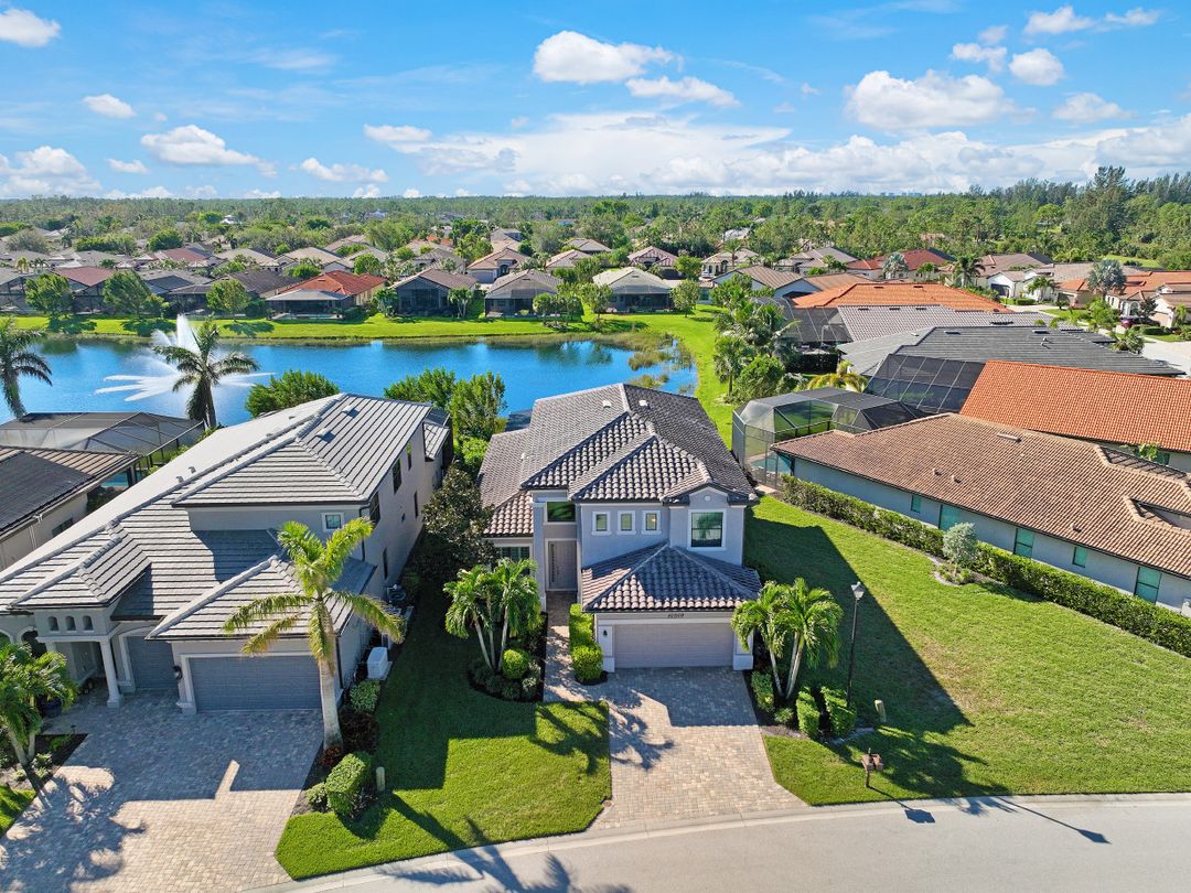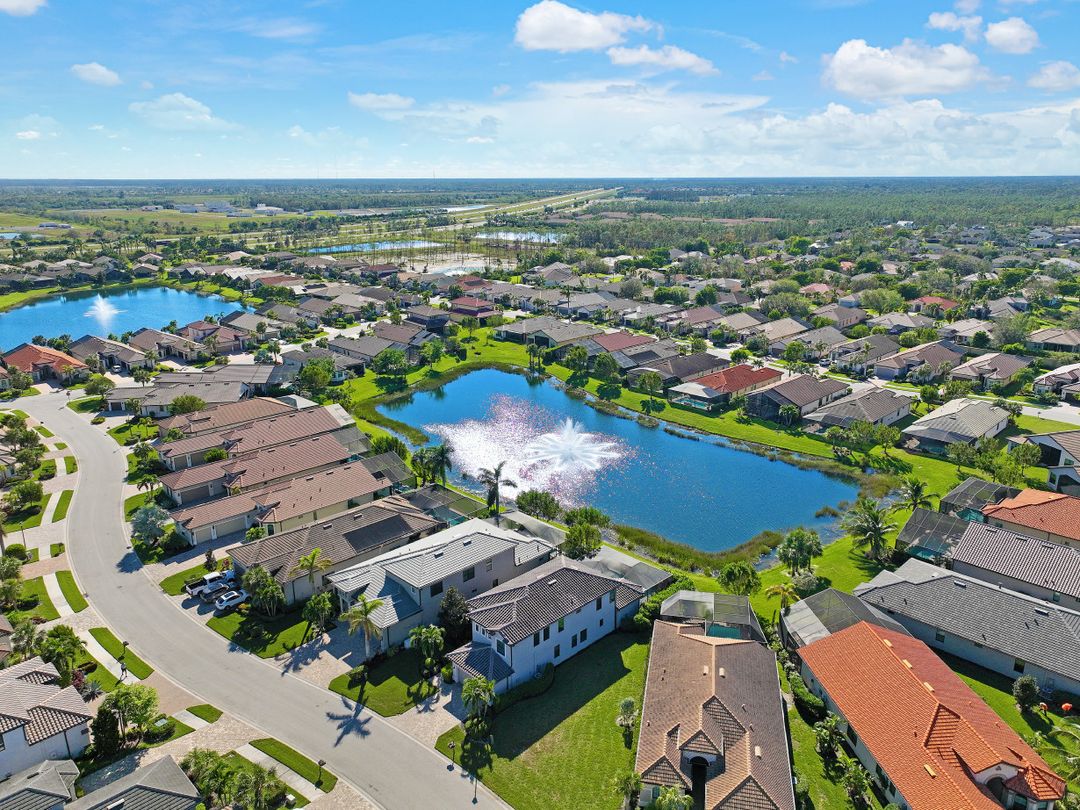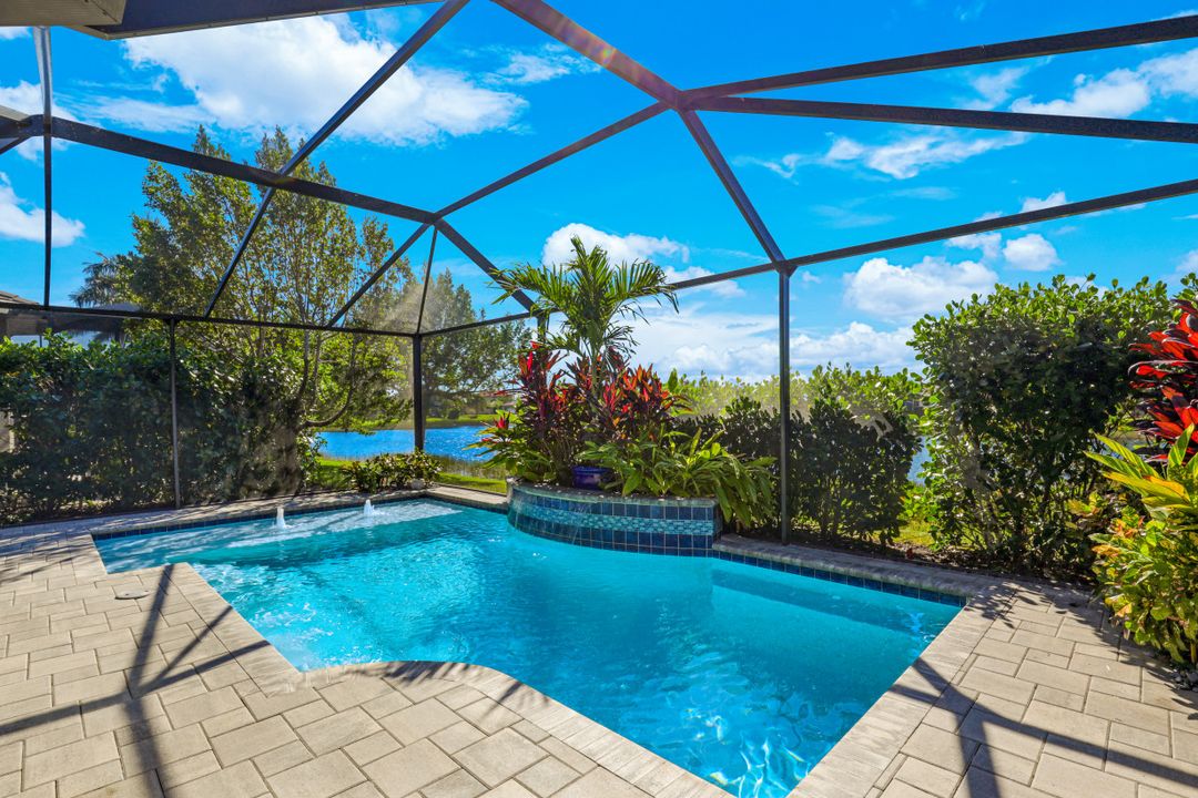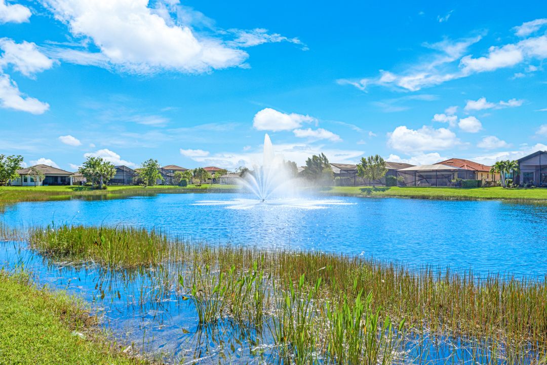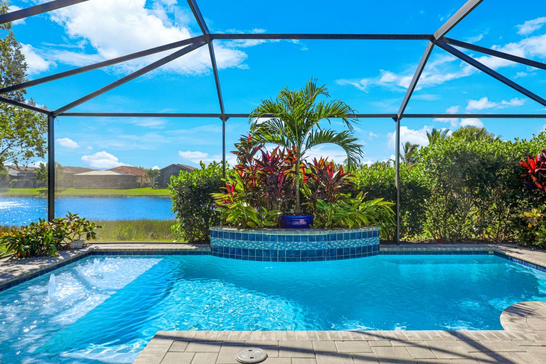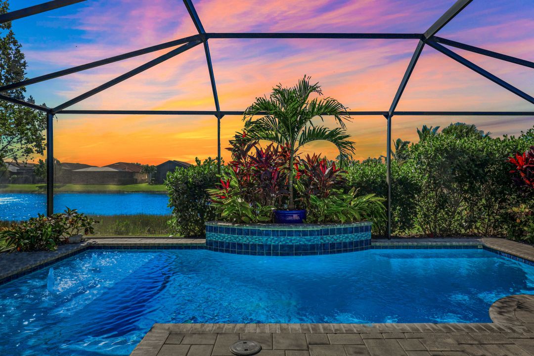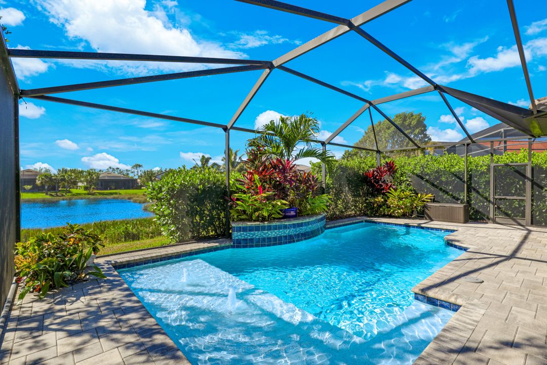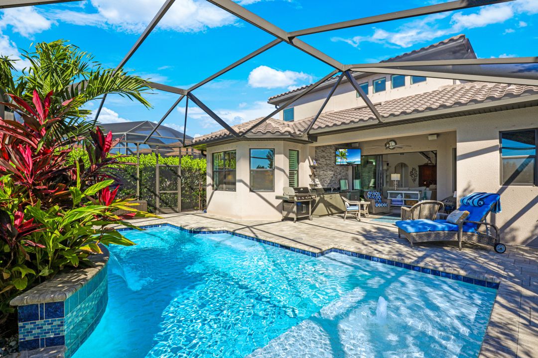 This beautifully appointed home by Toll Brothers offers attention to detail and upgrades, with South facing lanai to enjoy sunny lake views while listening to music from surround sound! Spacious primary suite, guest bedroom ensuite, and office on the first level complement the upstairs 2 bedrooms, full bath and game room plus loft, creating 6 sleeping areas to host family and friends during the holiday season! The kitchen offers full-size double convection ovens, gas cooktop, glass tile backsplash, 42” shaker cabinets with soft close, over/under cabinet lighting, wine fridge, and large 10’7” granite island with 3 sets of double door storage cabinets underneath. Backyard OASIS has salt-water pool with sun shelf and spa jets, gas BBQ grill and prep area with built-in ice maker and cooler, TV, stone wall, POOL BATH and numerous tropical plants, all surrounded by private calucia hedge. Two AC zones, ceiling fans, and tinted windows keep you cool year-round. The garage has storage shelves, mini split AC, and extra 4’ in depth to fit full-size SUV. Surge protection, gutters on all sides, tankless water heater, and more make this the perfect home for your family! See Property Video.
