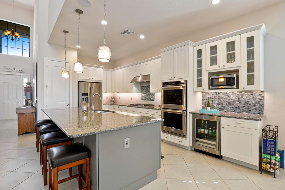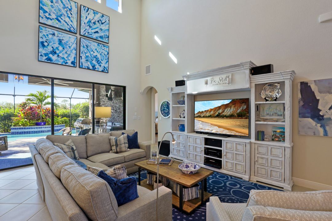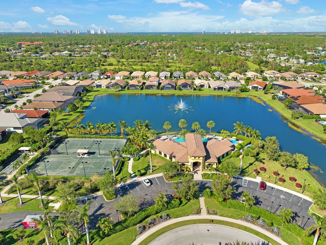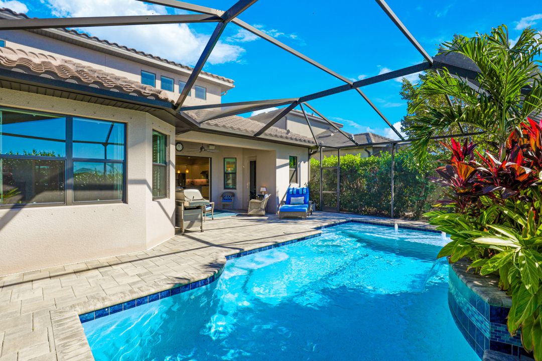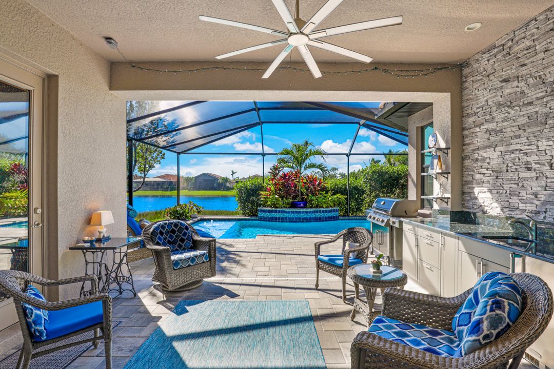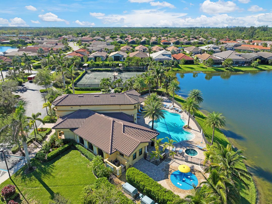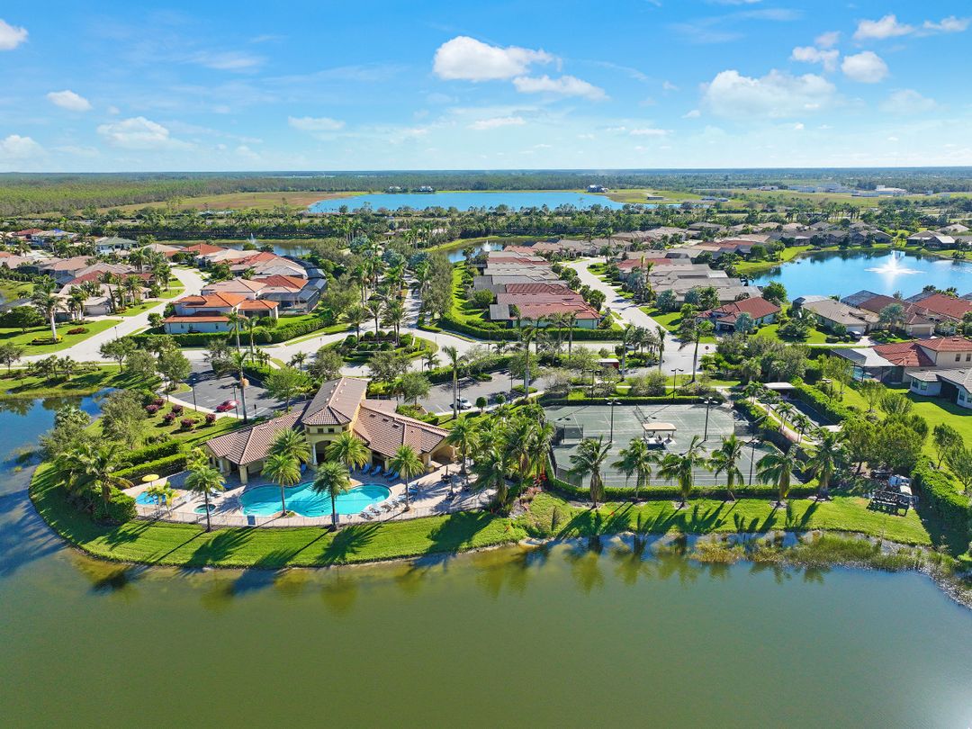 This beautifully appointed home by Toll Brothers offers attention to detail and upgrades, with South facing lanai to enjoy sunny lake views while listening to music from surround sound! Spacious primary suite, guest bedroom ensuite, and office on the first level complement the upstairs 2 bedrooms, full bath and game room plus loft, creating 6 sleeping areas to host family and friends during the holiday season! The kitchen offers full-size double convection ovens, gas cooktop, glass tile backsplash, 42” shaker cabinets with soft close, over/under cabinet lighting, wine fridge, and large 10’7” granite island with 3 sets of double door storage cabinets underneath. Backyard OASIS has salt-water pool with sun shelf and spa jets, gas BBQ grill and prep area with built-in ice maker and cooler, TV, stone wall, POOL BATH and numerous tropical plants, all surrounded by private calucia hedge. Two AC zones, ceiling fans, and tinted windows keep you cool year-round. The garage has storage shelves, mini split AC, and extra 4’ in depth to fit full-size SUV. Surge protection, gutters on all sides, tankless water heater, and more make this the perfect home for your family! See Property Video.