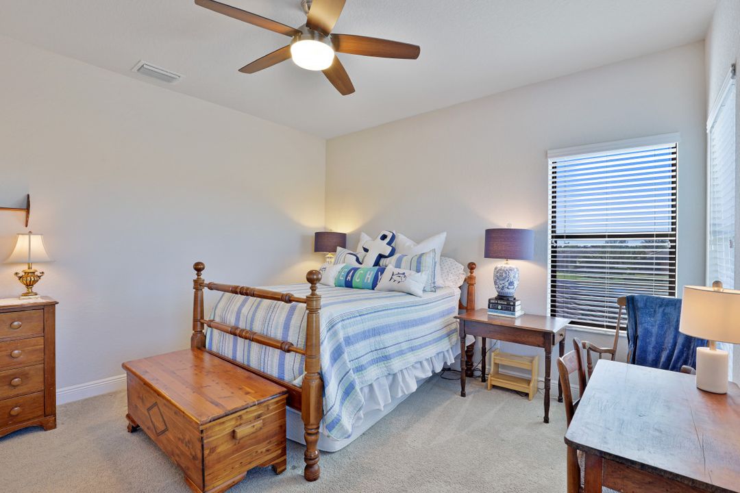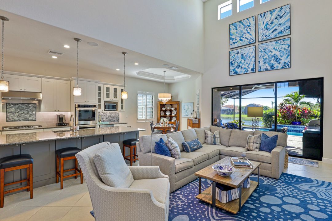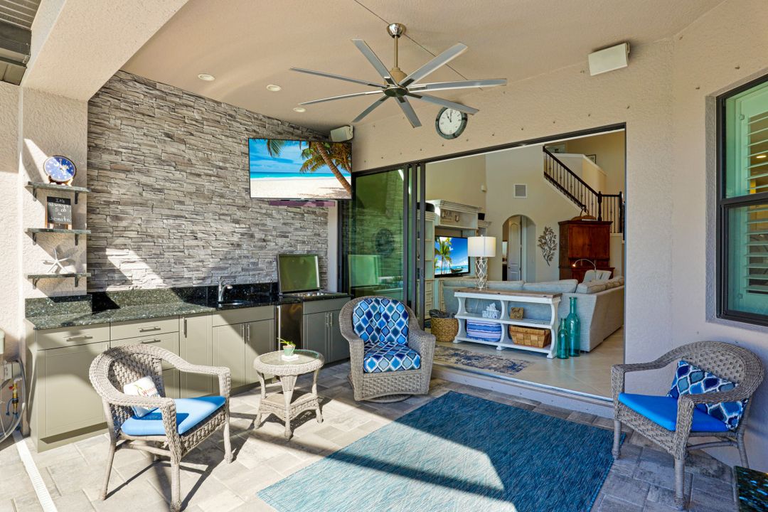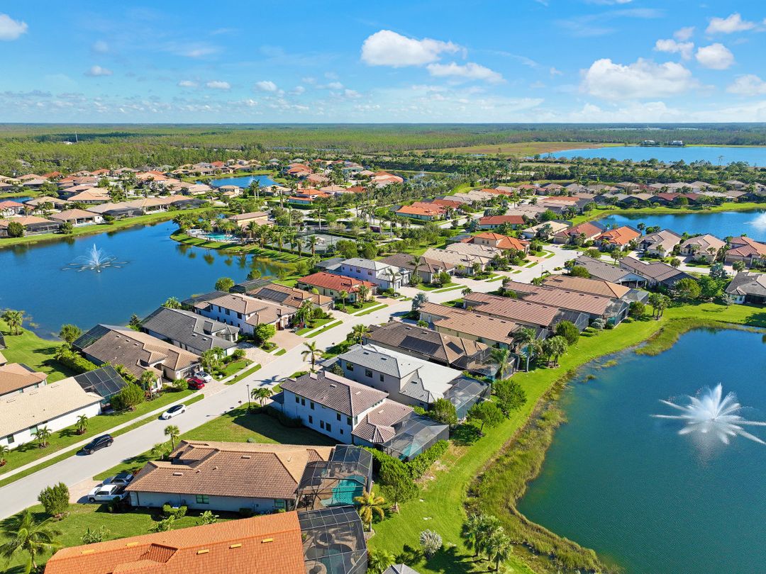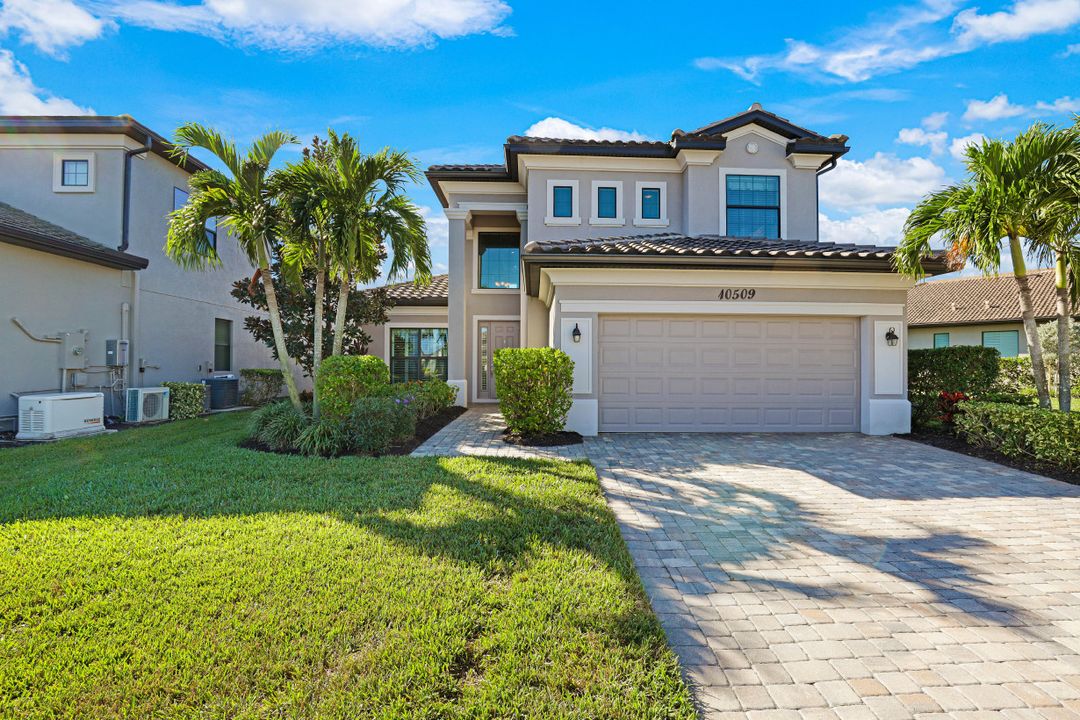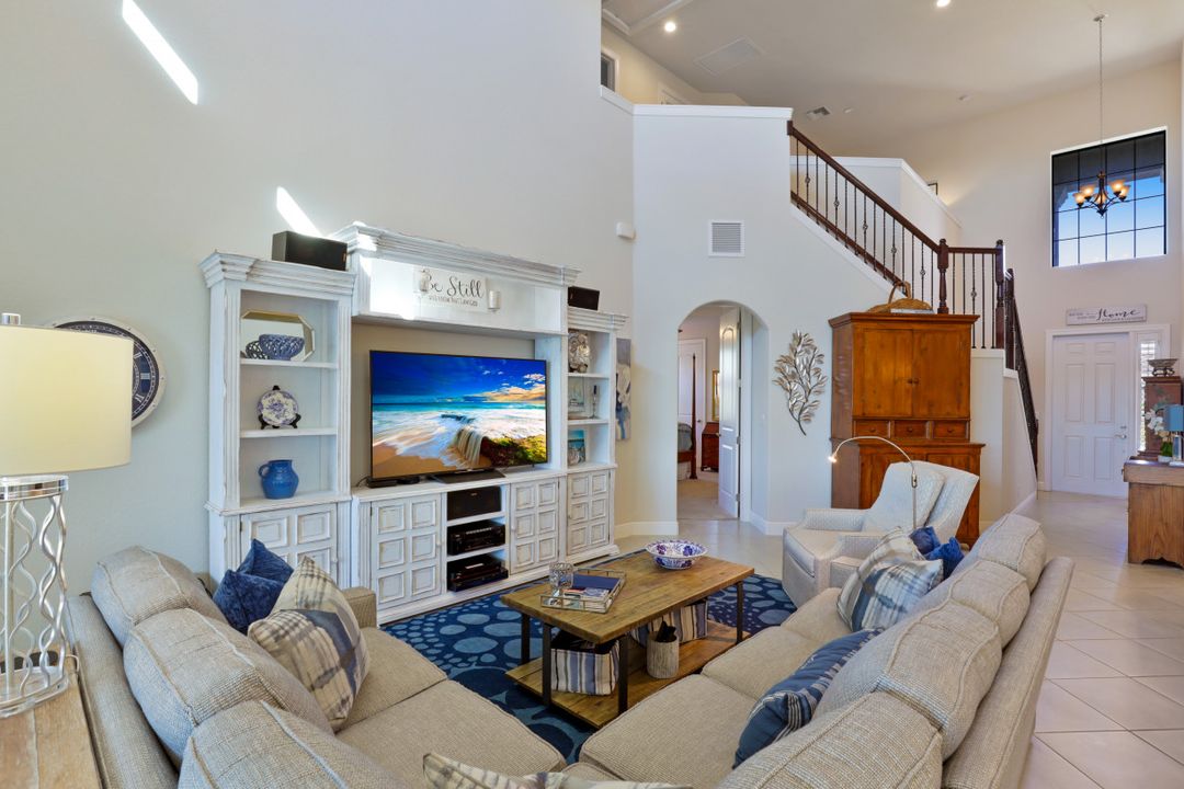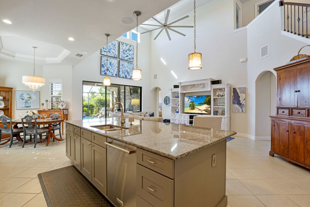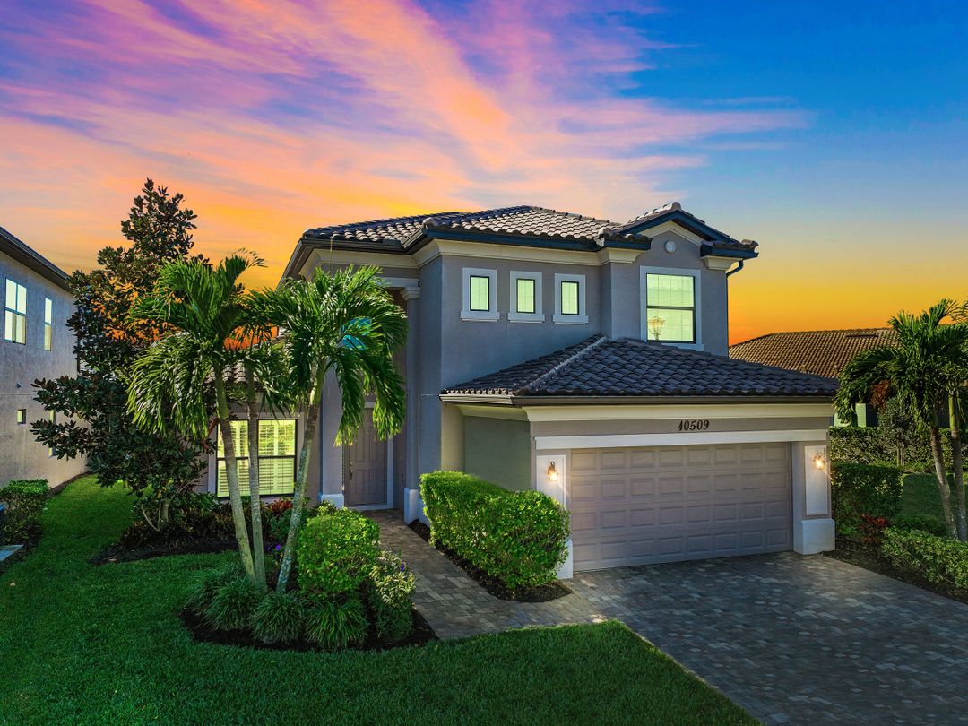 This beautifully appointed home by Toll Brothers offers attention to detail and upgrades, with South facing lanai to enjoy sunny lake views while listening to music from surround sound! Spacious primary suite, guest bedroom ensuite, and office on the first level complement the upstairs 2 bedrooms, full bath and game room plus loft, creating 6 sleeping areas to host family and friends during the holiday season! The kitchen offers full-size double convection ovens, gas cooktop, glass tile backsplash, 42” shaker cabinets with soft close, over/under cabinet lighting, wine fridge, and large 10’7” granite island with 3 sets of double door storage cabinets underneath. Backyard OASIS has salt-water pool with sun shelf and spa jets, gas BBQ grill and prep area with built-in ice maker and cooler, TV, stone wall, POOL BATH and numerous tropical plants, all surrounded by private calucia hedge. Two AC zones, ceiling fans, and tinted windows keep you cool year-round. The garage has storage shelves, mini split AC, and extra 4’ in depth to fit full-size SUV. Surge protection, gutters on all sides, tankless water heater, and more make this the perfect home for your family! See Property Video.