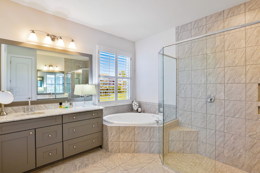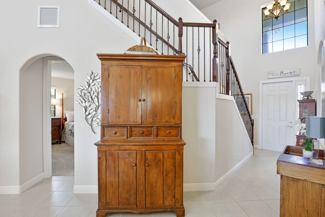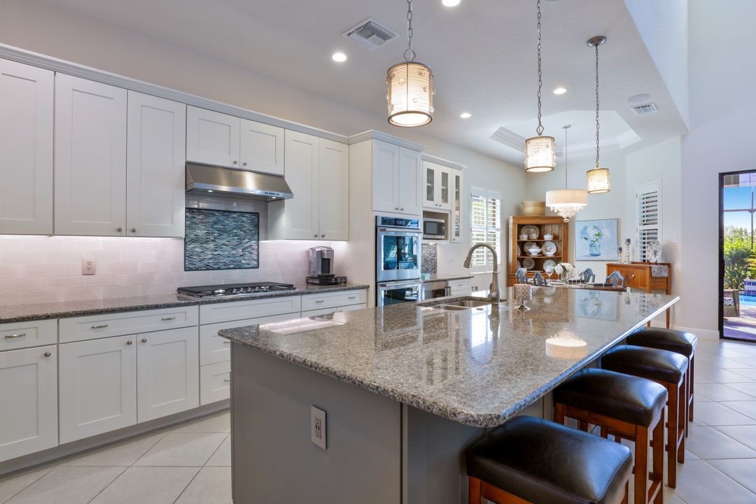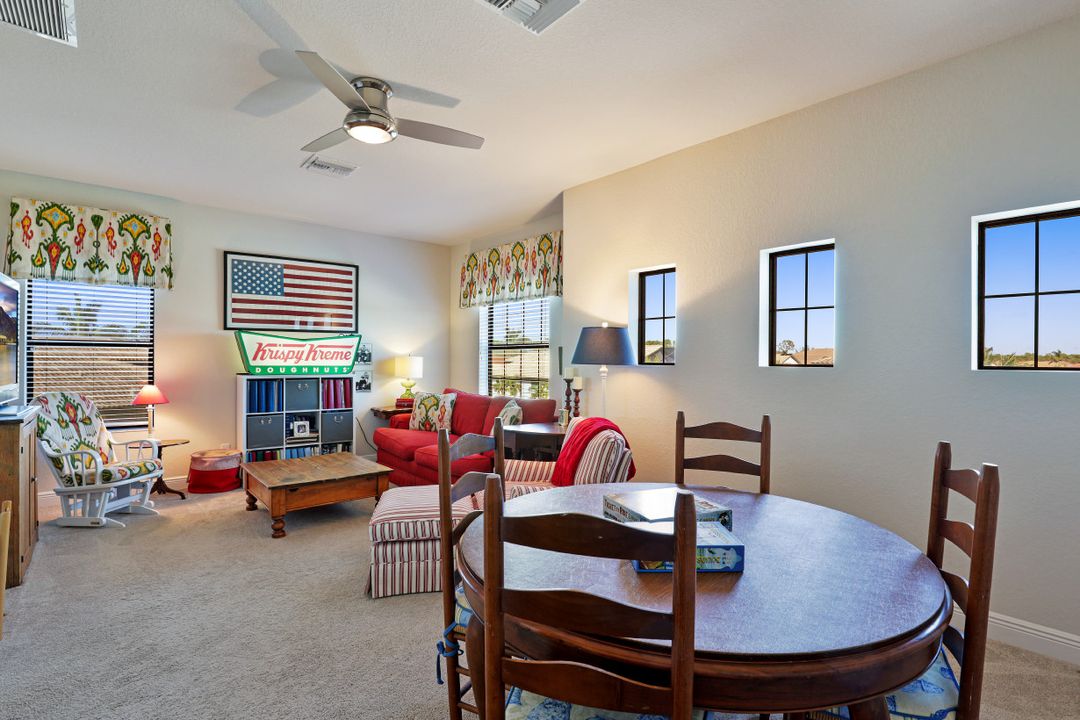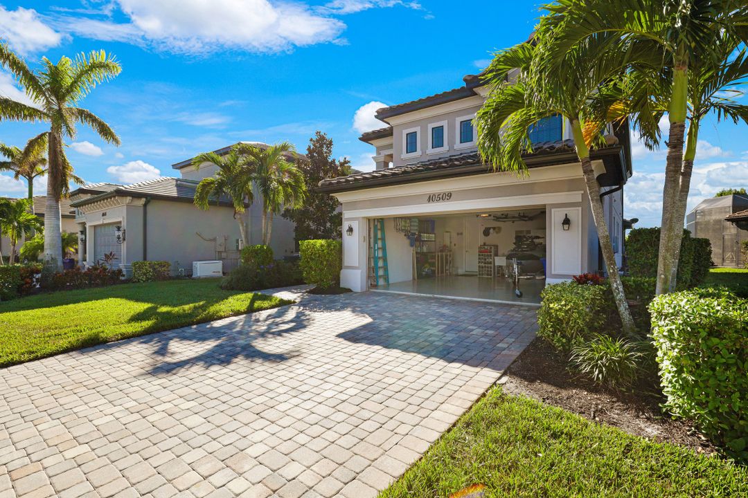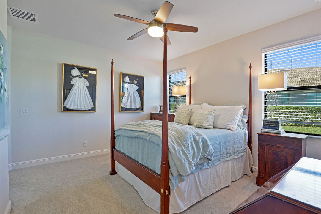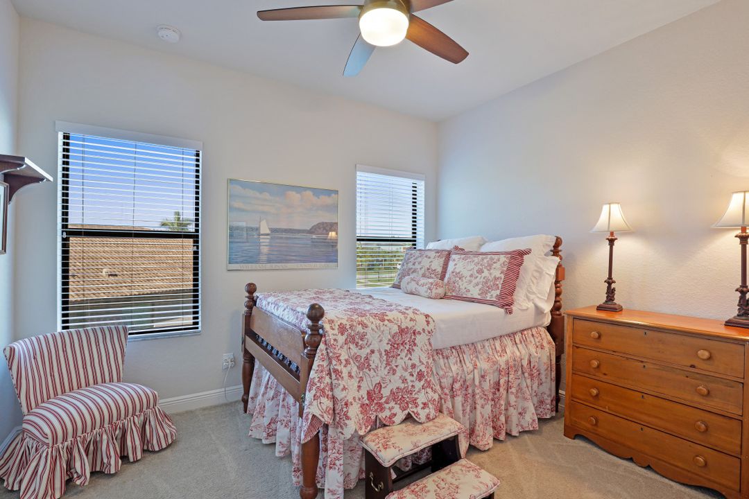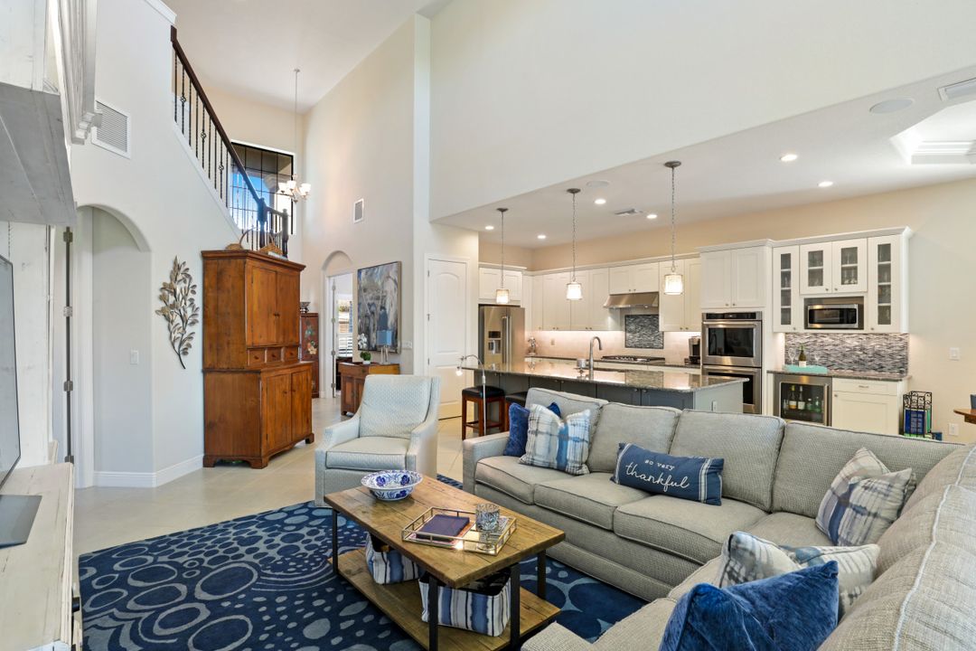 This beautifully appointed home by Toll Brothers offers attention to detail and upgrades, with South facing lanai to enjoy sunny lake views while listening to music from surround sound! Spacious primary suite, guest bedroom ensuite, and office on the first level complement the upstairs 2 bedrooms, full bath and game room plus loft, creating 6 sleeping areas to host family and friends during the holiday season! The kitchen offers full-size double convection ovens, gas cooktop, glass tile backsplash, 42” shaker cabinets with soft close, over/under cabinet lighting, wine fridge, and large 10’7” granite island with 3 sets of double door storage cabinets underneath. Backyard OASIS has salt-water pool with sun shelf and spa jets, gas BBQ grill and prep area with built-in ice maker and cooler, TV, stone wall, POOL BATH and numerous tropical plants, all surrounded by private calucia hedge. Two AC zones, ceiling fans, and tinted windows keep you cool year-round. The garage has storage shelves, mini split AC, and extra 4’ in depth to fit full-size SUV. Surge protection, gutters on all sides, tankless water heater, and more make this the perfect home for your family! See Property Video.