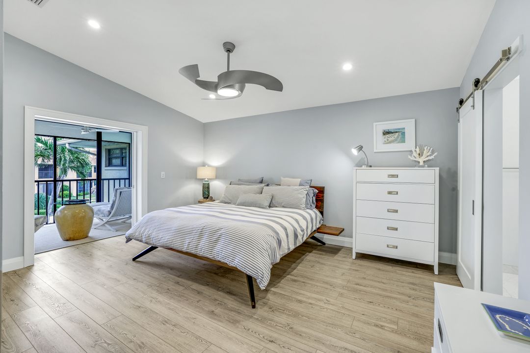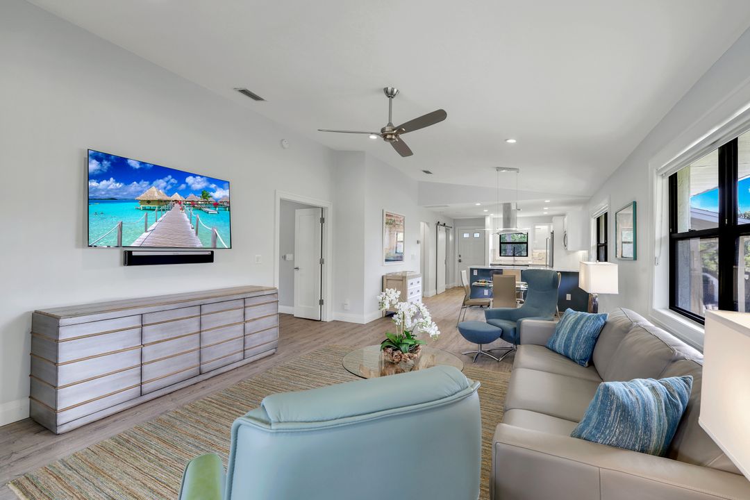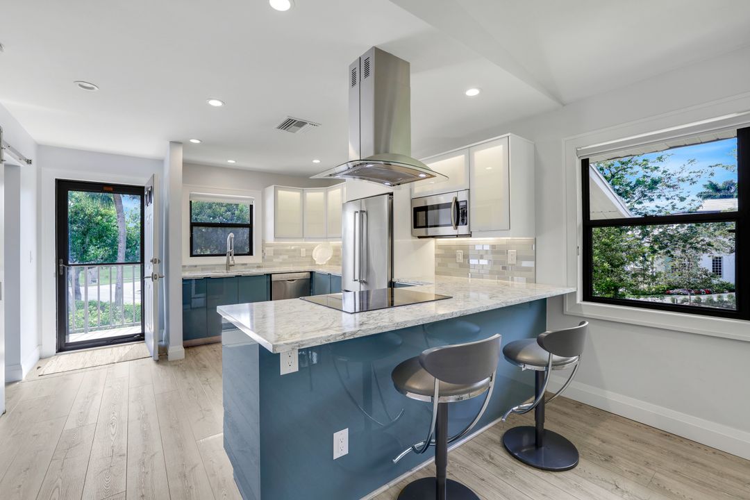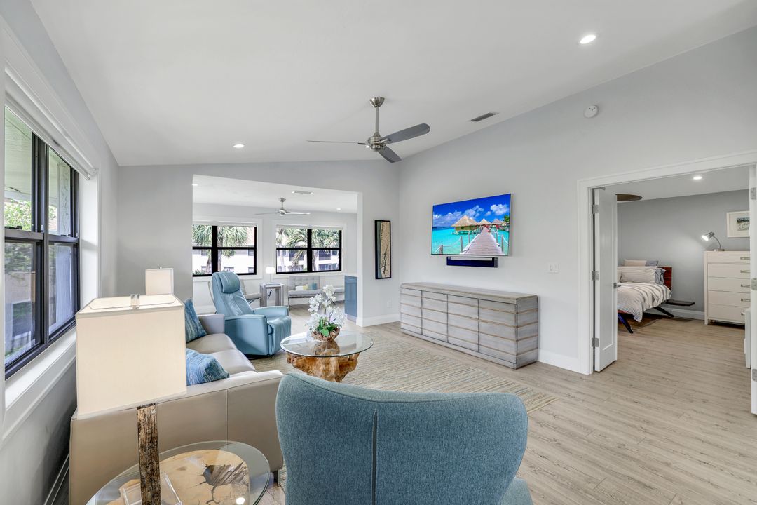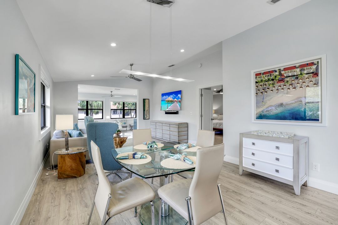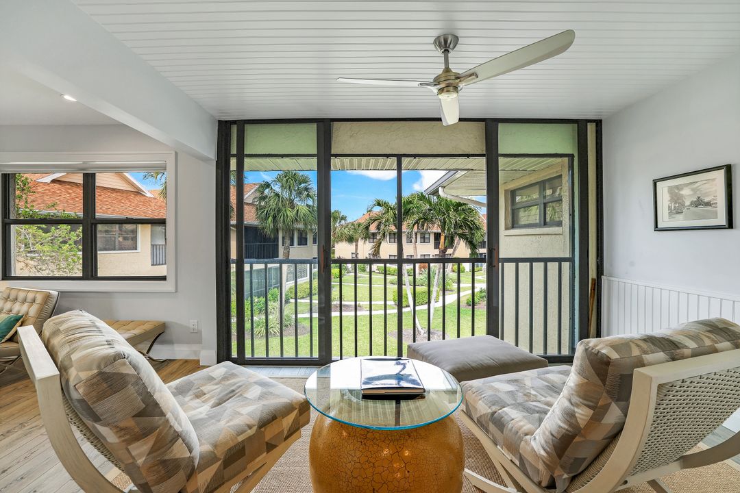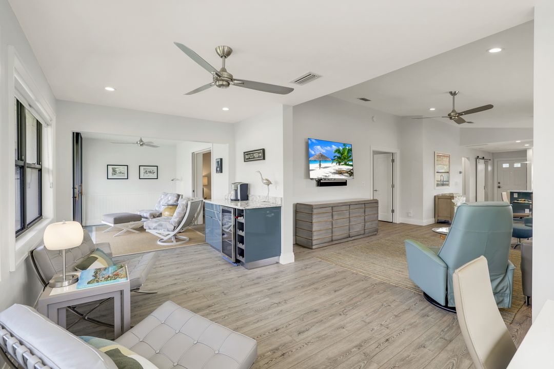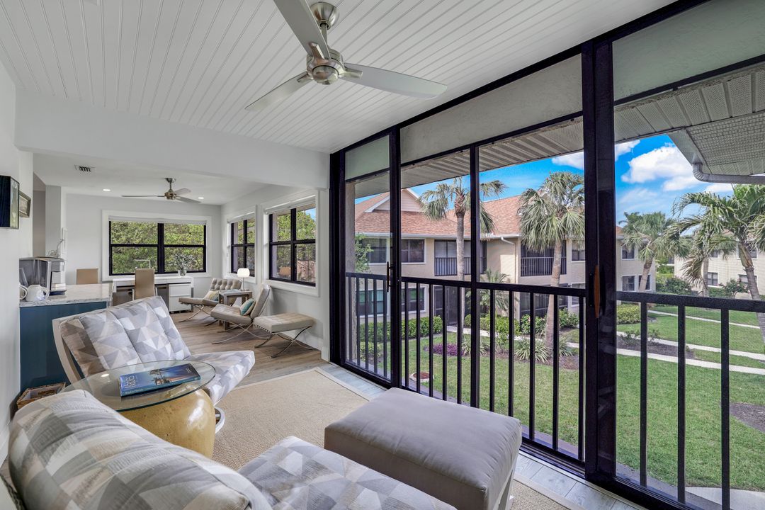 This jaw dropping, completely remodeled, dream Florida getaway is ready for a quick closing and immediate occupancy and is offered turnkey furnished. Bayside Villas is a pristine, friendly community of just 35 residences located just steps the Naples City Dock, dining and shopping. The European style kitchen is a showstopper, featuring sleek gloss cabinets, frosted glass doors, glass tile backsplash, Grohe faucet, Bosch, Samsung and KitchenAid stainless appliances, all complimented by stunning granite countertops. Soaring vaulted ceilings in the main living areas and Primary Bedroom and Bath. Enjoy entertaining watching the OLED TV with Sonos soundbar or relax in the expanded and enclosed Florida Room that includes a coffee/wine station, office area and cozy reading area with beadboard ceiling and matching wainscotting. The spacious primary bedroom suite features unique frosted glass pocket doors that open to provide natural lighting and relaxing outdoor views. Both bathrooms are stunning and feature walk-in tiled showers with glass doors, subway tile and pebble floors. Stainless steel ceiling fans. Solid wood doors throughout with stainless hardware with two sliding track barn doors. In residence utility room with MayTag washer & dryer and tankless hot water heater. Hurry to see this incredible residence today and make it YOUR Florida dream getaway tomorrow!