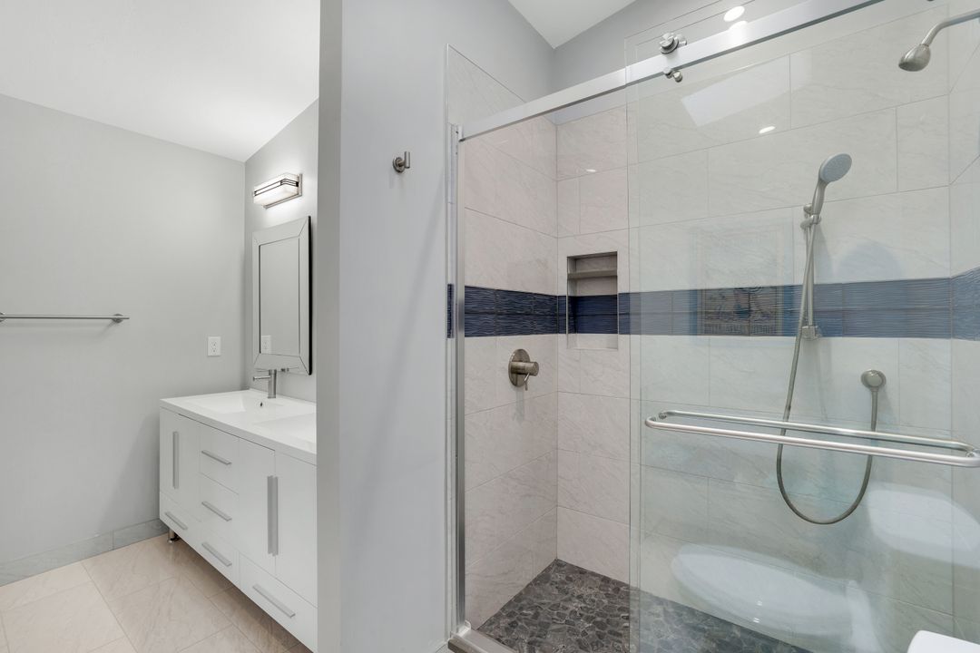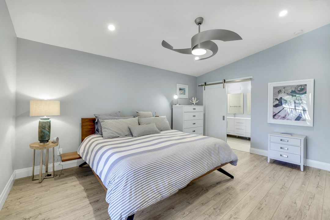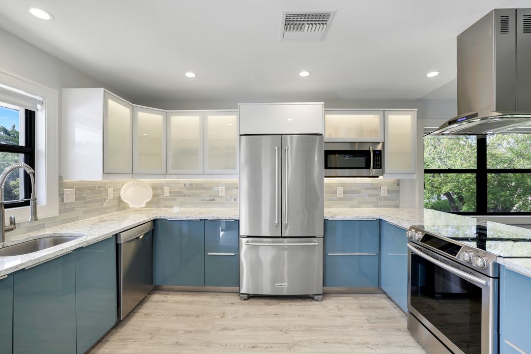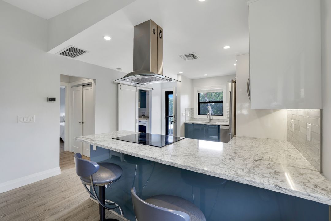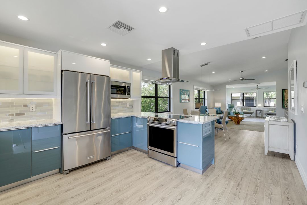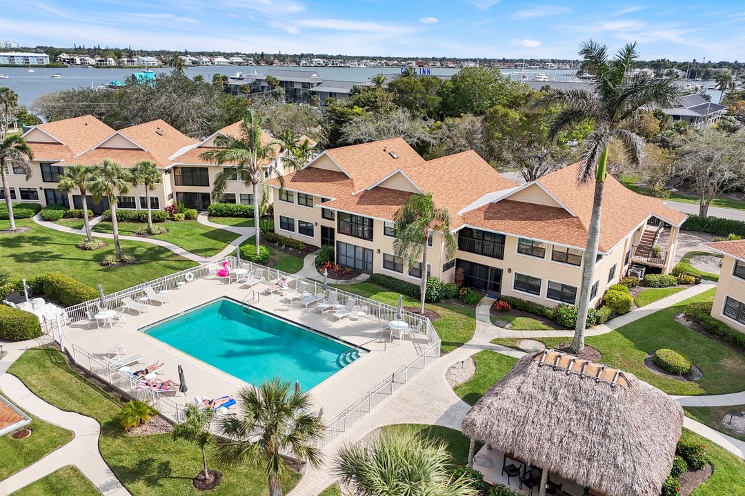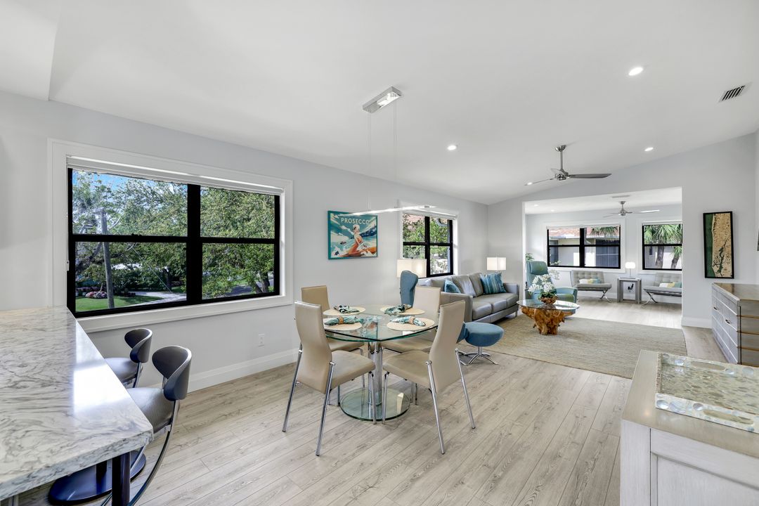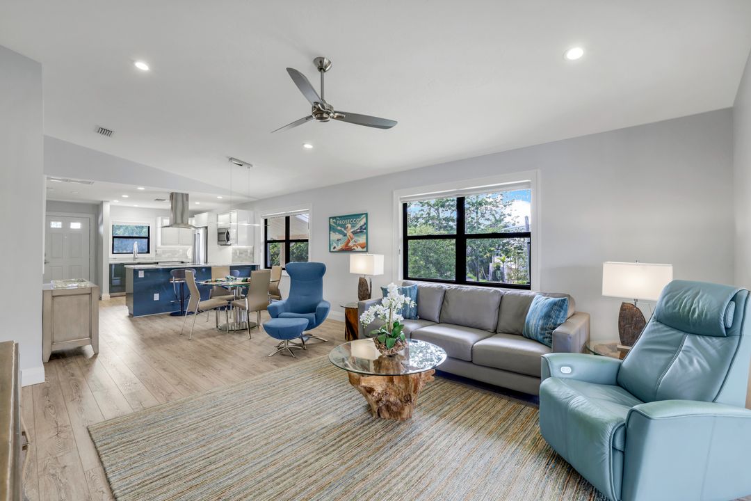 This jaw dropping, completely remodeled, dream Florida getaway is ready for a quick closing and immediate occupancy and is offered turnkey furnished. Bayside Villas is a pristine, friendly community of just 35 residences located just steps the Naples City Dock, dining and shopping. The European style kitchen is a showstopper, featuring sleek gloss cabinets, frosted glass doors, glass tile backsplash, Grohe faucet, Bosch, Samsung and KitchenAid stainless appliances, all complimented by stunning granite countertops. Soaring vaulted ceilings in the main living areas and Primary Bedroom and Bath. Enjoy entertaining watching the OLED TV with Sonos soundbar or relax in the expanded and enclosed Florida Room that includes a coffee/wine station, office area and cozy reading area with beadboard ceiling and matching wainscotting. The spacious primary bedroom suite features unique frosted glass pocket doors that open to provide natural lighting and relaxing outdoor views. Both bathrooms are stunning and feature walk-in tiled showers with glass doors, subway tile and pebble floors. Stainless steel ceiling fans. Solid wood doors throughout with stainless hardware with two sliding track barn doors. In residence utility room with MayTag washer & dryer and tankless hot water heater. Hurry to see this incredible residence today and make it YOUR Florida dream getaway tomorrow!