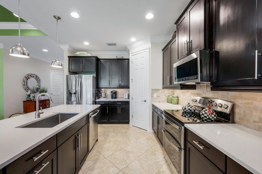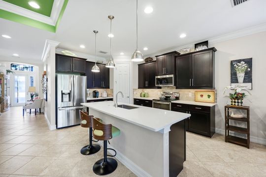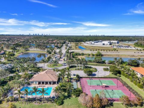 Welcome to this inviting and spacious single-story home with a gorgeous lake view located on a quiet corner lot. The sought-after gated community of Paloma is a rare find, combining a superior location with convenience and resort-style living. This well-designed open-concept and customized Edison floor plan offers 1,983 sq ft of living space, with 3 bedrooms plus a den that has its own closet, and 3 full baths. Bedrooms are smartly arranged for privacy, and the home flows effortlessly from the grand entryway into the living room and kitchen. The kitchen is outfitted with timeless espresso all-wood shaker cabinets, quartz countertops, new disposal and farmhouse stainless steel sink, as well as modern stainless steel appliances, delivering both style and practicality. The large primary bedroom features two walk-in closets, and the primary bathroom provides ample space with dual sinks, a modern glass shower enclosure, and a uniquely convenient custom converted laundry area. The former laundry room has been converted into a stunning and tropical full 3rd bath, adjacent to the den. The oversized, marble-floored lanai provides a relaxing outdoor extension of the home with electric hurricane shutters, designer light-fixtures, and ceiling fan — ideal for morning coffee or evening unwinding as you gaze across a peaceful lake and lighted fountain. The rest of the home features accordion storm shutters throughout, and has had all major systems upgraded: new A/C and 50 gallon hot water heater installed in 2024, freshly power-washed and sealed driveway, a recent full exterior home repaint, and more. The 2-car garage boasts a structural 4ft. depth extension, additional floor storage in both the attic and garage cabinets, plus a generously widened paver driveway for additional guest parking - a perk rarely found in gated communities. This home enjoys added privacy adjacent to a green space lot on the south side of the home, fully maintained by the HOA. With its unique corner lot placement on the interior of the community, this location lives much more quiet than most other available homes in Paloma. The community offers an enviable resort-like lifestyle with luscious and mature landscaping, towering palms, and ample amenities that include a lap pool, fitness center, tennis courts, a recently remodeled clubhouse, and more. Its central location puts you within a short ride from the SWFL International Airport (RSW), shopping hubs like Mercato, Coconut Point Mall, Gulf Coast Town Center and Miromar Outlets, as well as our pristine and freshly re-nourished Gulf Coast beaches. Ample healthcare facilities surround the Bonita Springs-Estero area for excellent and award-winning care, including Lee Health's 24/7 Emergency Medicine center just 10 minutes away. Furthermore, the vibrant Downtown Bonita Springs area has been redeveloped to be more walkable, with a mix of historic buildings and new developments. Foodies unite because plentiful dining from fine eateries to relaxed cafes and even a food truck park abound. The Riverside Park in downtown Bonita Springs is a central hub for community events, featuring a bandshell, historical buildings like the Liles Hotel and Artist Cottages, a butterfly garden, and a veteran's memorial. The Bonita Estero Rail Trail is a nearly 15-mile trail connecting pedestrians to other parts of Lee County, and other area amenities like The Wonder Gardens offer a historic botanical garden and wildlife sanctuary just a short drive from Paloma. Whether you’re seeking a full-time Florida home, a vacation getaway, or an investment property, this home delivers a perfect blend of comfort and lifestyle. Paloma is a very active, resident managed neighborhood with a social committee that puts on a full calendar of activities and events for residents. Paloma received a LOMR exemption letter from FEMA, and does not require flood insurance. Please view the home's Features & Upgrades flyer for a detailed list of upgrades.