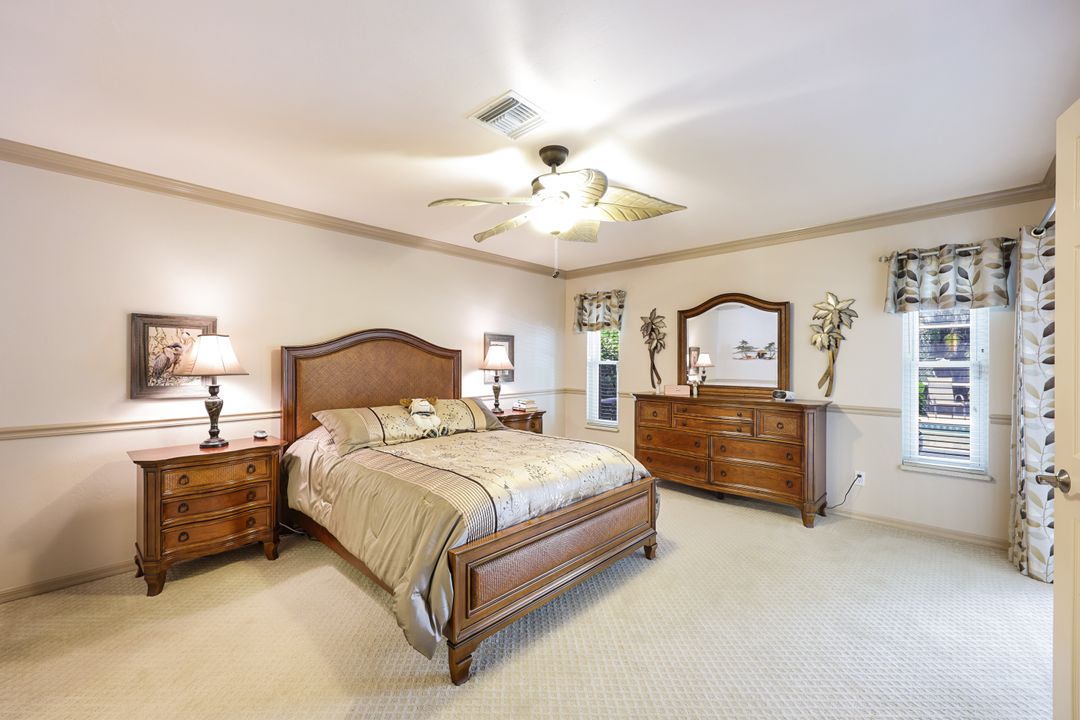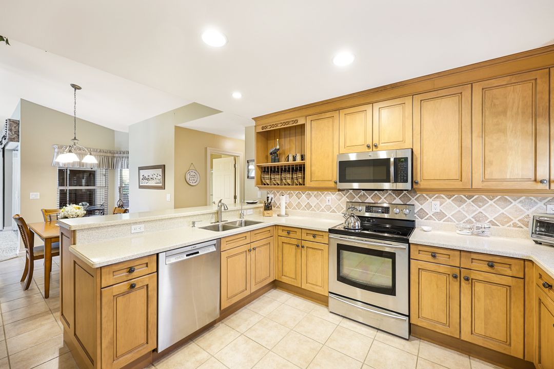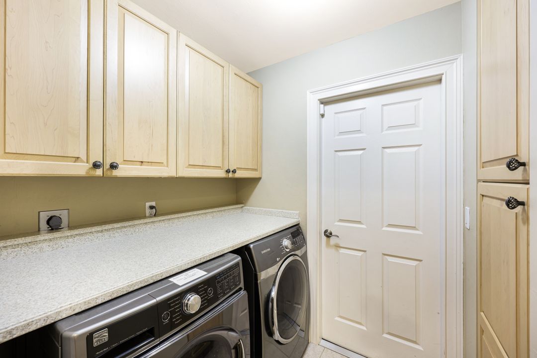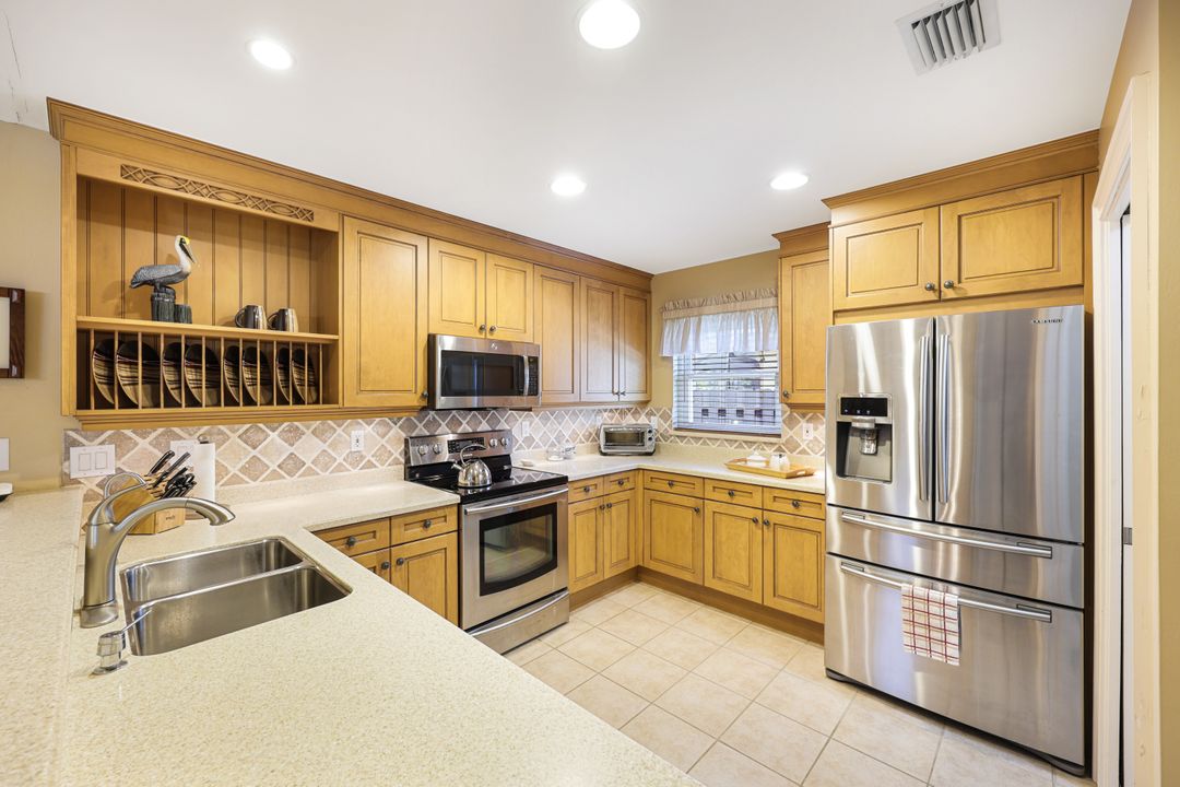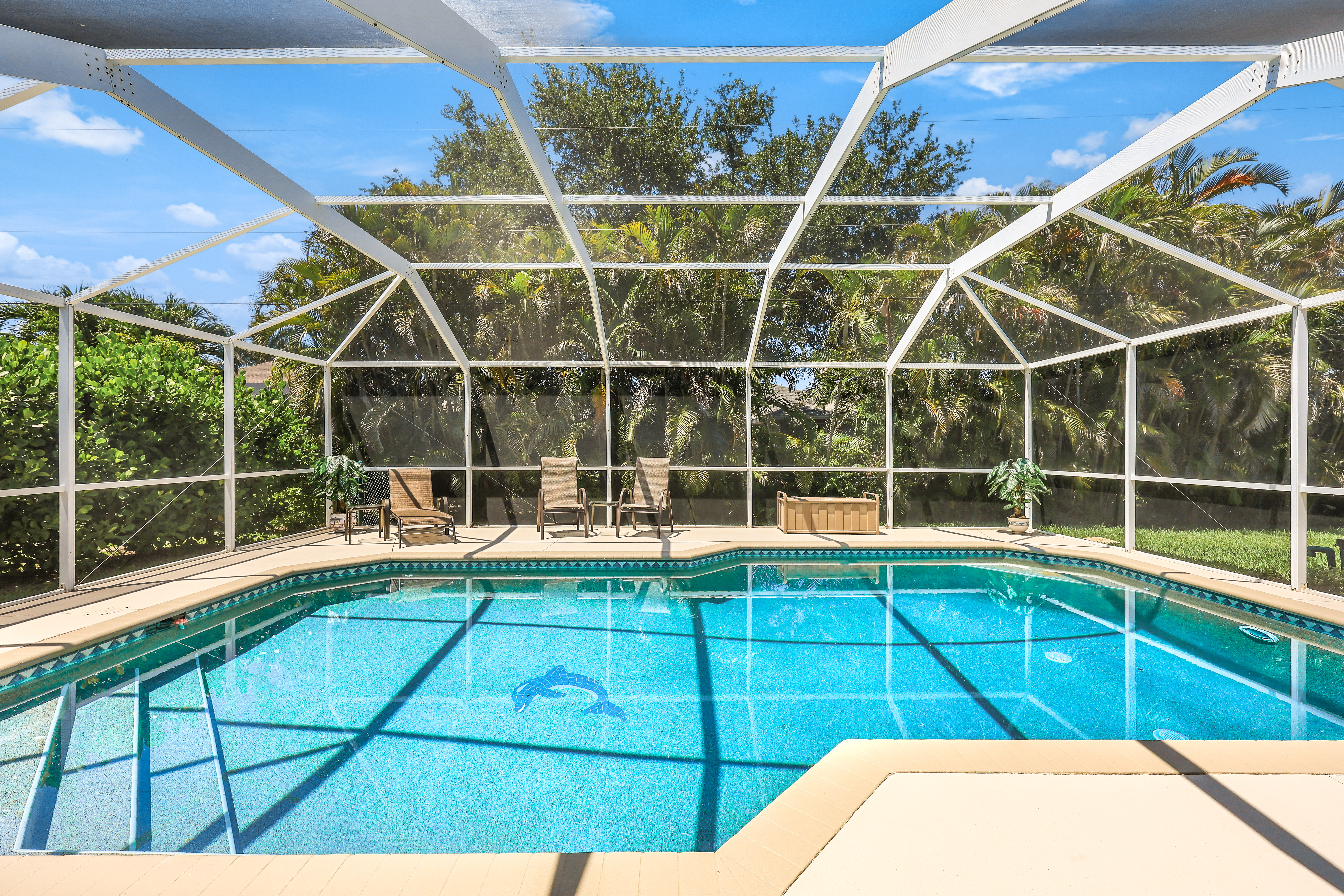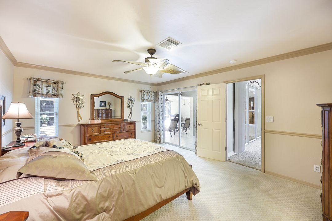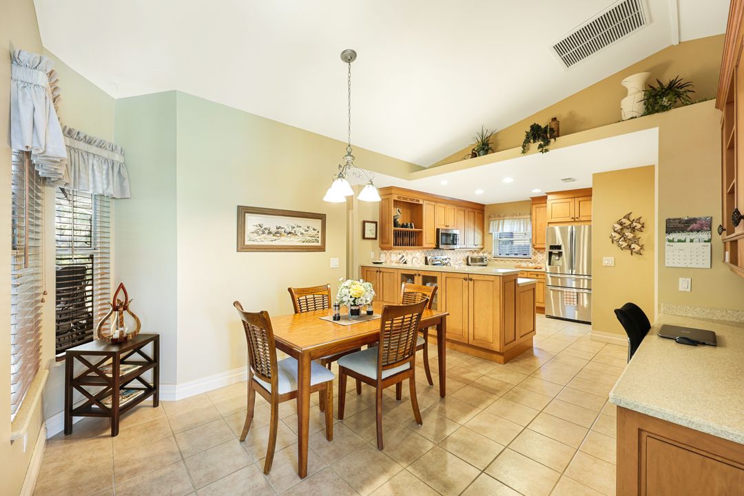 LOVINGLY MAINTAINED 3/2/2 POOL HOME! Step into your own private slice of the Florida lifestyle! From the moment you enter through the tiled front entry and elegant double doors, you'll be captivated by the soaring vaulted ceilings in the great room and the full wall of oversized pocketing sliding glass doors that open completely to the stunning lanai and pool area — ideal for seamless indoor-outdoor living. The spacious living room is anchored by a custom lighted entertainment center, and designer window treatments add an extra layer of style throughout the home. The chef-inspired kitchen features custom stain-resistant wood cabinetry, stainless steel appliances, sliding shelves, a lazy Susan, recessed lighting, and a reverse osmosis water system. The primary suite is a true retreat with private lanai access, walk-in closets, and a spa-inspired en-suite bath showcasing floating cabinets with under-cabinet lighting and a fully tiled walk-in shower. Two guest bedrooms offer built-in closets and shelving, enhanced by a custom wood feature wall and accent lighting creating a coastal and nautical theme. The home also features a versatile laundry room with upper cabinets, folding counter, and built-in pantry. Step outside to your covered entertaining area and enjoy the electric-heated, saltwater pool surrounded by privacy hedges and tropical landscaping. A dedicated pool bathroom offers extra convenience for guests. Additional highlights include a newer roof (2023), new hot water heater (2023), replaced lanai screens (2023), new pool pump and saltwater charger (2024), a two-car garage with ample cabinetry, custom blinds throughout, a fenced dog run, and water/sewer assessments paid in full. Best of all, this home is located in Flood Zone X! Perfectly positioned in the highly sought-after SW Cape, this beautifully maintained pool home is close to waterfront dining, marinas, and all the best coastal amenities Cape Coral has to offer. Whether you're hosting gatherings or enjoying quiet mornings by the pool, this home offers comfort, convenience, and timeless Florida charm.