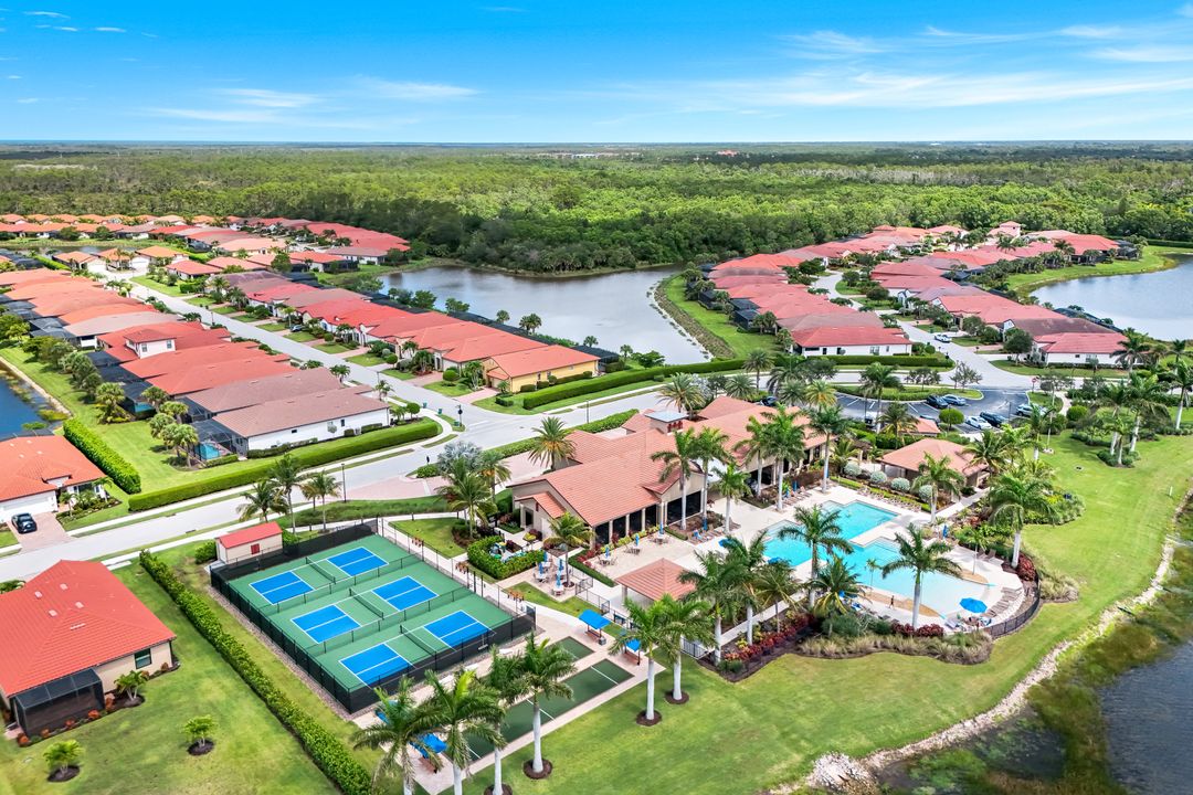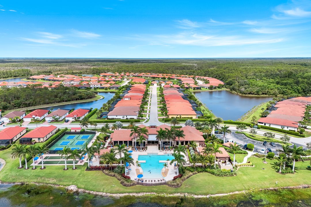 Welcome to your dream home in the heart of Artesia Naples, where comfort meets elegance in this beautifully designed two-story home, built in 2019. This immaculate three-bedroom, two-and-a-half-bath residence features a spacious and inviting floor plan, perfect for both relaxed living and stylish entertaining. Step inside to discover a bright and airy living room that flows seamlessly into a stunning open-concept kitchen, complete with gleaming granite countertops, an expansive breakfast bar, sleek stainless steel appliances, breakfast nook and a flex space that may be used as a formal dining area or family room. Unwind outdoors in the private screened lanai, the perfect spot to relax and soak up the Florida sunshine or enjoy peaceful evening breezes in total tranquility. The luxurious primary suite offers a spa-like retreat, featuring an en suite bath with a double vanity, Roman soaking tub, separate walk-in shower, and a spacious walk-in closet. Two additional bedrooms are thoughtfully located on the opposite side of the home, offering privacy and convenient access to a well-appointed guest bathroom. Located on a quiet and peaceful street within this gated community residents where enjoy a modern clubhouse, a heated pool with lap lanes, a fully equipped fitness center, yoga studio, private theater, billiards room, and meeting space. Outdoor enthusiasts will love the pickleball courts, bocce courts, dog park and scenic walking and biking trails. Perfectly situated just minutes from a number of supermarkets, shopping, restaurants, approximately a fifteen minute ride to the iconic Southwest Florida beaches and everything Naples and Marco Island has to offer, this property offers the ultimate blend of luxury, convenience, and Florida charm. Don’t miss your opportunity to make this exquisite home yours —schedule your private tour today!