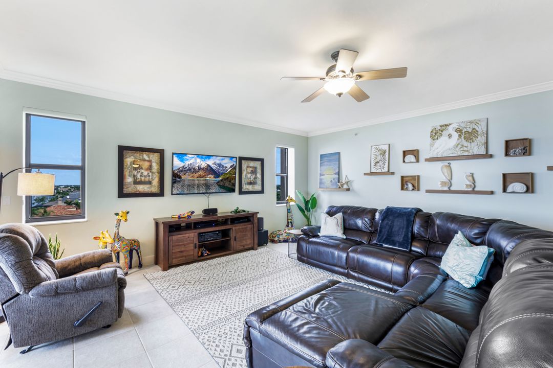 Welcome to this luxurious riverfront condo located in Palmas Del Sol at Gulf Harbour. Immerse yourself in the Gulf Harbour lifestyle with this exquisite Alhambra model located on the 7th floor, showcasing breathtaking unobstructed views of the Caloosahatchee River. With stunning long views to both the North and West, you can enjoy delightful natural light and stunning sunsets. The heart of this home is the gourmet kitchen boasting granite countertops, a center island, pristine appliances. and a lovely breakfast nook. The grand great room pours into the open lanai — the perfect place to unwind or entertain! The enclosed large lanai, accessible from both the living room and kitchen, enhances this already exceptional home, ready to offer a blend of luxury and convenience to its new owners. The expansive primary suite invites relaxation with a wonderful large sitting area and balcony with incredible views overlooking the manicured golf course. The primary suite also features a walk-in closet, and an ensuite bathroom with dual vanities, soaking tub, and a separate shower. Unique for a high-rise, this unit offers a two-car garage with easy elevator access.