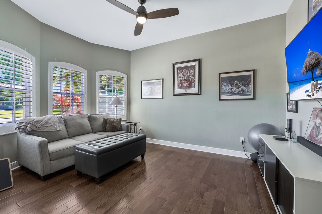 Nestled within the exclusive, double-gated enclave of Hampton Greens, this exquisite custom home encapsulates both architectural elegance and modern luxury. Comprising just 74 custom residences, Hampton Greens offers unparalleled privacy and a sense of community amidst sprawling, meticulously landscaped lots. This stunning property boasts three spacious bedrooms plus den, perfect for a home office or guest room, and three full bathrooms. The home’s amazing architectural features create an ambiance of sophisticated charm. The interior is a testament to refined living, with rich wood flooring that adds warmth and character to the residence. Built to impress, the home features a newer flat tile roof (2019) that not only enhances its aesthetic appeal but also offers peace of mind for years to come. The residence’s functionality is as impressive as its form, with a three-car (tandem) garage providing ample space for at least two vehicles, a golf cart & additional storage. The lot itself is a masterpiece of privacy and tranquility, thanks to its strategic location within two sets of gates. Residents enjoy low HOA fees without compromising on exclusivity or security. Furthermore, the optional social and golf memberships at the Club at Gateway present an opportunity to engage in a vibrant social life and enjoy premium recreational facilities, making this property not just a home but a lifestyle choice. This residence is ideal for those who appreciate the finer things in life: privacy, luxury, and community. Whether basking in the natural light that floods through its ample windows, entertaining in its open and inviting spaces, or enjoying a quiet evening in one of its serene outdoor areas, this home is a sanctuary designed for comfort and elegance.