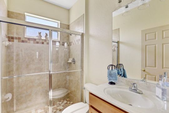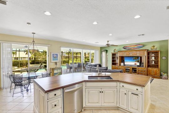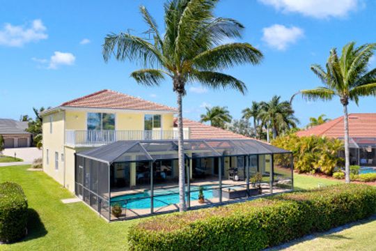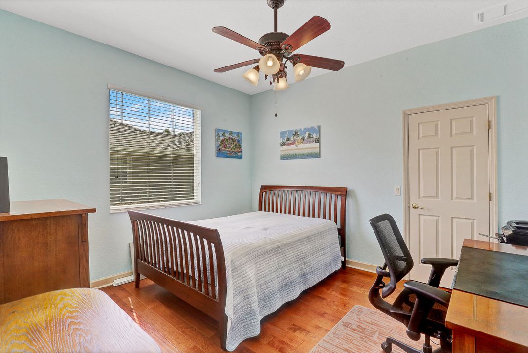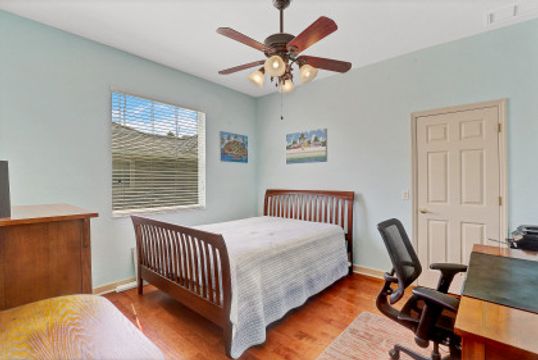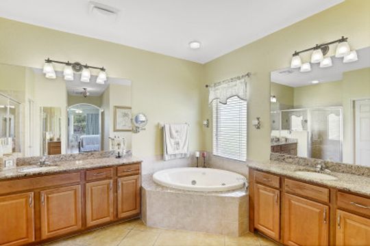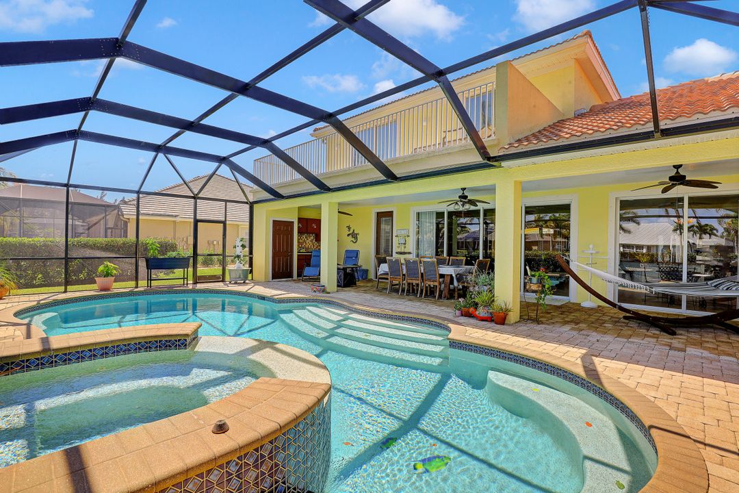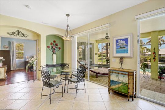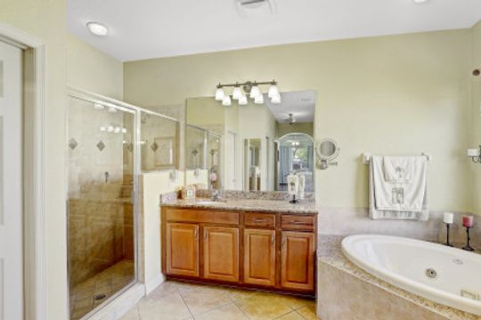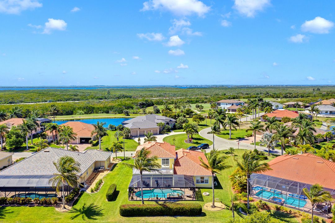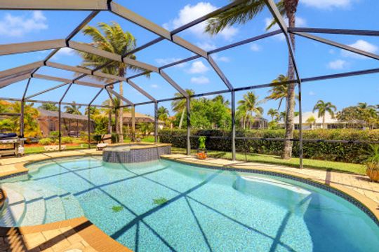 Cape Royal community featuring this two story 5 bed 3 bath 3 car garage home. Walk into an open, spacious, plenty of natural light floor plan hosting living area with formal dining plus family room that is shared with the oversize island eat-in kitchen featuring double sliders that open to the screen lanai/pool area. This eat-in kitchen is like no other; white rubbed cabinetry, real walnut hardwood countertops constructed island, double wall oven & undermount sink. First floor showcases TWO bedrooms!! Owners suite with tray ceiling and sitting area, bath with large sunken jetted tub & separate shower. Additional guestroom makes for a great in-law suite. Three additional guestrooms and bath on second floor. All bedrooms freshly painted, tile & wood floors throughout the home. Interior is staying cool with 2 AC units, one of which replaced within last 2 yrs. Outside, enjoy the newer custom pool & spa just added 5 yrs ago. Large comfortable lanai area is great for entertaining while kids are playing in the backyard. Cape Royal is a hidden gem with low HOA dues & plenty of activities to get involved in; bocce ball, tennis, book club, dining, kayaking and more. Roof less than 2 yrs old.