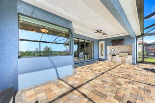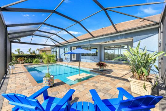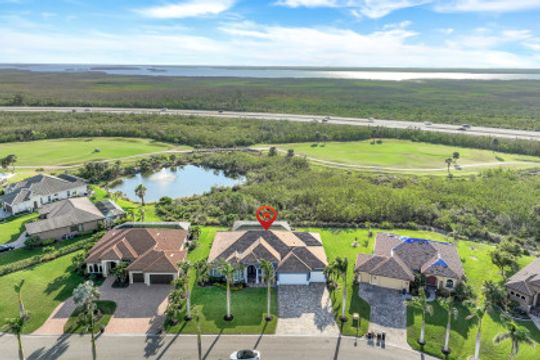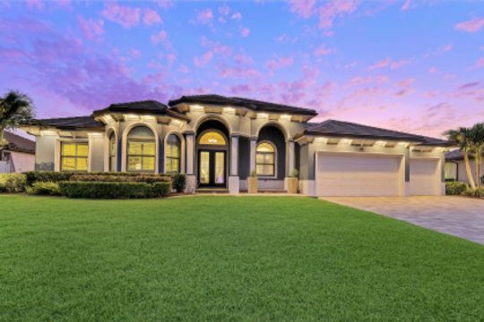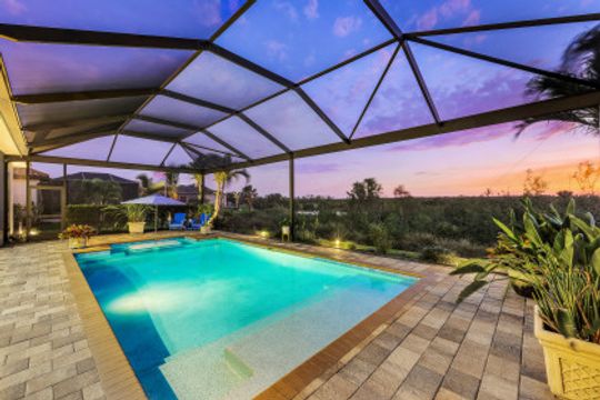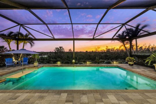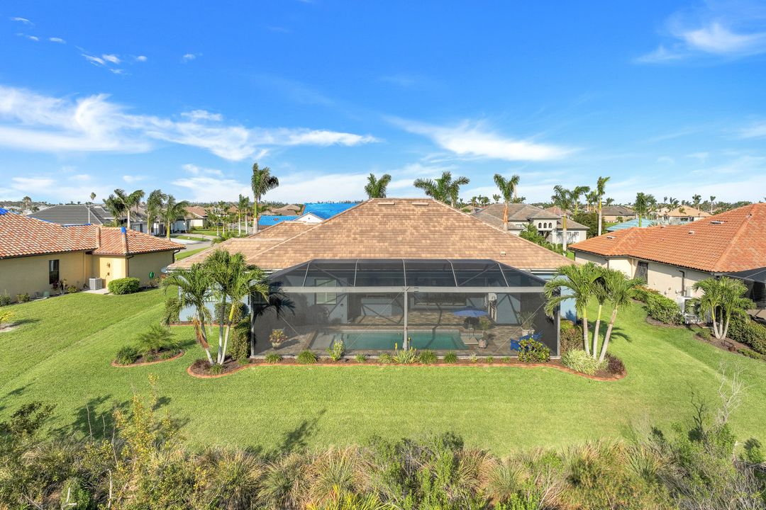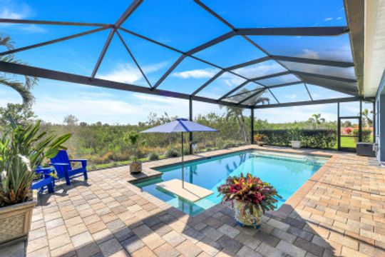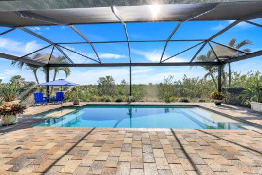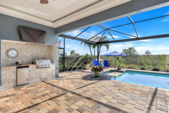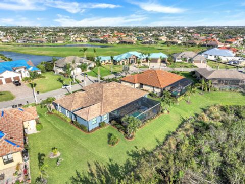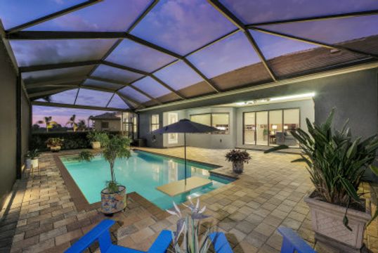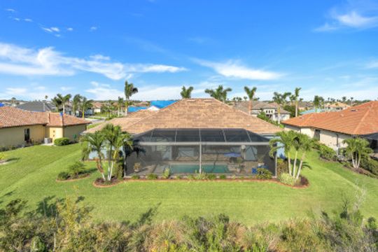 Best value in Cape Royal! Custom built 5 Bed with office, 3 Full Bath, 3-1/2 Car Garage Pool Home with Preserve and Lake Views. 27-hole golf course! Meticulously maintained & featuring 24” Italian porcelain tile, soaring coffered ceilings through, and an open floor plan. Spacious family room with feature wall, fireplace, and overlooking the pool & private preserve. Stunning kitchen with custom wood cabinets and counters, cooktop, and wall oven. Open dining with bay window for serene views. Spacious master suite with spa bathroom featuring an incredible walk-in shower with built in bench, and His & Her vanities. Each bedroom is large and has a layered tray ceiling. Full office & additional private office of the master! Outdoor kitchen and newly screened in pool cage/lanai! 30x15 Pool with built in dining, upgraded saltwater system, and auto-fill. Impact storm windows! Privacy and Golf - enjoy the serenity of your home with the amenities of Cape Royal a gated golf community with 27 holes, restaurant, driving range, and pro shop. Located near nature trails, boat ramps, and restaurants.