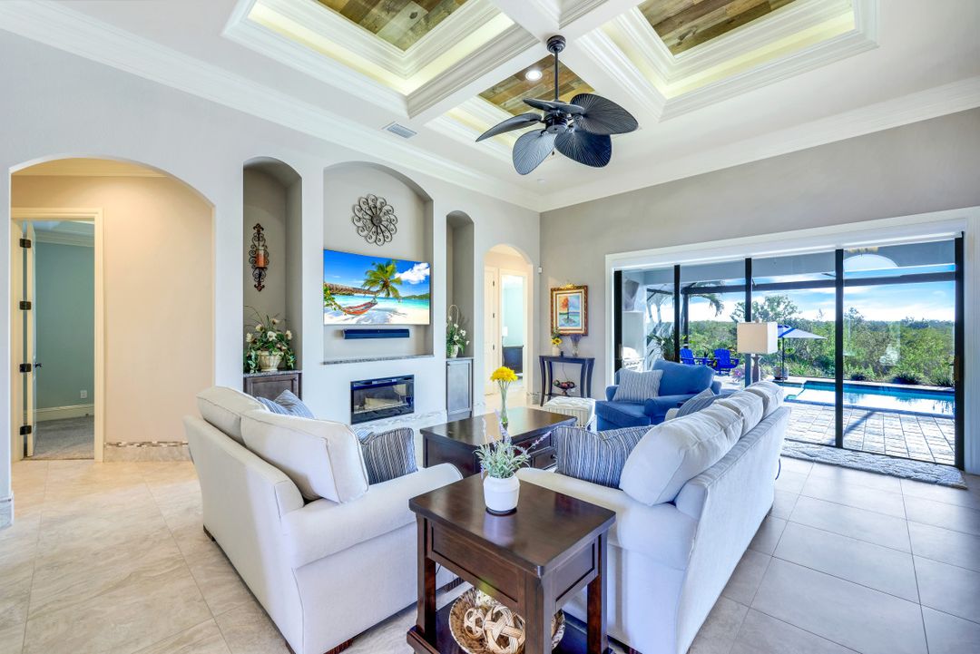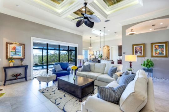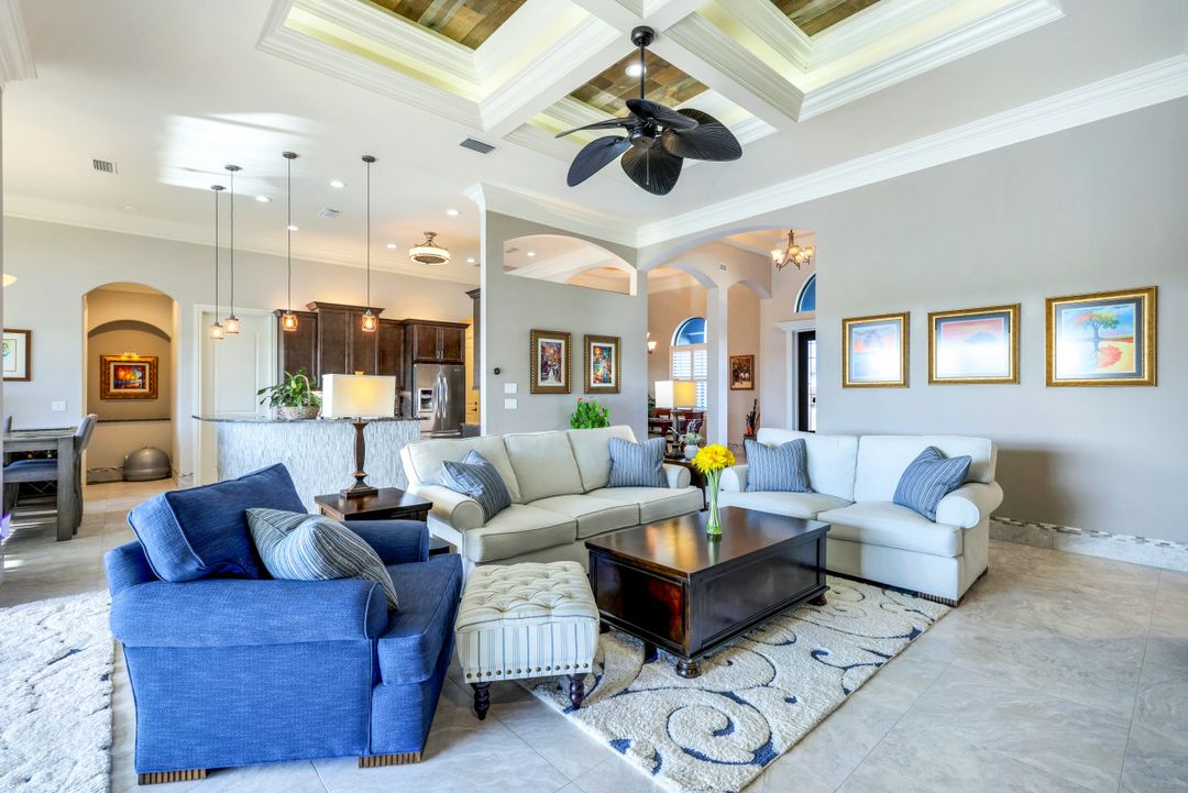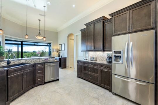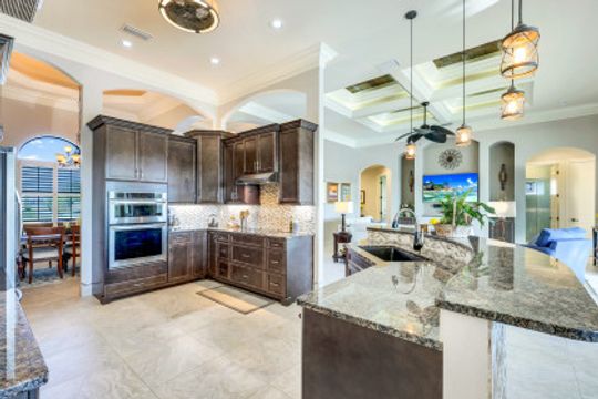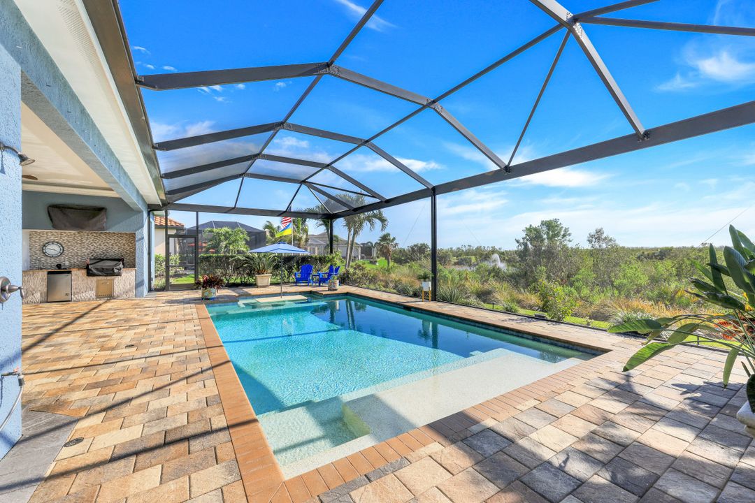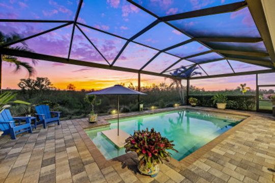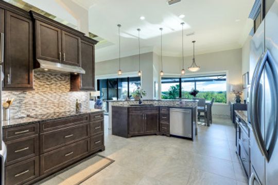 Best value in Cape Royal! Custom built 5 Bed with office, 3 Full Bath, 3-1/2 Car Garage Pool Home with Preserve and Lake Views. 27-hole golf course! Meticulously maintained & featuring 24” Italian porcelain tile, soaring coffered ceilings through, and an open floor plan. Spacious family room with feature wall, fireplace, and overlooking the pool & private preserve. Stunning kitchen with custom wood cabinets and counters, cooktop, and wall oven. Open dining with bay window for serene views. Spacious master suite with spa bathroom featuring an incredible walk-in shower with built in bench, and His & Her vanities. Each bedroom is large and has a layered tray ceiling. Full office & additional private office of the master! Outdoor kitchen and newly screened in pool cage/lanai! 30x15 Pool with built in dining, upgraded saltwater system, and auto-fill. Impact storm windows! Privacy and Golf - enjoy the serenity of your home with the amenities of Cape Royal a gated golf community with 27 holes, restaurant, driving range, and pro shop. Located near nature trails, boat ramps, and restaurants.