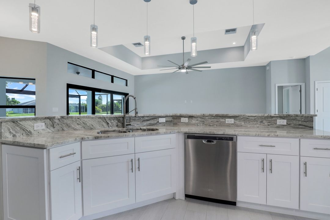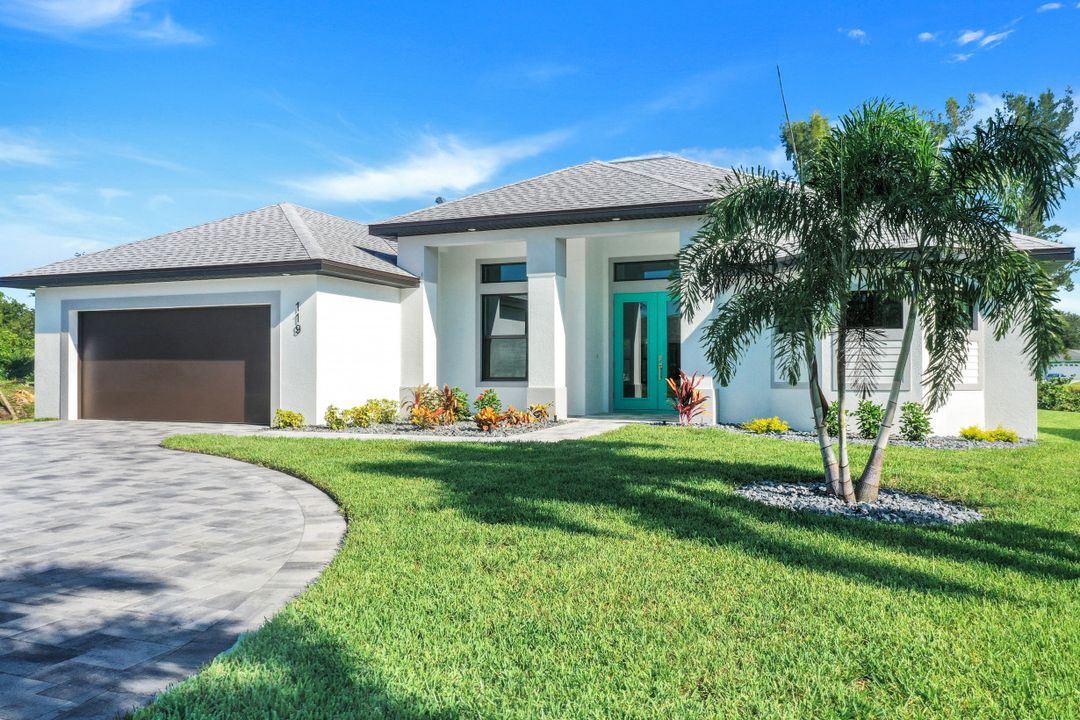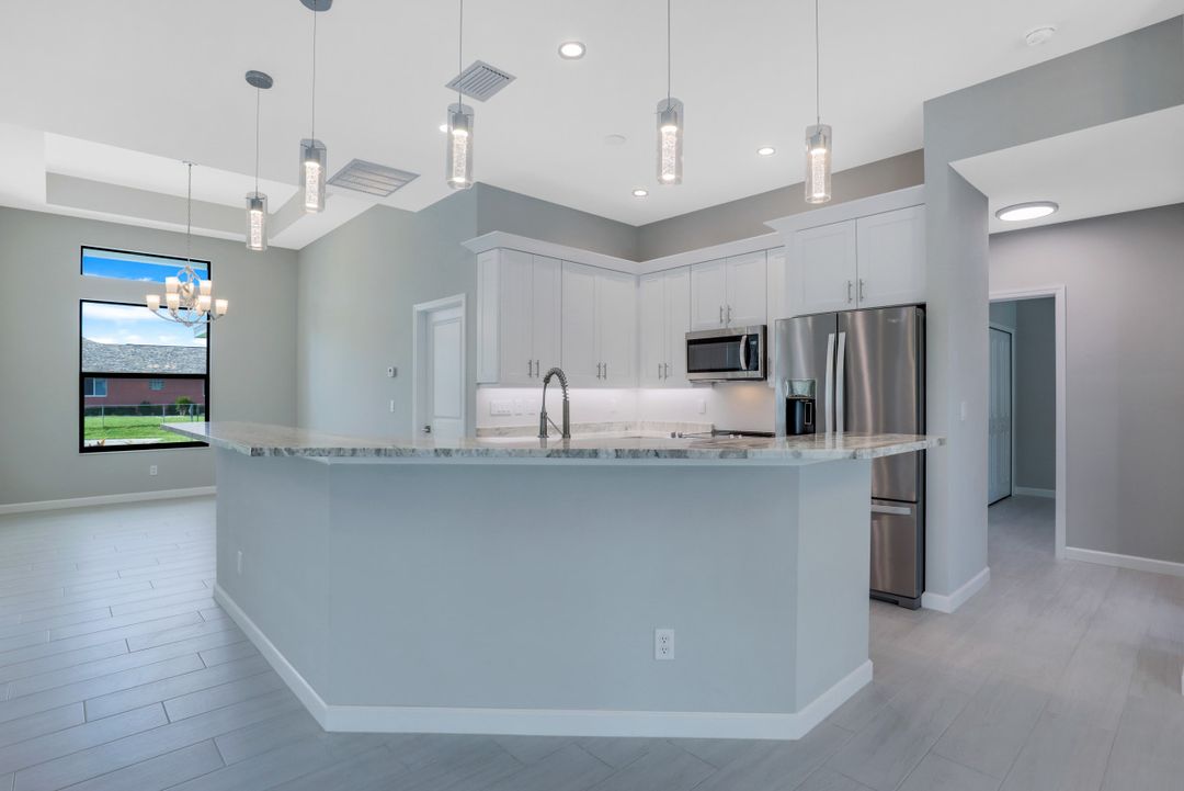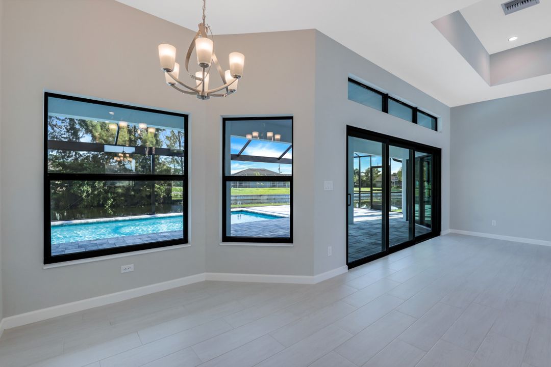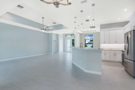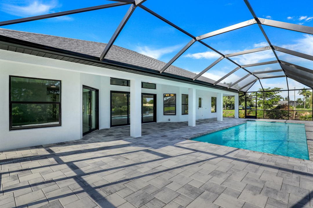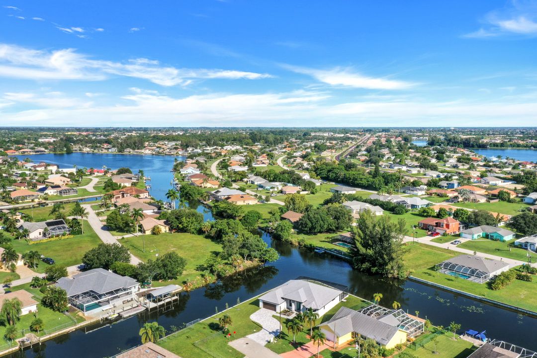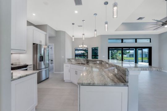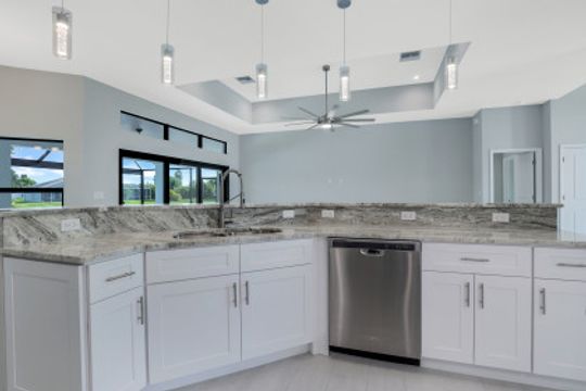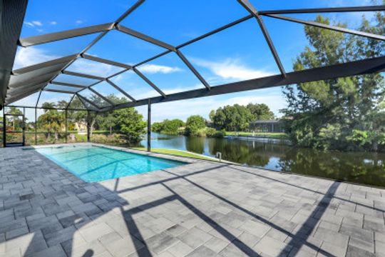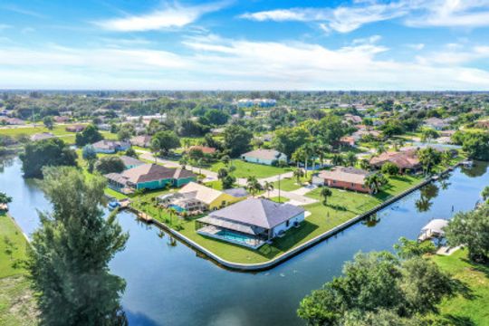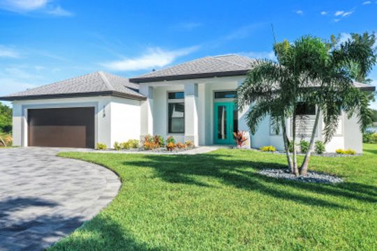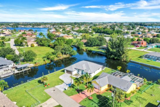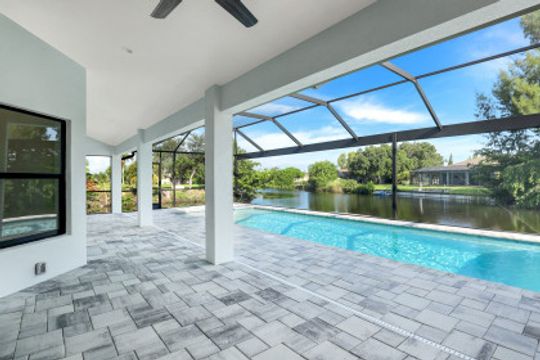 Brand new, modern pool home, custom built, ready to move in. Amazing piece of paradise, situated on a very unique intersecting and oversized dead end corner lot, brand new 254 ft seawall built to the highest standards. Large screened lanai including 33"x11" pool, open floorplan, tray ceilings, impact windows and sliding doors, granite counter tops, wood panel cabinets, stainless steel appliances, tile floor throughout the house, epoxy garage floor, paved driveway, beautiful landscaping. Wake up to beautiful views overlooking intersecting Alhambra und Utica canal in a highly desirable, grown area in SW Cape Coral. There are miles of fresh water canals right out your back door, Alhambra Lake and a chain of other lakes are just around the corner. Enjoy boating, kayaking, fishing, or just bird watching. Be on local beaches, Del Prado, Fort Myers or Punta Gorda in just minutes. Close to shopping, dining, medical facilities, schools and golf courses, calm waters and flood zone X so no flood insurance required. All assessments are in, house comes with a 1 year builder warranty and the possibility to build your own dock.