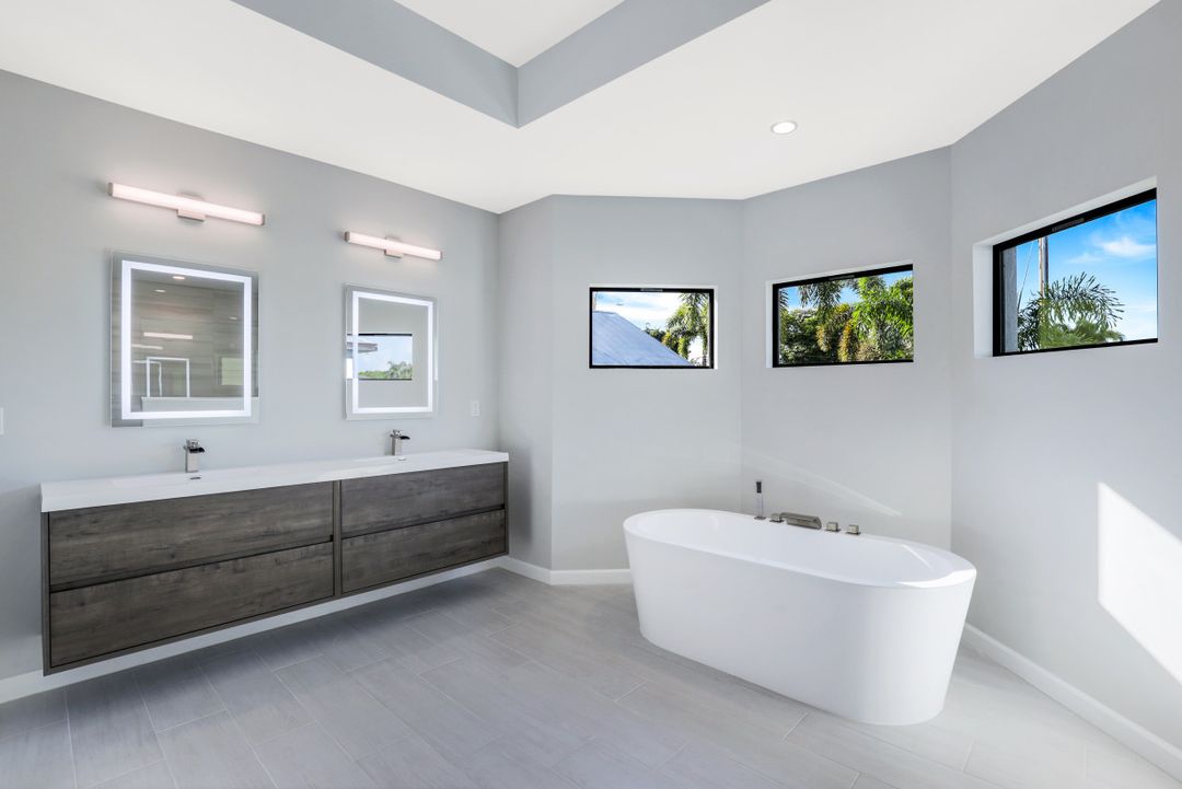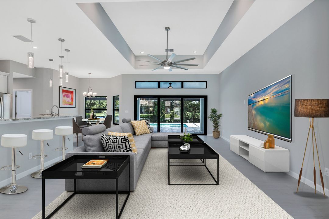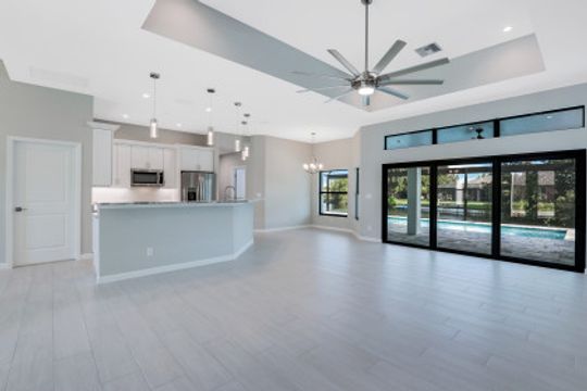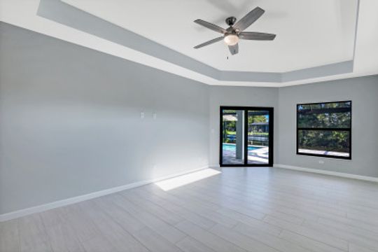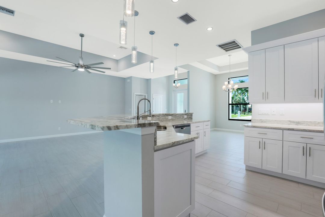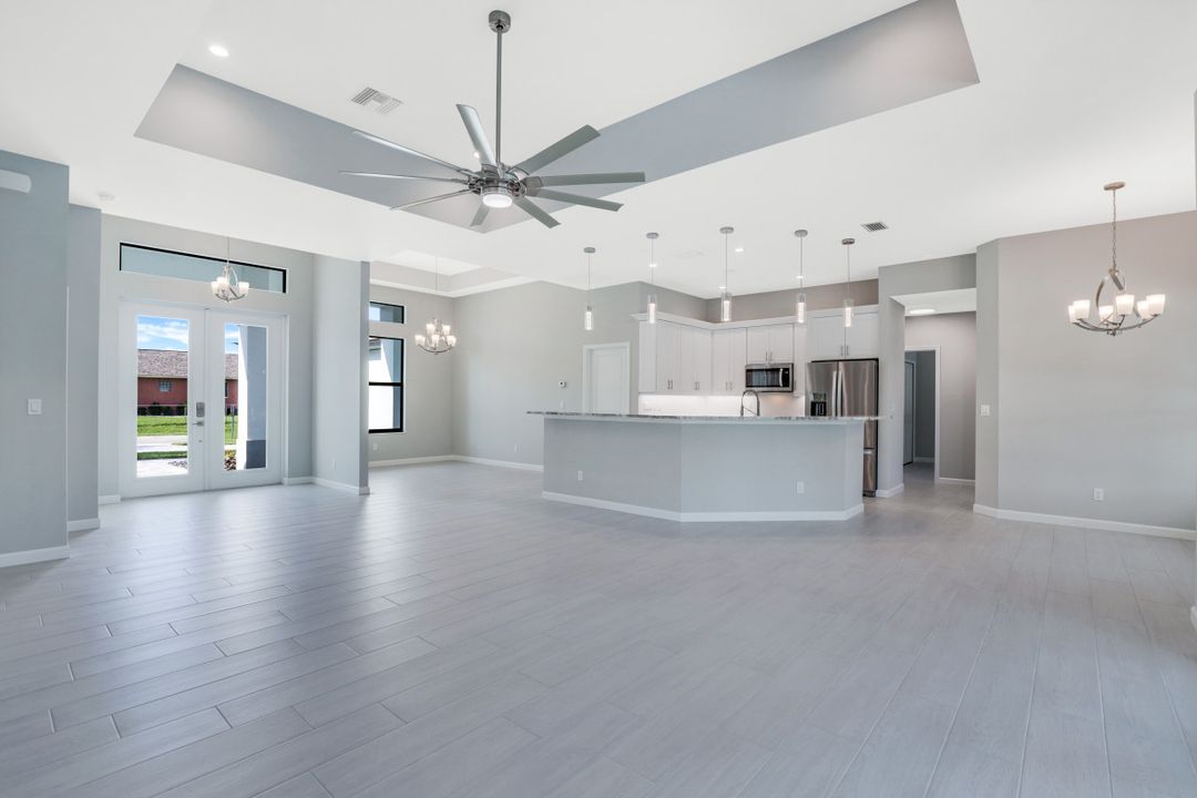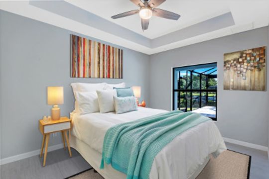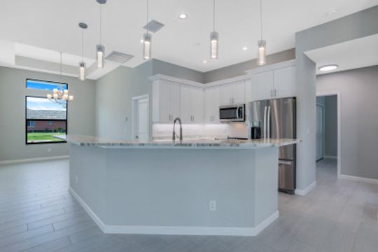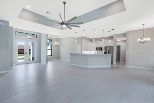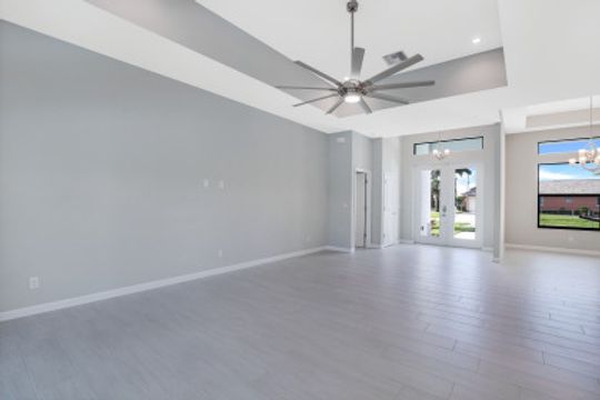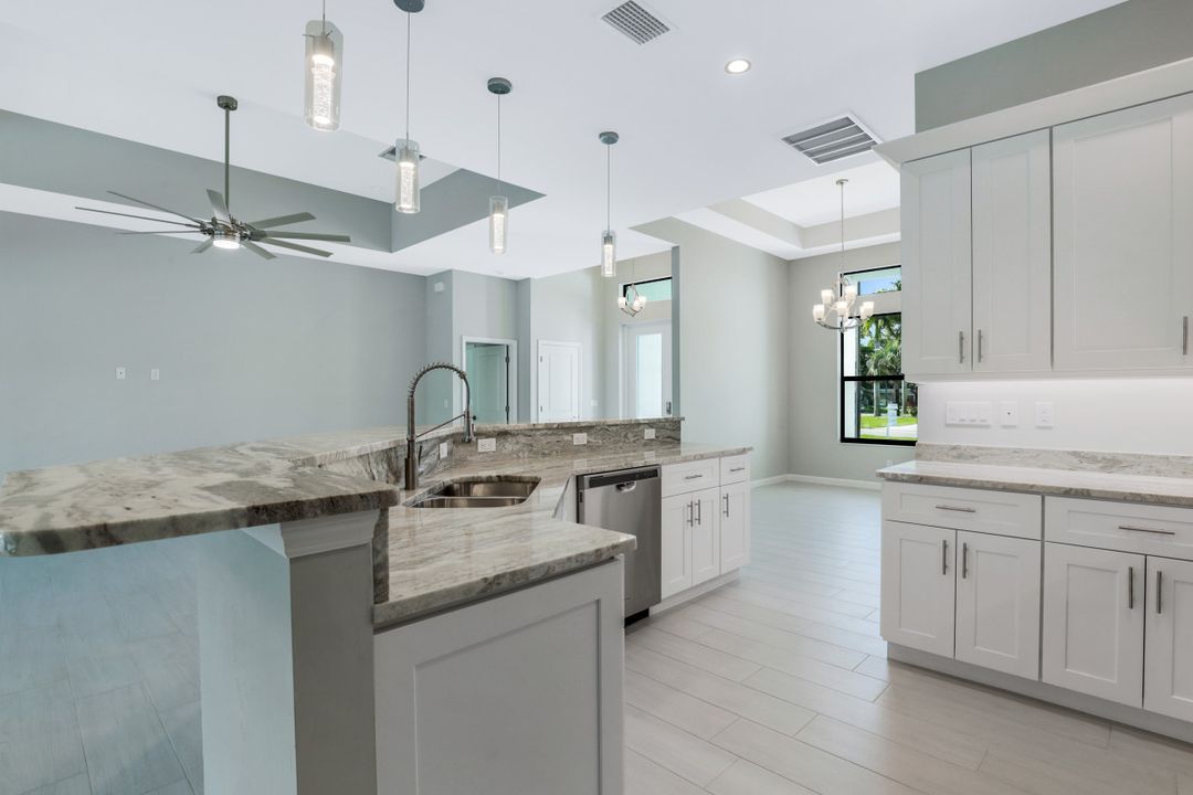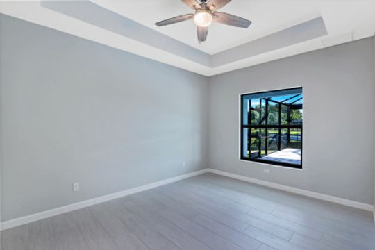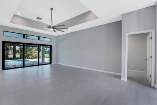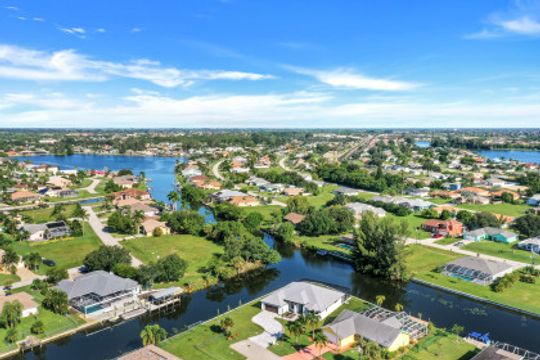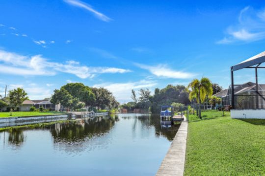 Brand new, modern pool home, custom built, ready to move in. Amazing piece of paradise, situated on a very unique intersecting and oversized dead end corner lot, brand new 254 ft seawall built to the highest standards. Large screened lanai including 33"x11" pool, open floorplan, tray ceilings, impact windows and sliding doors, granite counter tops, wood panel cabinets, stainless steel appliances, tile floor throughout the house, epoxy garage floor, paved driveway, beautiful landscaping. Wake up to beautiful views overlooking intersecting Alhambra und Utica canal in a highly desirable, grown area in SW Cape Coral. There are miles of fresh water canals right out your back door, Alhambra Lake and a chain of other lakes are just around the corner. Enjoy boating, kayaking, fishing, or just bird watching. Be on local beaches, Del Prado, Fort Myers or Punta Gorda in just minutes. Close to shopping, dining, medical facilities, schools and golf courses, calm waters and flood zone X so no flood insurance required. All assessments are in, house comes with a 1 year builder warranty and the possibility to build your own dock.