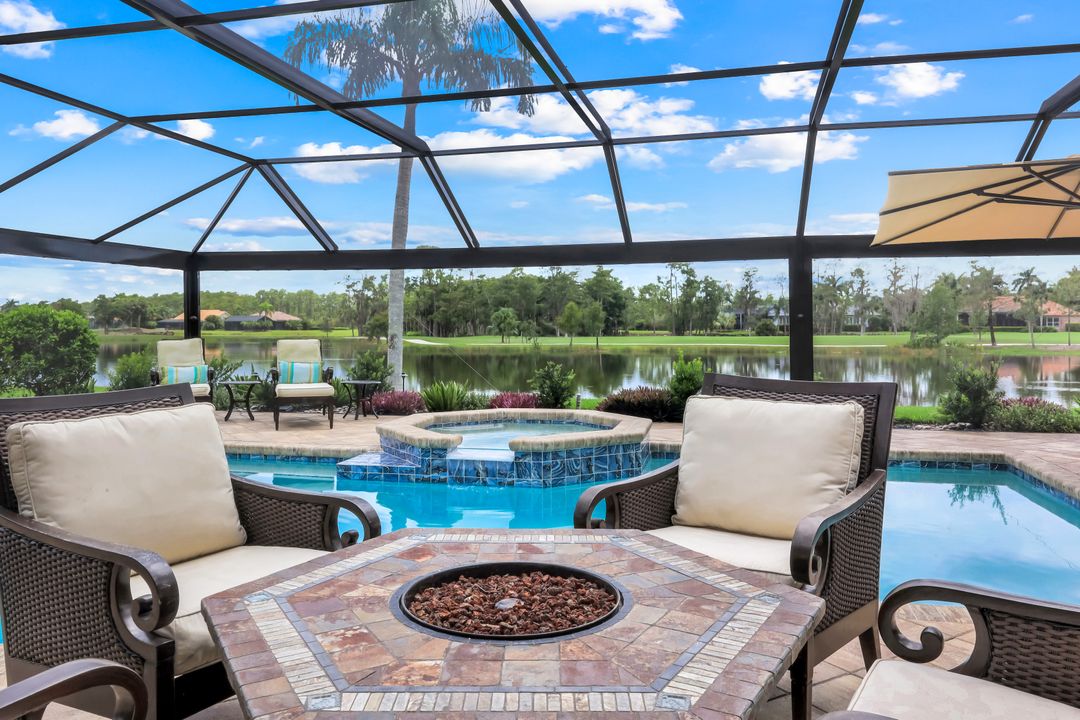This exceptional single-family residence offers 3 bedrooms plus a den/office with a custom Murphy bed, 3.5 bathrooms, and a spacious 3-car garage. Designed for both relaxation and entertaining, the home boasts a screened lanai with a renovated pool and spa, outdoor kitchen, and pizza oven. The family room features a cozy fireplace with wet bar, while luxury vinyl plank flooring flows throughout. Updated baths and elegant finishes enhance the home’s inviting atmosphere. The gourmet kitchen is a chef’s delight, showcasing granite countertops, stainless steel appliances, a Sub-Zero refrigerator, and double Thermador wall ovens. The primary suite serves as a private retreat with a spa-like bath and soaking tub. From the lanai, enjoy sweeping lake and golf course views—one of the property’s most captivating highlights. Hurricane-impact windows have recently been installed for peace of mind. The single-car air-conditioned garage currently serves as a workshop. Wildcat Run residents enjoy a recently renovated 18-hole Arnold Palmer Signature Golf Course, 4 Har-Tru tennis courts, 2 bocce and 4 pickleball courts, and a state-of-the-art fitness center with on-site trainers. After a day of activities, choose from two exceptional on-site restaurants offering both casual and fine dining. Ideally located near I-75, Southwest Florida International Airport, premier shopping, and dining. Best of all—there is currently no waitlist for golf membership! Don’t miss this opportunity to enjoy the Florida lifestyle at its finest. Schedule your private showing today!