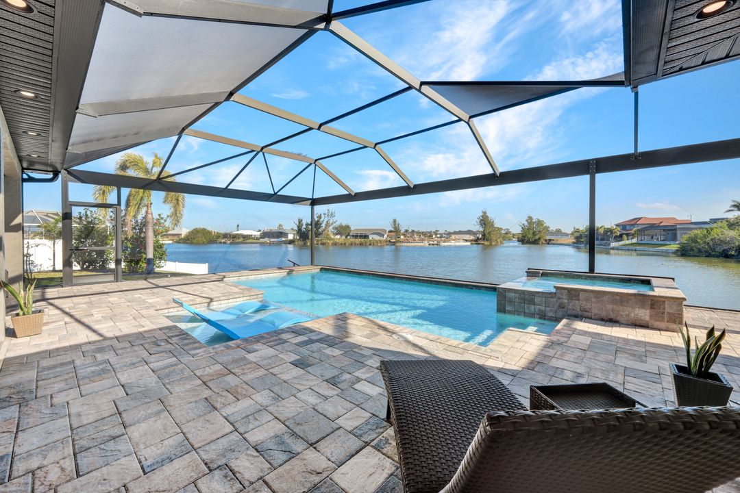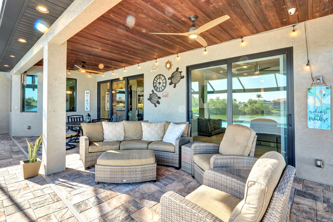 LAKEFRONT LUXURY! This stunning residence, built by the *AWARD-WINNING BUILDER TUNDRA HOMES*, offers 2,615 sq ft of living area on an *OVERSIZED THREE LOT SITE* and *BREATHTAKING VIEWS OF ASA LAKE*. Elegant living spaces and volume ceilings surround you in this living room & family room design! The layout boasts 3 bedrooms, 2 bathrooms, home office and *ADDITIONAL DEN* located off the family room. The kitchen features wood cabinetry, granite countertops, stainless steel appliances and a *BAR* area which includes a beverage refrigerator and glass front cabinetry. Additional finishes include a concrete *TILE ROOF*, *THREE CAR GARAGE* with paver driveway, tile flooring, *IMPACT GLASS WINDOWS & SLIDING GLASS DOORS*, wood window aprons & sills, modern baseboards and interior doors, *CYPRESS ON ENTRY & LANAI CEILINGS*, *PLANTATION SHUTTERS*, and a whole-house *REVERSE OSMOSIS* water treatment system. Outside, enjoy the Florida lifestyle in the *LARGE UNDER-TRUSS LANAI* with *HEATED POOL & SPA*, sun-shelf, and a *PROPANE FIRE PIT*; all enhanced by *PARORAMIC PICTURE FRAME POOL SCREENS FOR OPTIMAL VISIBILITY*. The property is surrounded by a white vinyl *PRIVACY FENCE* and the water frontage is secured with a *145' SEAWALL* with *PAVER CAPTAINS WALK* and concrete planters for an additional outdoor area of enjoyment.
