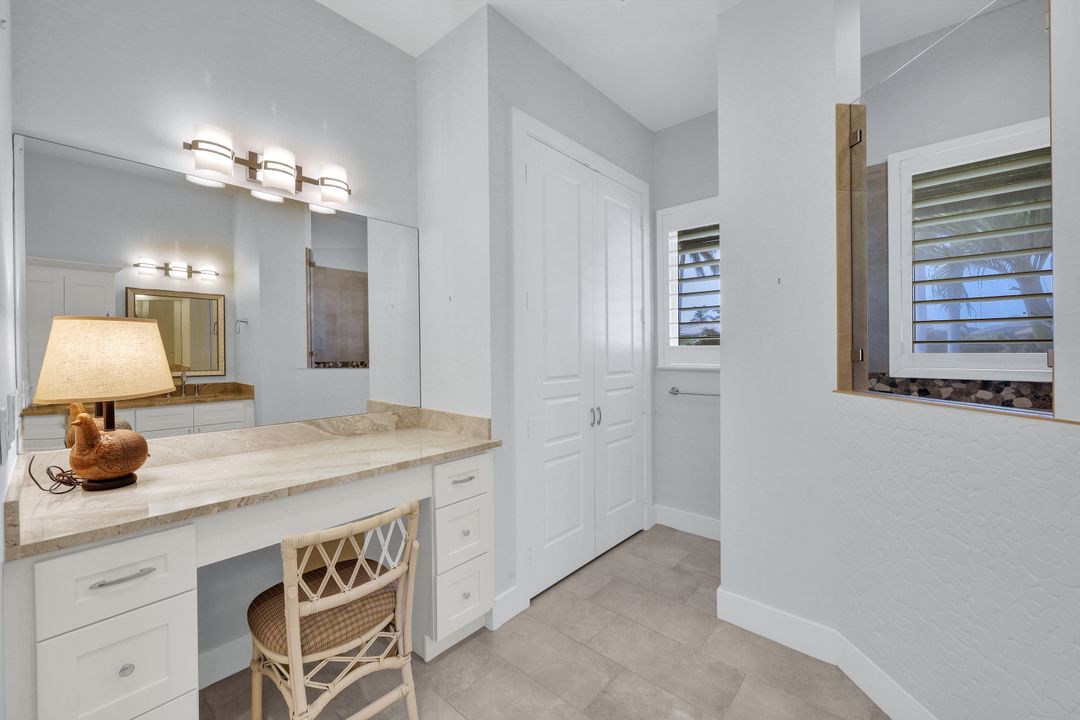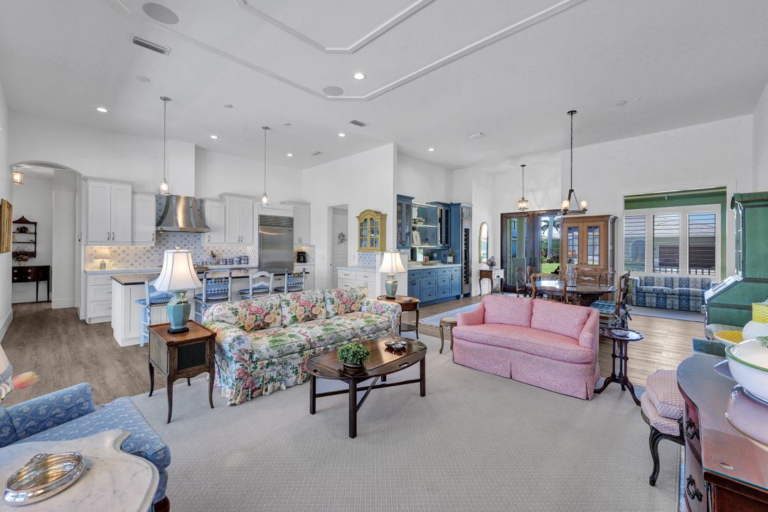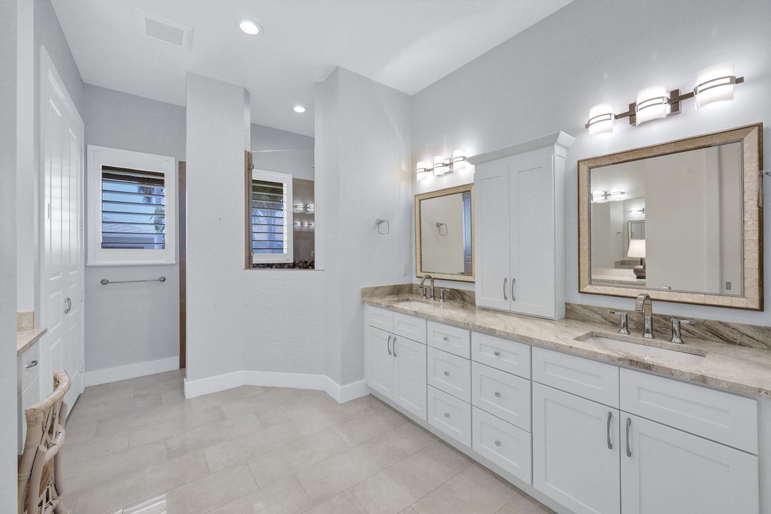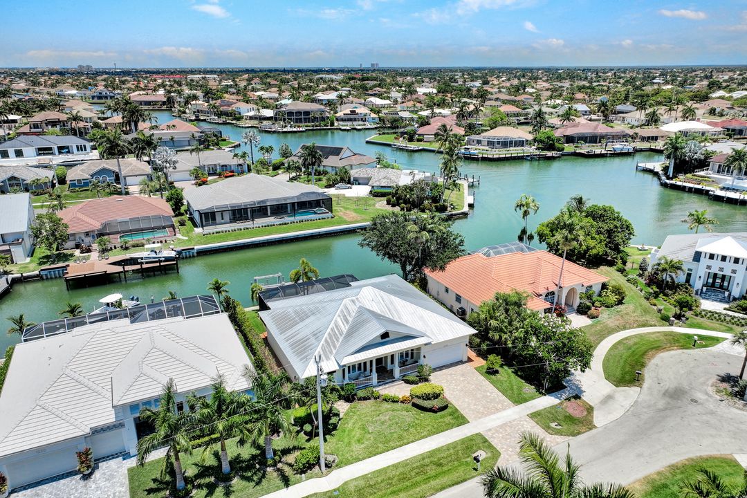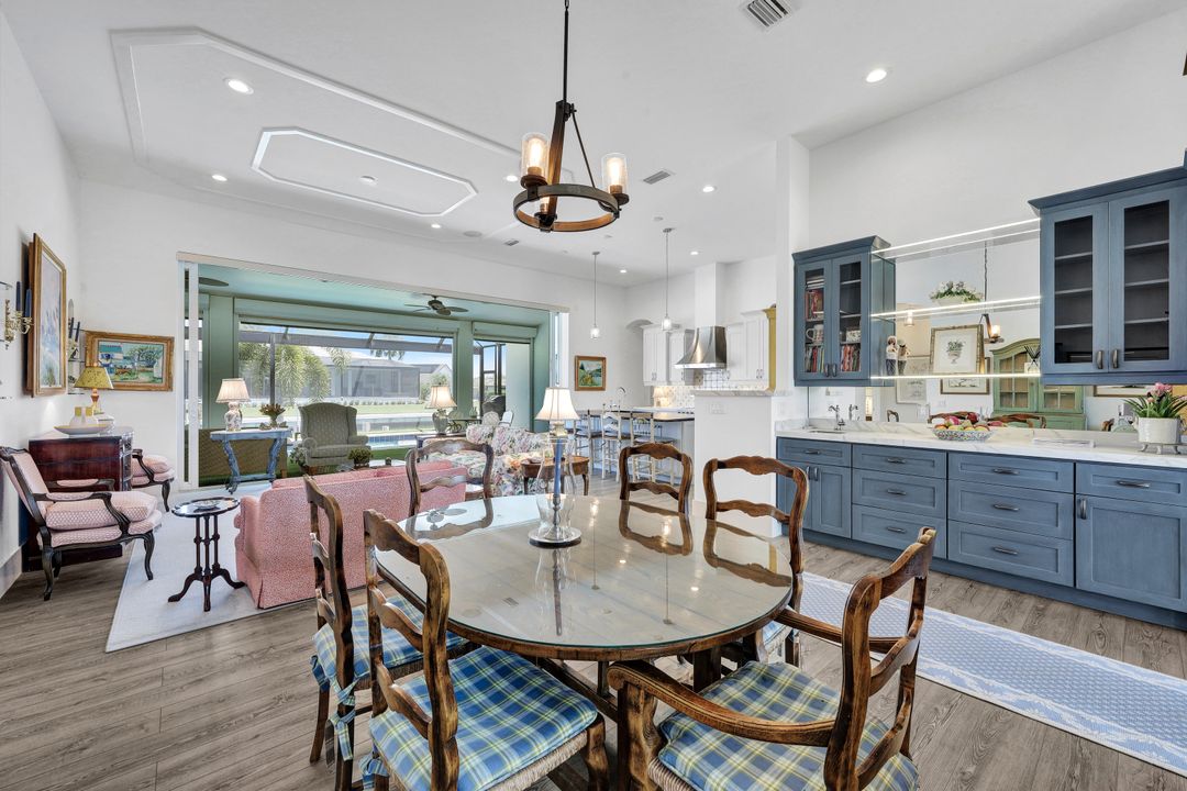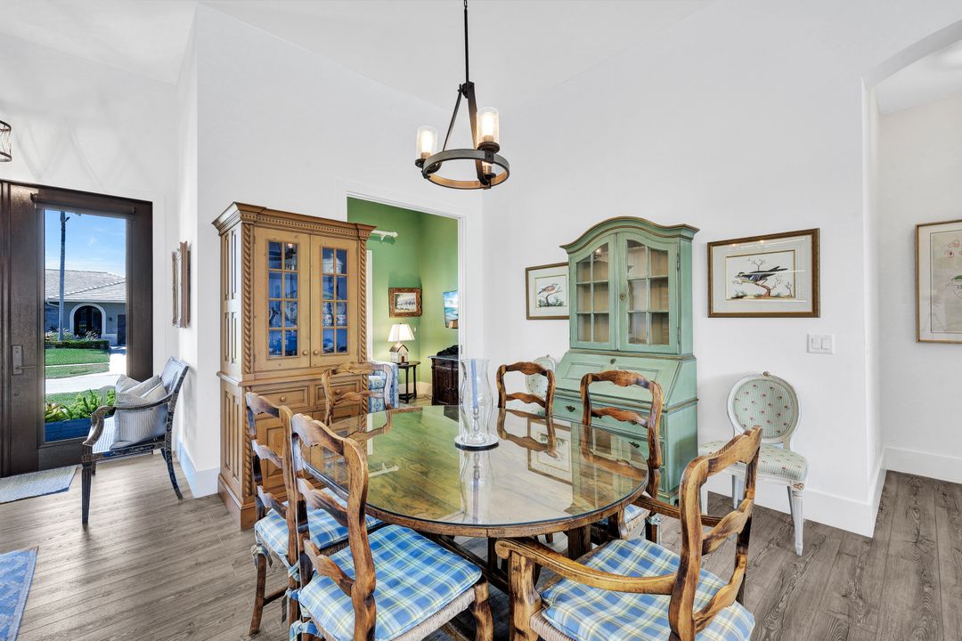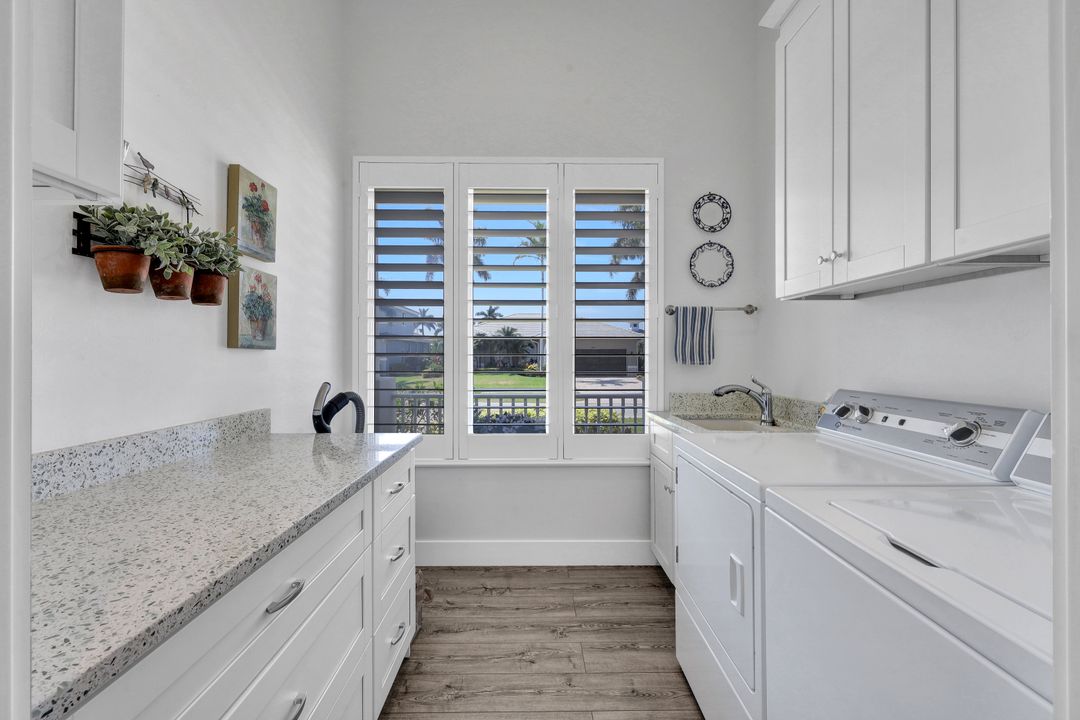 Find your paradise in this exquisitely finished waterfront 3 bedroom, 3 bath home where custom touches abound. Upon entry to the great room, be greeted with sweeping canal views through full wall retractable sliders. Entertain in a 2021 renovated Chef’s kitchen complete with a special-order blue Viking stove, Subzero refrigerator, Bosch dishwasher, Vent-A-Hood fan, soapstone island, polished nickel Perrin & Rowe faucet, and a backsplash of Delft tiles imported directly from Holland. An oversized pantry and custom hand-painted wet bar complete the space. This home brings the best of both privacy and gathering spaces with an open concept great room and dining area as well as a separate office with pocket doors overlooking the front porch. A 2021 renovated bath completes inside luxury updates. Outside, find a pool and jacuzzi on the lush lanai. New shutters and exterior lantern style lighting enhance the home’s Floridian cottage style charm, while new landscaping provides privacy, and a new Chicago Brick salvaged walkway provides luxurious access to the private dock with boat lift for quick Gulf access. Other upgrades include new pool heater and pump (2022), new air conditioner (2021), new washer and dryer, new hot water heater and Storm Smart fabric hurricane shades to protect the outside space and provide shade on sunny days. Built in 2017, this home has all the modern updates including impact glass windows, doors, and sliders that kept the home safe from damage in Hurricane Ian as well as luxury vinyl plank flooring. All that is missing is you. Welcome home.
