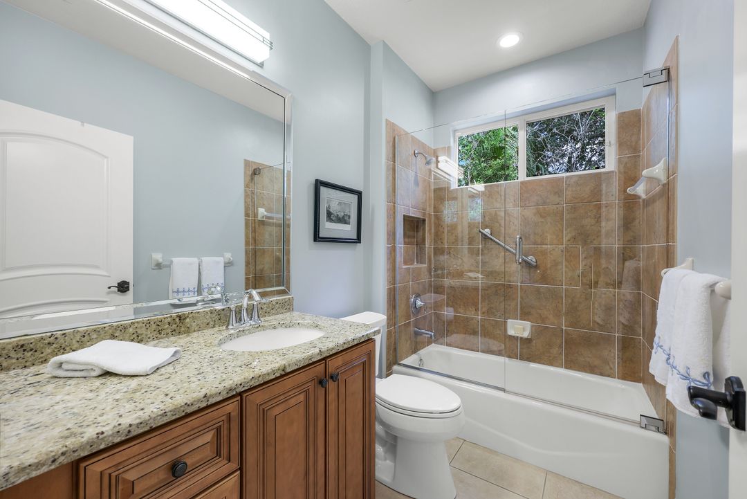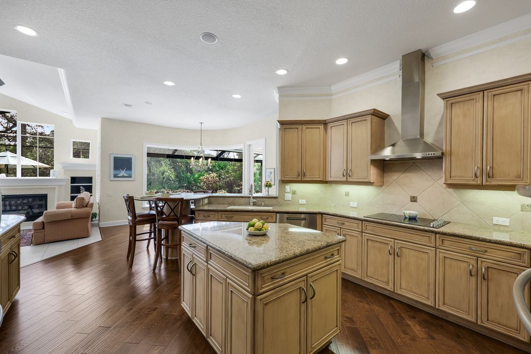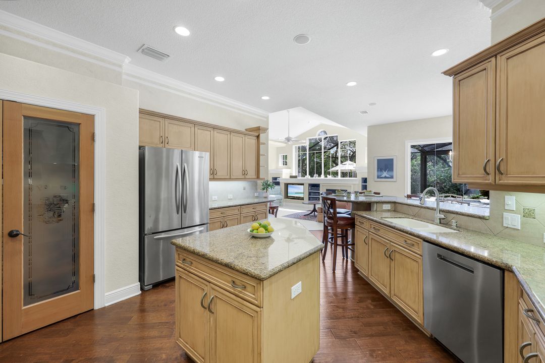 On the Sunny Side of Life ~ Tucked at the end of a quiet cul-de-sac, this residence offers the rare combination of privacy, space, and a premier southern orientation. Nestled on a generous half-acre with 185 feet of frontage against a backdrop of lush tropical foliage, the home lives like a tranquil retreat designed for both relaxation and entertaining. Inside, the light-filled four-bedroom-plus-den/office floor plan flows seamlessly, anchored by a spacious island kitchen with wood flooring, custom wood cabinetry, stainless steel appliances, and ample pantry space. Remodeled baths and a redesigned laundry room feature granite-topped, soft-close cabinetry elevating everyday living, while a gas fireplace adds warmth to the family room.