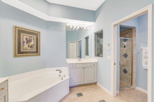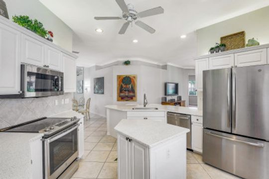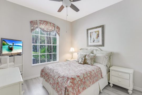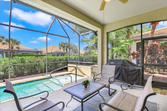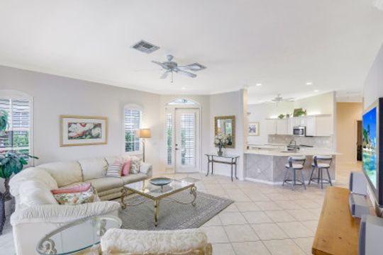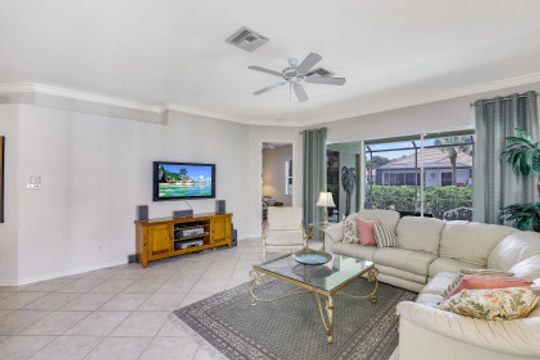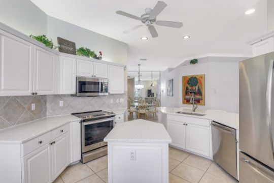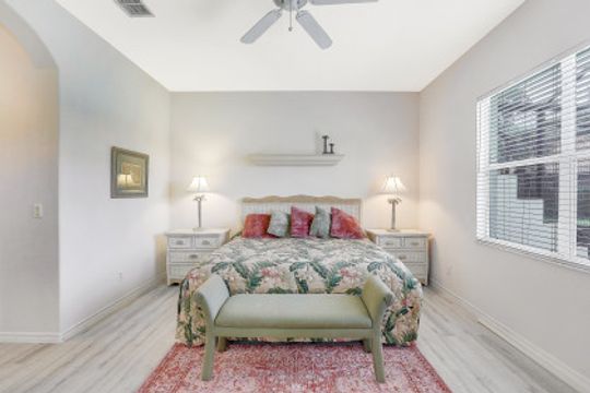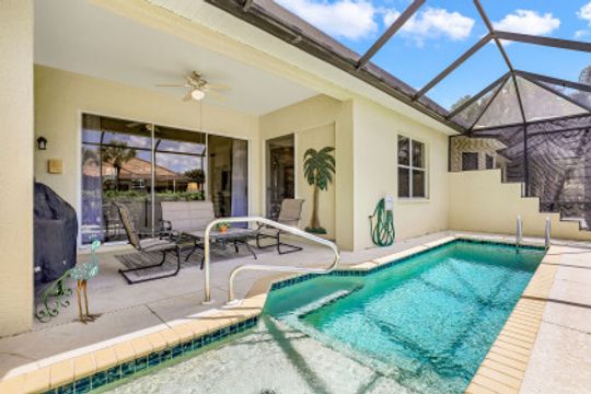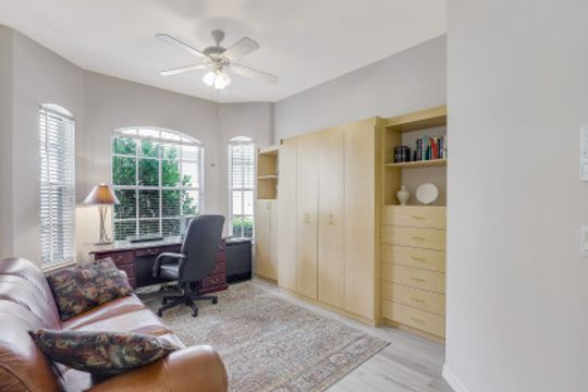 GORGEOUS VILLA POOL HOME! Updated and nicely furnished! The bright open floorplan has the spacious feel of a single family home! Beautiful crown molding and large tile in living area that opens to the lanai and heated pool, perfect for relaxing and entertaining! Large eat in kitchen with white cabinets and beautiful new granite counters and new stainless appliances! New faux wood flooring in bedrooms and den! Split bedroom floor plan offers complete privacy! Master bedroom and bathroom are both large and offer a walk-in designed closet, dual sinks, a separate tub and shower, and a water closet. The oversized den has a built-in murphy bed making it perfect for an office and guests! New Roof 2017! The 2-car garage has a Mini split a/c that is excellent for climate-controlled storage! Hunters Ridge is very friendly, casual, and offers a large variety of social activities. Hunters Ridge is financially stable with low fees and no CDD's!! Enjoy all a private golf country club has to offer including large community swimming pool with poolside cafe, club patio bar, fitness center, clubhouse, dining room and grill room, poolside cafe, tennis courts, pickleball courts, bocce ball and much more!