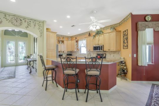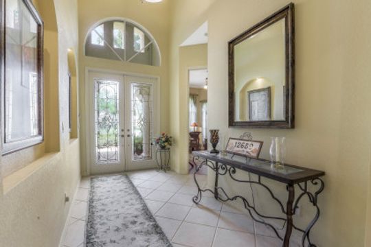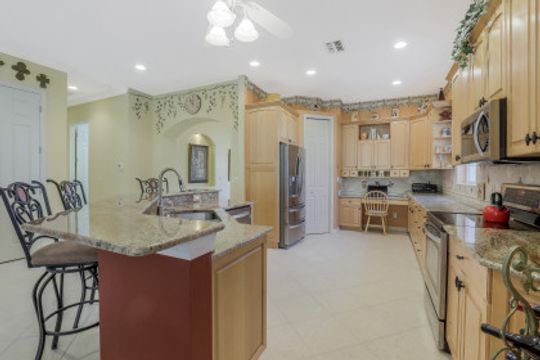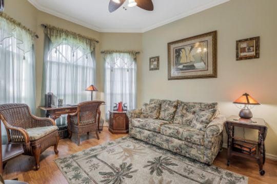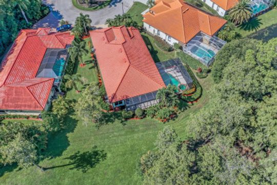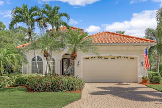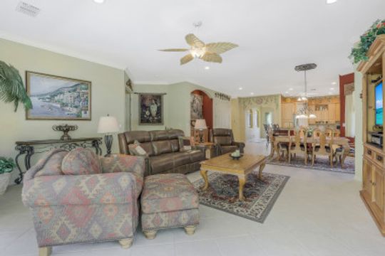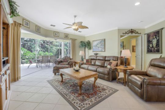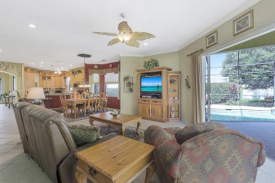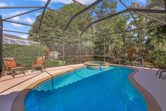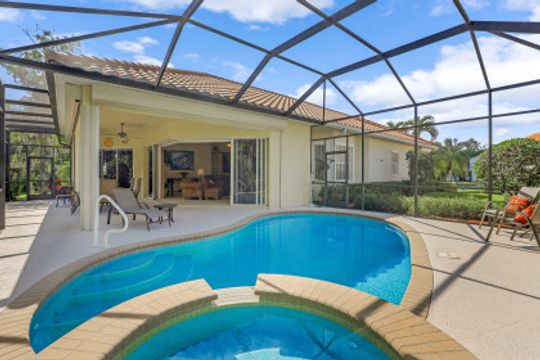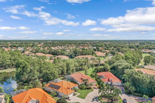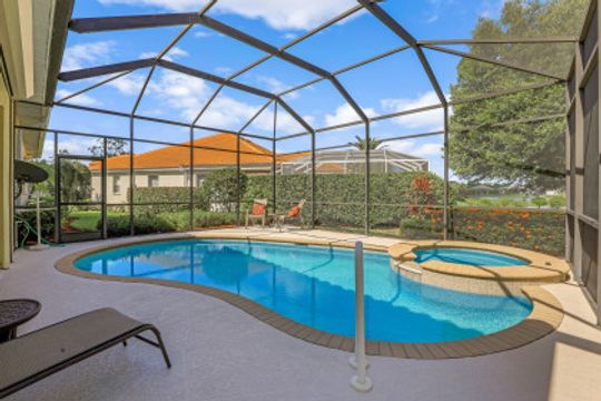 SINGLE FAMILY POOL HOME! Excellent condition meticulously maintained! Open great room floorplan with impressive foyer entry, tile throughout and crown molding in main areas, den, master bed and bathroom! Large corner sliding doors that open completely onto the spacious extended lanai with ample under cover area for entertaining and a gorgeous heated pool with overflow spa and lovely views of the preserve, lake and golf course! Open kitchen with upgraded cabinetry, granite countertops, sink and faucet, stainless appliances and plenty of counter space. Large master suite with coffer ceiling and oversized bathroom with two walk-in closets! New Roof and A/C 2018, Water Heater 2019, New Pool Heater 2018! Storm protection all around including electric roll down hurricane shutters on lanai, master bedroom and front door! Hunters Ridge is very friendly, casual, and offers a large variety of social activities. Hunters Ridge is financially stable with low fees and no CDD's!! Enjoy all a private golf country club has to offer including large community swimming pool with poolside cafe, club patio bar, fitness center, clubhouse, dining room and grill room, tennis courts, pickleball courts, bocce ball, golf simulators and much more!