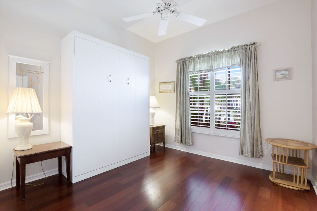 Must See Villa Home! Very Spacious, Bright Open Floorplan and Gorgeous Golf Course and Lush Landscaped View! New Roof 2017! This villa is an end residence which gives it a very private side yard and great views of the 16th hole and fairway! Great room floorplan that opens to the extended lanai, great for entertaining or relaxing and enjoying the tranquility and views. The lanai is equipped with electric hurricane shutters for storm protection and added security. The master suite offers a bay window and large master bath with a beautiful glass enclosed double shower. Both bedrooms and den feature Brazilian cherry floors with the main areas having large tile on the diagonal. The guest bedroom and den have "Murphy" beds allowing extreme flexibility in utilizing the spaces for multi-purpose needs such as office, den, media room etc. This premium lot is beautifully landscaped and beautifully maintained by the association. Hunters Ridge is very friendly, casual, and offers a large variety of social activities. Hunters Ridge is financially stable and no CDD's!! Enjoy all a private golf country club has to offer including large community swimming pool with poolside cafe, club patio bar, fitness center, clubhouse, dining room and grill room, tennis courts, pickleball courts, bocce ball, golf simulators and much more!