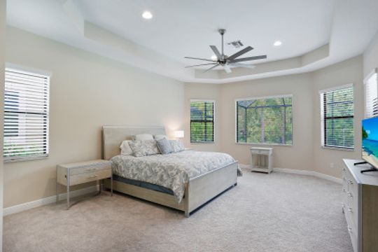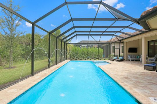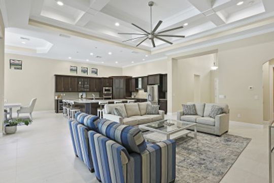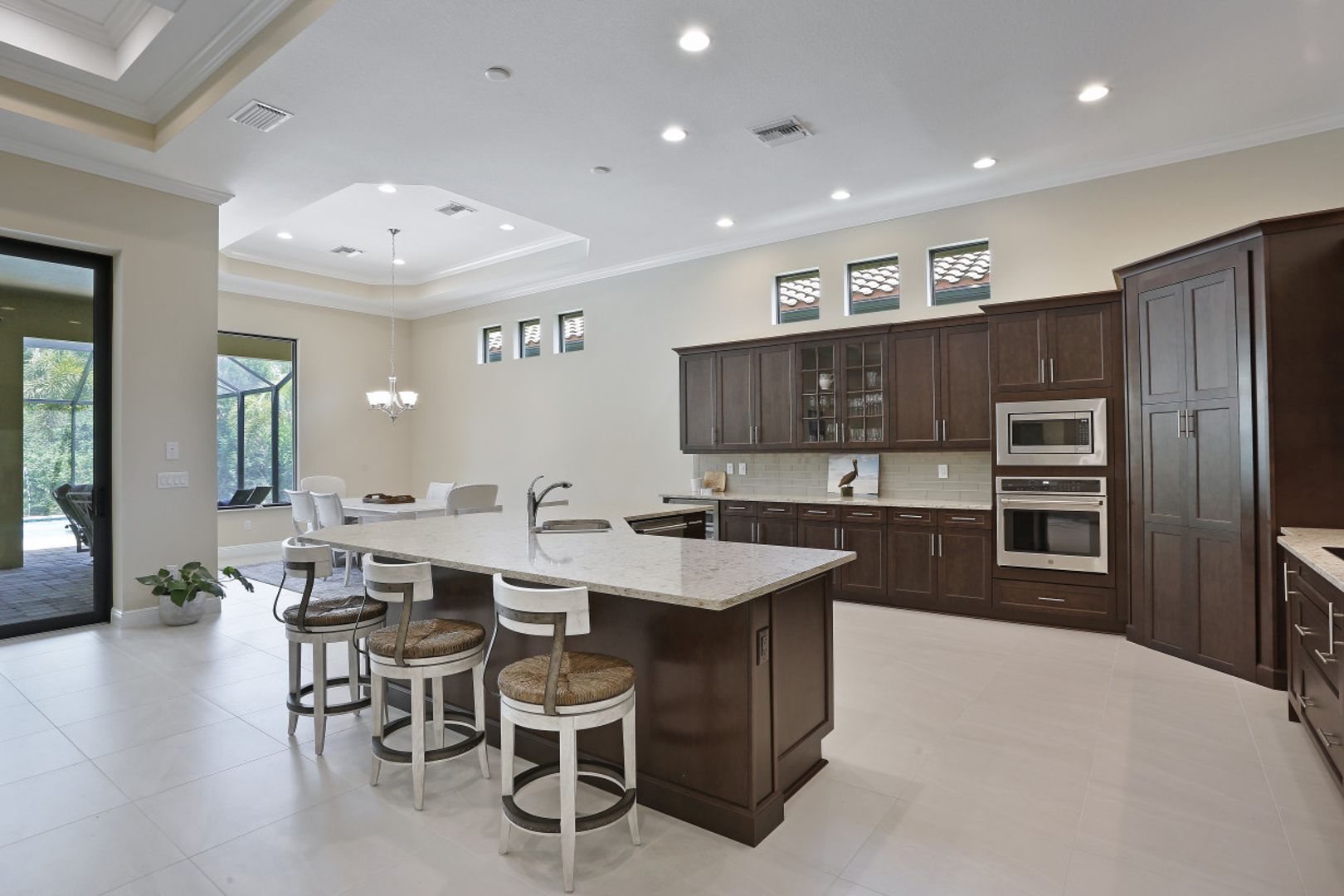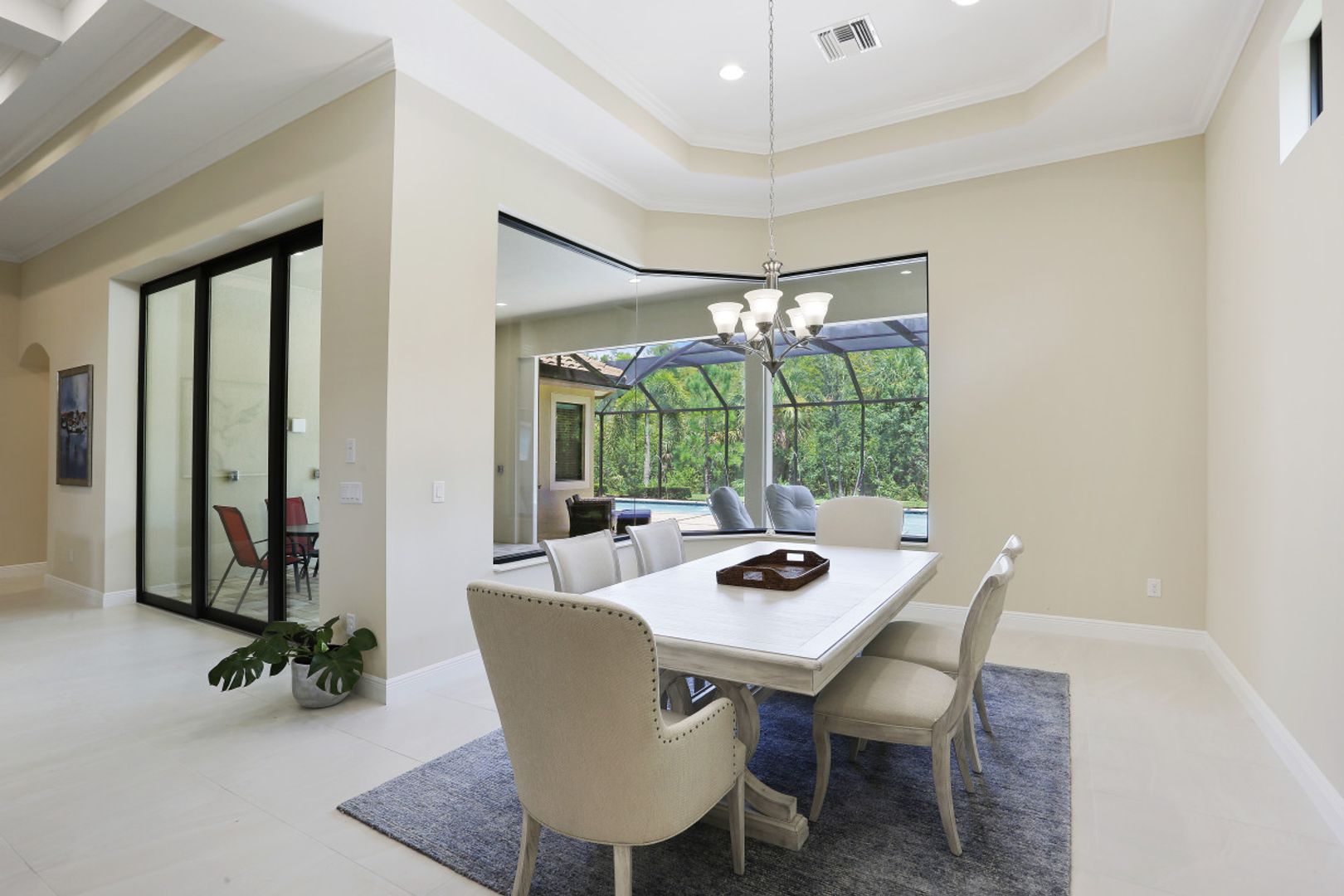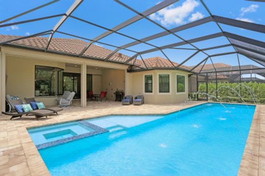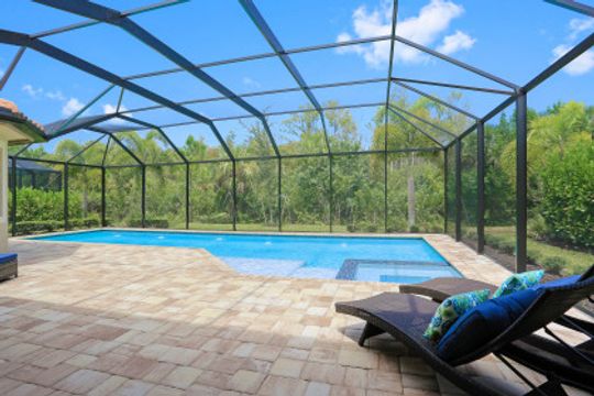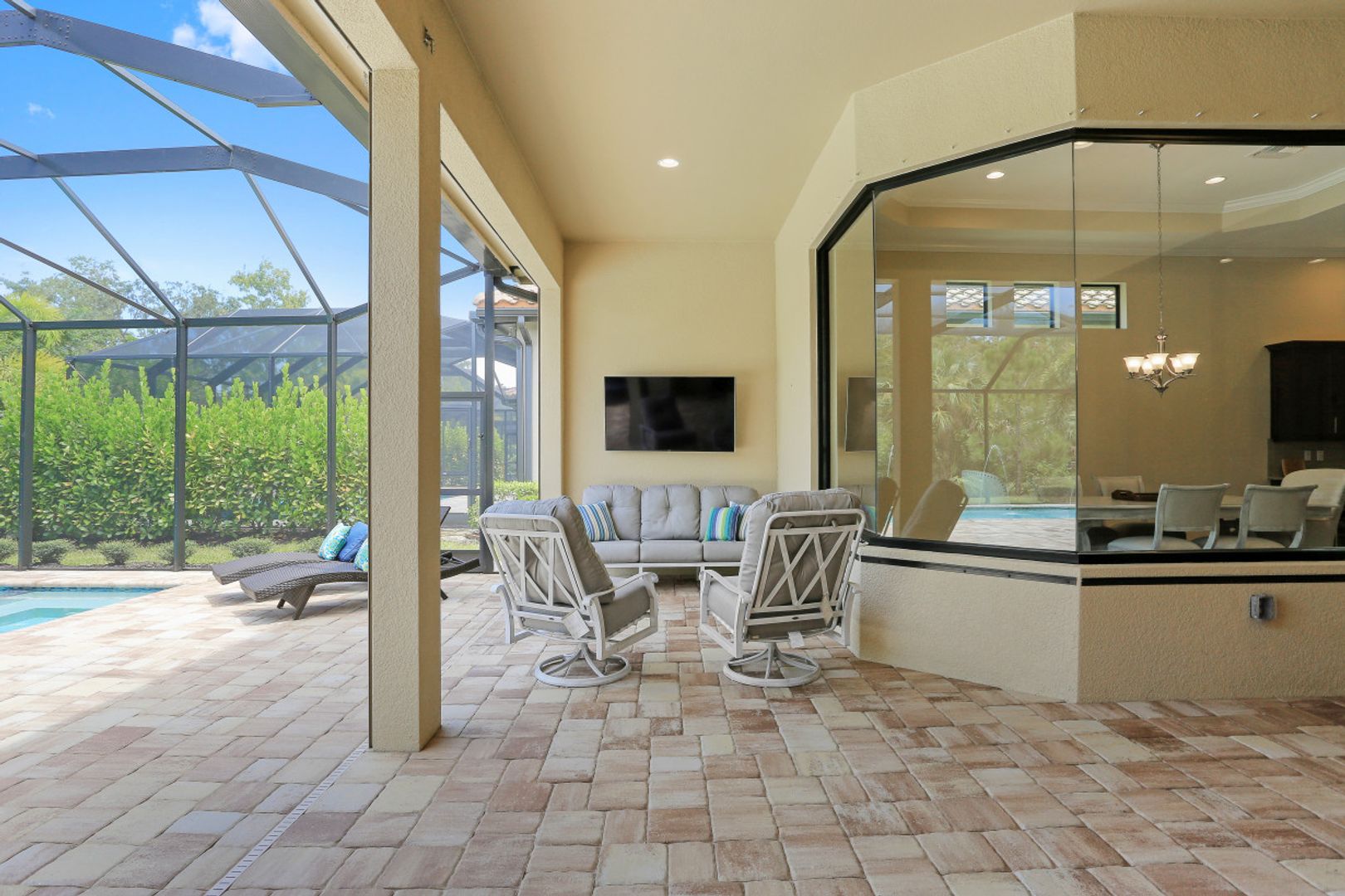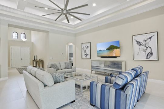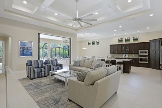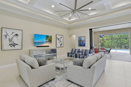 This immaculate FURNISHED/FULL GOLF MEMBERSHIP Minto built "Turnberry" features 3 Bedrooms, Den, 3.5 Baths, and extended 2 car garage (20'x24'). You will be greeted by 12' to 17' volume ceilings the moment you walk in the door which flow throughout the common areas along with a set of 10' tall disappearing sliding glass doors to the lanai. A long list of special features includes: 42'x12' LAP POOL along with flush spa and sunshelf; HURRICANE IMPACT WINDOWS/DOORS; StormSmart electric roll downs on the lanai; solid wood cabinetry with soft close doors/drawers and upgraded granite countertops; oversized rectified tile; coffered tray ceiling in the great room; outdoor kitchen preplumb; ensuite baths in both guest suites along with walk in closets; and more! NO CDD FEE! Twin Eagles is a one-of-a-kind community located in North Naples featuring 36 holes of golf, surrounded by natural preserves and lakes. Live a vacation lifestyle at Twin Eagles, a manned gated community which includes a resort pool, community pool, gym, tiki bar, aerobics studio, tennis courts, restaurant, pro shop, miles of walking paths, social activities, and two 18 hole golf courses! FULL GOLF MEMBERSHIP INCLUDED!