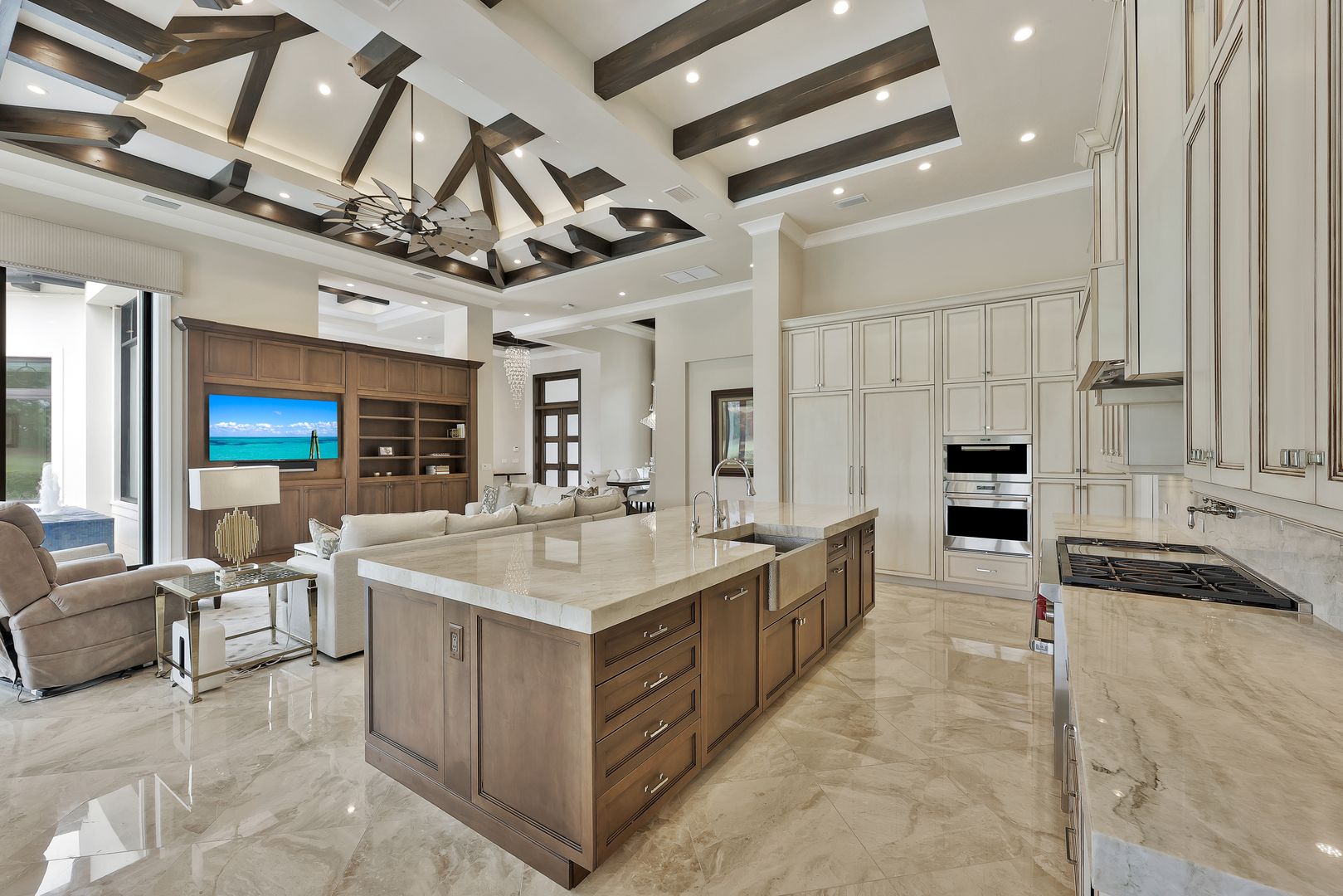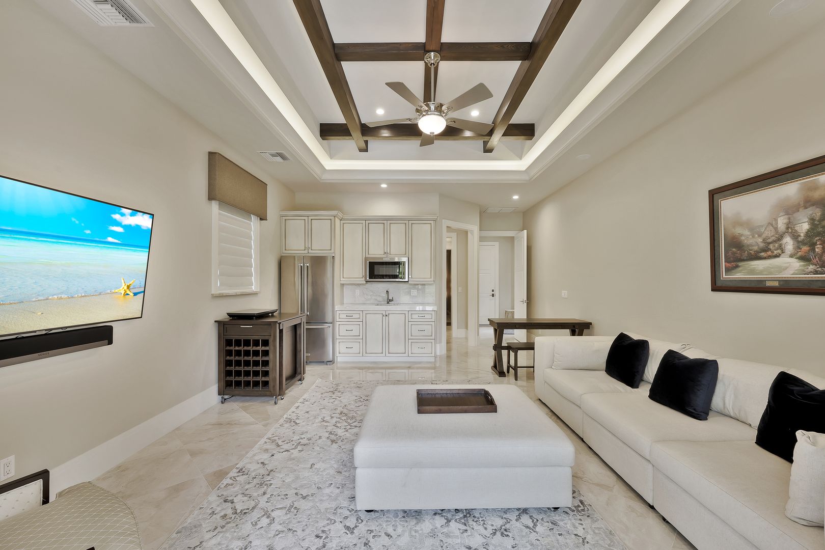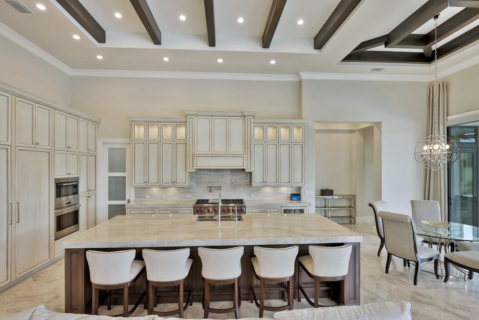 This furnished luxurious custom estate built by Bill Stancel, originally for himself, showcases timeless architectural design with impeccable attention to detail. As you enter you are welcomed by the expansive open floor plan, custom built-in cabinetry, beautiful polished marble flooring and exotic onyx counters. Oversized windows bring the outside in offering sunset, lake and golf course views. The estate holds numerous upgrades including an amazing gourmet kitchen complete with natural quartzite counter tops, sub zero and wolf appliances, walk-in pantry and oversized center island. The expansive outdoor living space offers an abundant lifestyle including a custom pool, raised spa, sun shelf, recessed fire pit, outdoor kitchen and a gracious covered area. Additional upgrades include solid wood flooring, custom wood beams, icynene insulation, generator and a split 4.5 car garage. Not to be outdone, this property boasts a private guest house that includes an open living area, morning kitchen, bed, bath and laundry. Come experience the most spectacular property Renaissance has to offer.