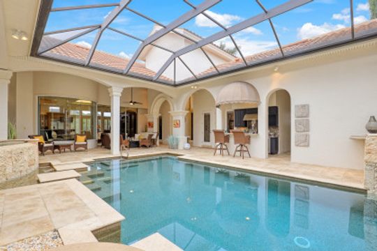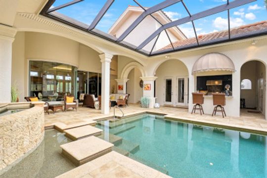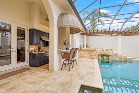 LUXURY ESTATE HOME! Your own paradise with a resort feel which includes 2 POOLS! Experience a TRULY unique luxury lifestyle in this beautiful custom built home located in the Terabella of Renaissance. This home has four en-suite bedrooms, powder bath, and pool bath. Unparalleled attention to detail, this architectural masterpiece marries classic design with modern amenities. Striking NEW CUSTOM Rod Iron entry doors, exquisite ceiling details, and elaborate custom mill work enhance the appeal of this home. An exquisite updated kitchen features new Kitchen Aid, Gas Wolf cooktop & Sub-Zero refrigerator. The attention to detail is unsurpassed. The owner's wing boasts a gorgeous suite with an enormous spa bath. Within the privacy of the courtyard you will enjoy the pool, soothing spa and the built-in outdoor kitchen. Enjoy as well the large outside lush surrounding landscaped lap pool with an infinity edge featuring a beautiful rock waterfall, outdoor kitchen & fireplace overlooking the water and golf course. Entertain in style with these two seamless indoor/outdoor spaces. If you love to entertain this home offers all the amenities. This home has a newly installed whole home generator (2021) and a 750 gallon propane tank. Enjoy Renaissance's lifestyle Arthur Hills golf course, pool, tennis, pickle ball courts and a full service spa & fitness center.
