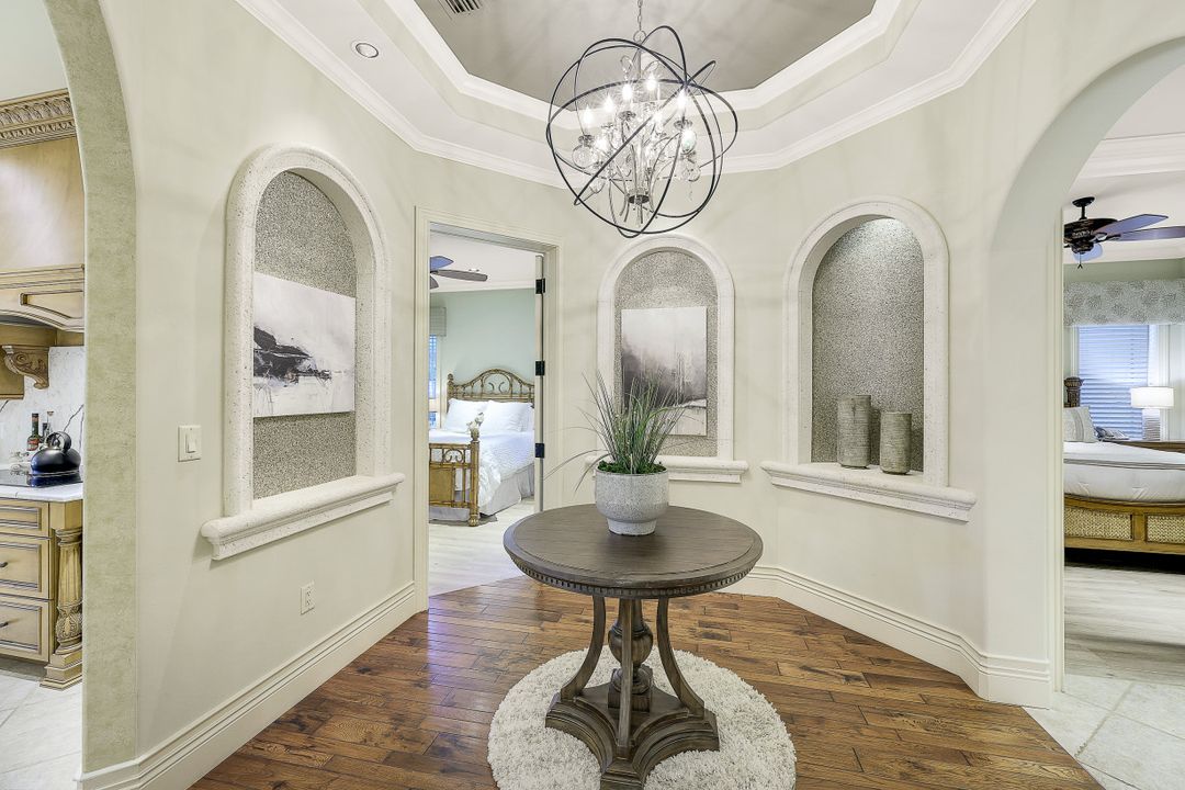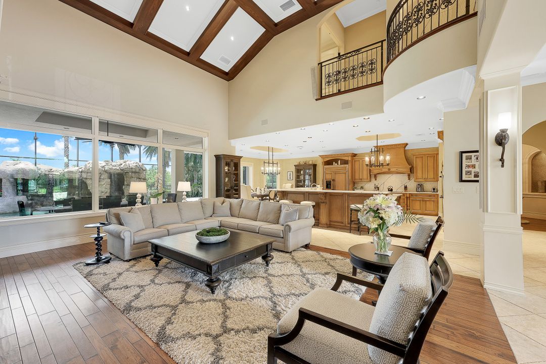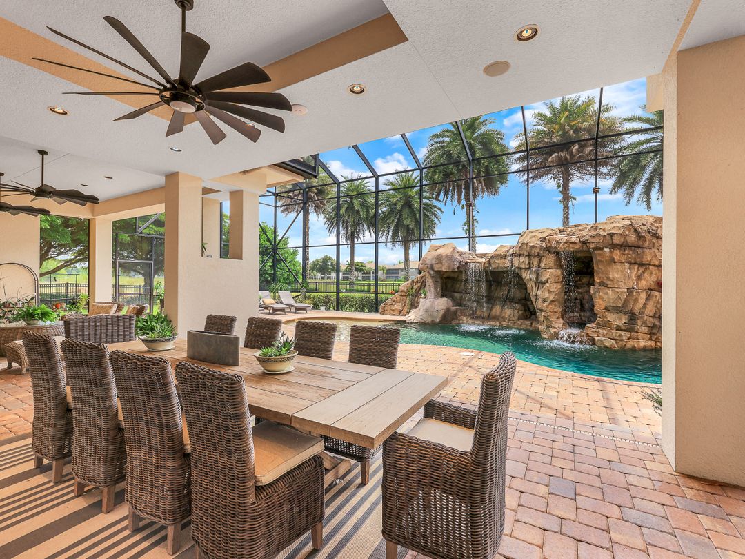Welcome to this gorgeous custom Grand Estate Home located in the Terabella neighborhood of Renaissance! The construction of this property is like no other, offering steel truss and concrete construction from top to bottom. This home boasts four en-suite bedrooms plus powder bath, an extraordinary bonus room/bedroom with custom built-in bar and wine cellar... an endless amount of space for entertaining! The outdoor living area showcases an abundance of covered & uncovered screened-in patio space, a built-in outdoor kitchen, fireplace, and impressive custom pool & spa with descending waterfall feature. The lush surrounding landscaping creates a wonderful oasis and added privacy. This luxury home is perfectly positioned on a .50 acre private corner lot overlooking the tranquil lake and golf course views. A masterpiece of fine craftsmanship — the interior features inlayed tile and hardwood planked flooring, rich wood cabinetry throughout, coffer ceilings, Viking luxury appliances, and beautiful custom countertops. Enjoy the Master Suite with private balcony, large walk-in closets, dual vanities and an over-sized vault style shower with glass doors. This home is the perfect retreat!