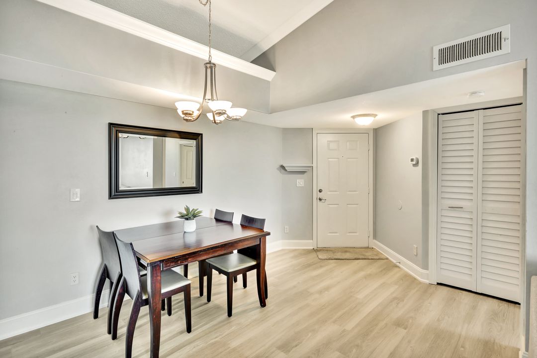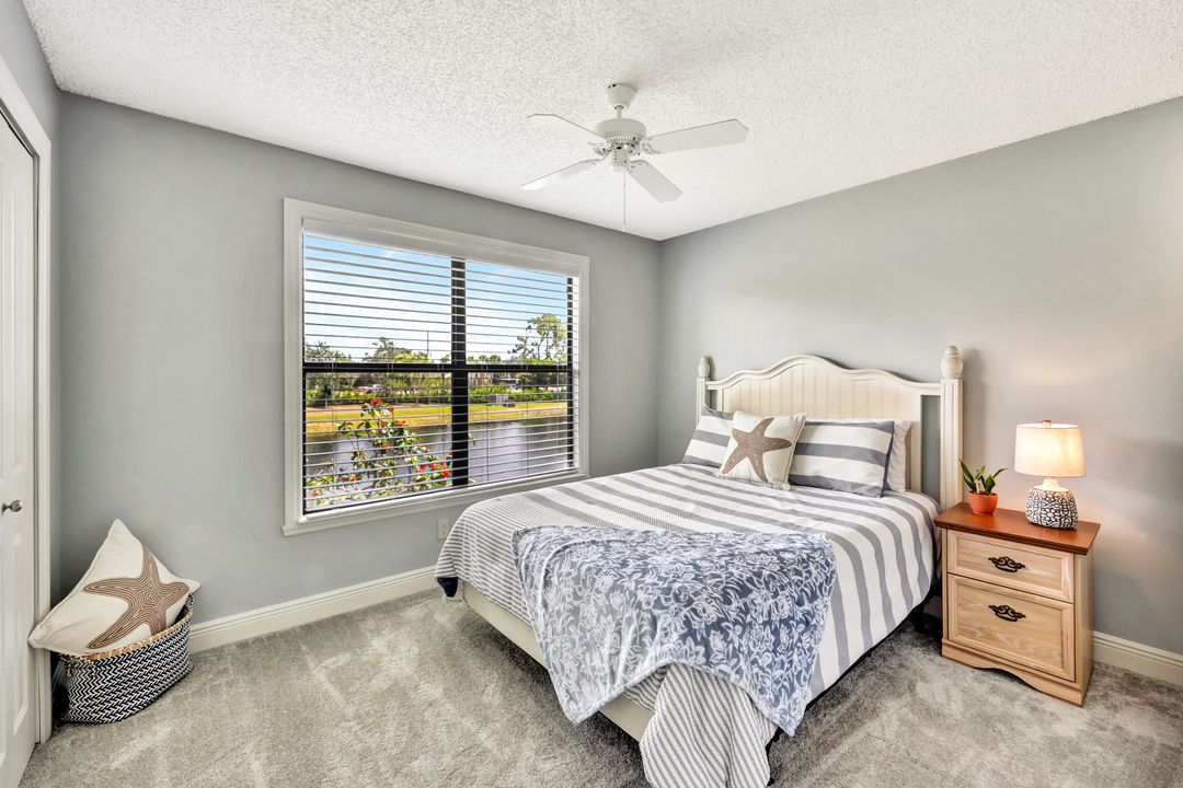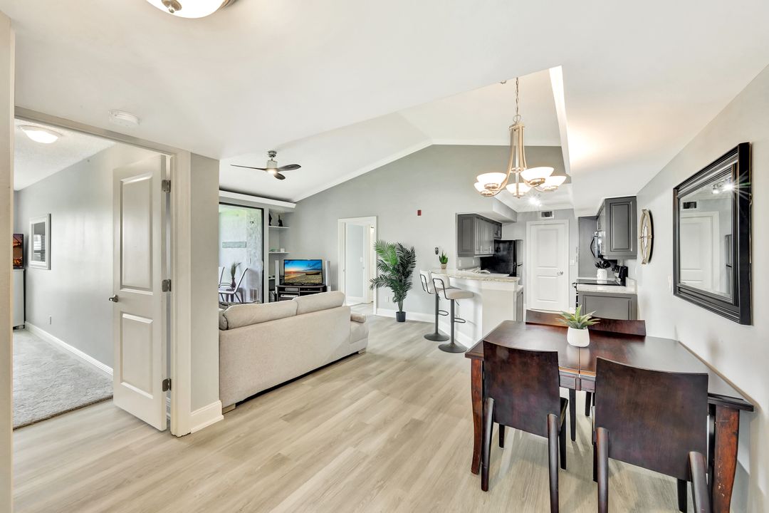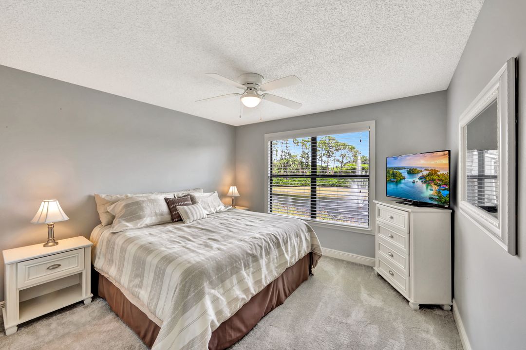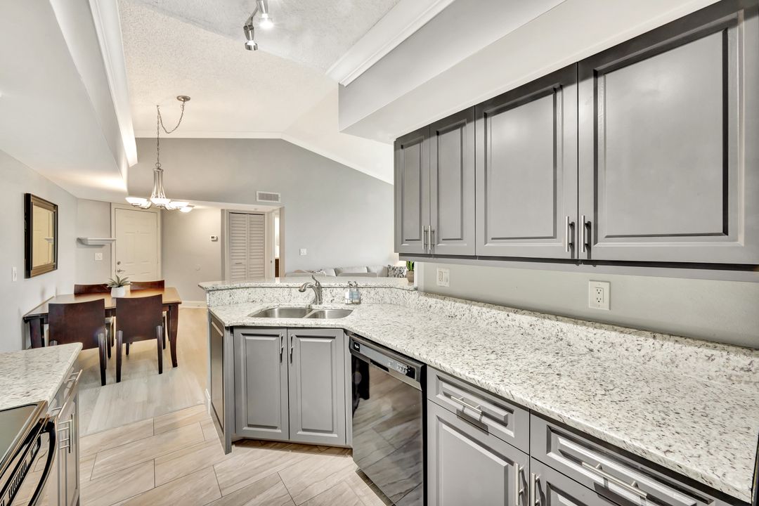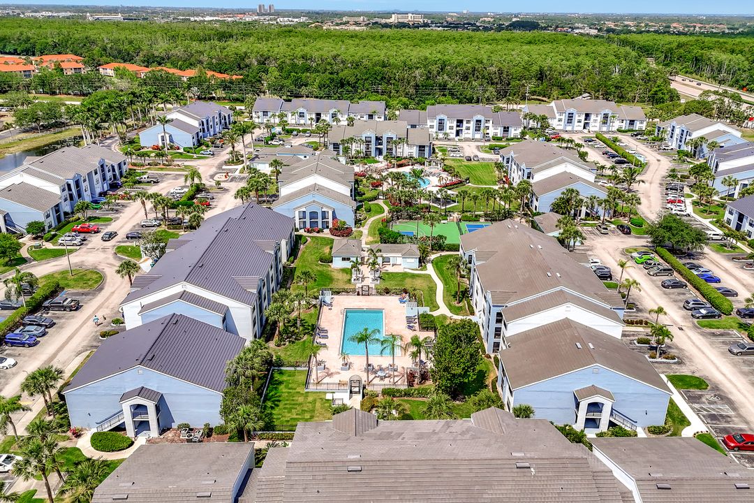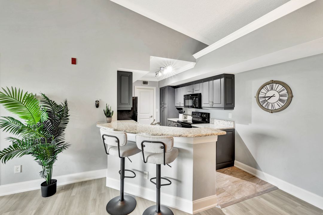 Renovated 3 Bed, 2 Bath second- floor Condo with Lake Views at Musa at Daniels. Enjoy peaceful lake and fountain views from your extended screened lanai, a rare feature that gives you just a little more room to relax and unwind. Inside, the kitchen is thoughtfully updated with quartz countertops, soft-close drawers, black appliances, and a spacious pantry. The vaulted ceilings create an open, airy feel, while luxury vinyl and tile flooring highlight the main living areas and cozy carpeting warms the bedrooms. Both secondary bedrooms can be conveniently separated by a door, perfect for privacy or guests, and the primary suite features a large walk-in closet. Additional updates include a new hot water heater, an AC unit that is just a few years old, and a recently completed roof (2023). A laundry closet is tucked away for easy access. The active community offers two pools, a fitness center, tennis courts, and a vibrant social atmosphere. Your HOA dues conveniently cover internet and Direct TV. Plus, this condo comes with the opportunity to inherit a garage lease by continuing the affordable monthly rental—a fantastic bonus for extra storage or covered parking. Located just minutes from I-75, this home combines comfort, style, and an unbeatable central location. Don't miss out on this move-in ready opportunity!