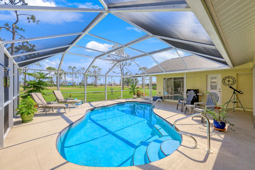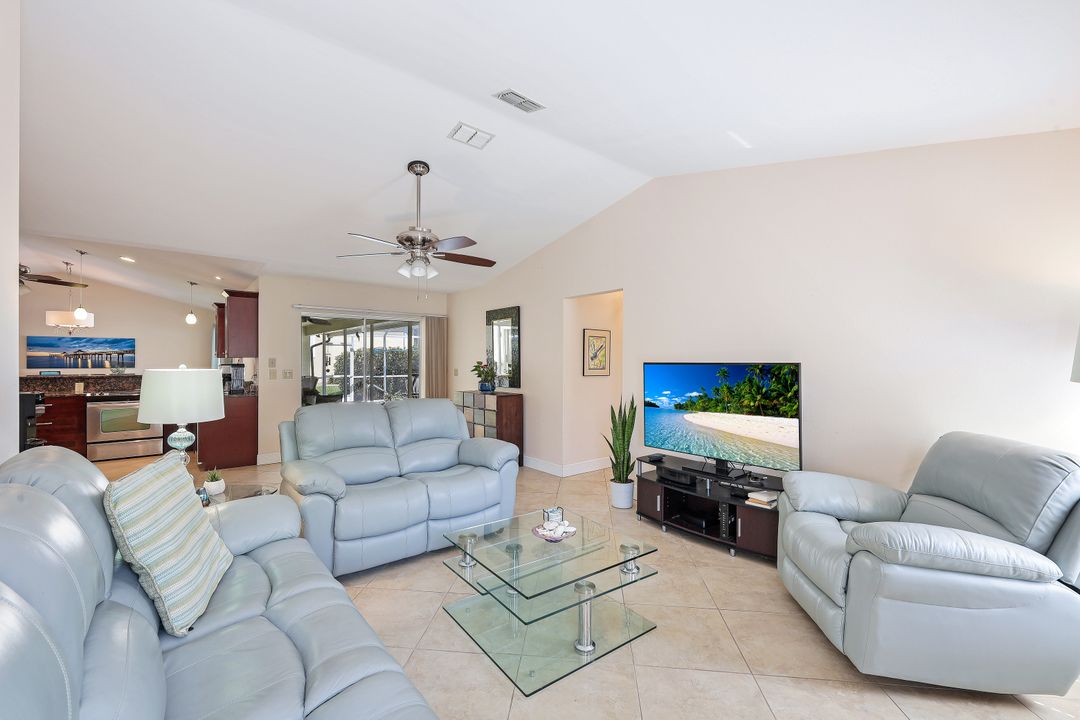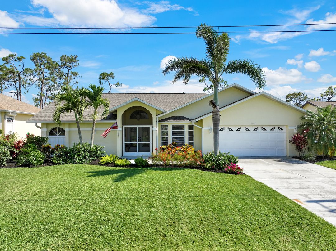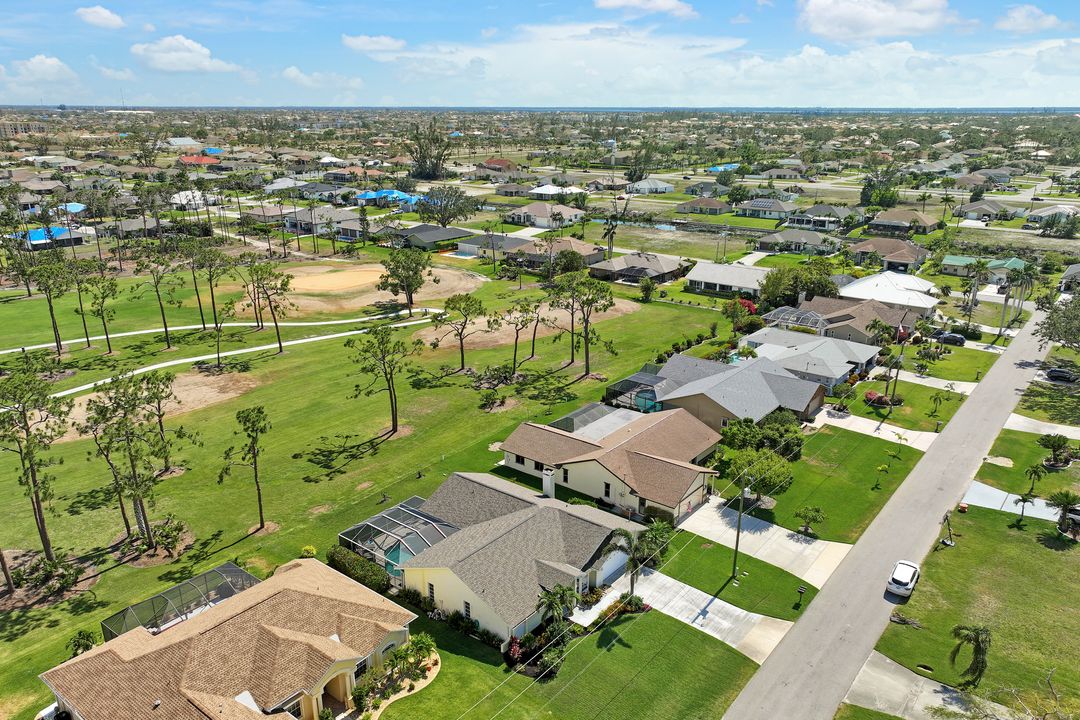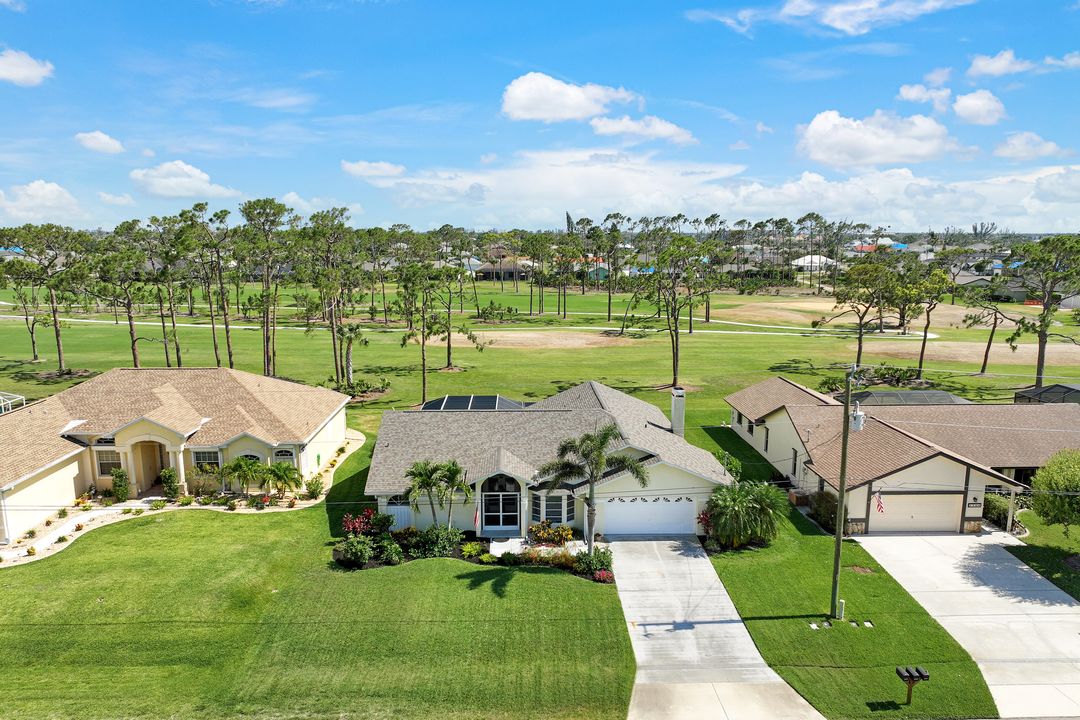 CALLING ALL GOLFERS - Desirable Southern Exposure and a Beautiful View of the 17th Hole on Palmetto Pine Golf Course! Located in Southwest Cape Coral, this Updated Pool Home is move-in ready, and has great curb appeal. The decorative double front doors welcome you into this spacious home with an Open floor plan, 1986 sq ft of living area, 3 Bedrooms, 2 Baths, and a large outdoor lanai and pool area perfect for entertaining. You will love the Huge Updated Kitchen with Granite Counters, Plentiful Wood Cabinets & Counter Space, Stainless Steel Appliances and Breakfast Bar. The Master bath has a Double Sink Vanity, Shower and Garden Tub. Additional features include: Tile on the Diagonal (carpet in 2 bedrooms), Fireplace, New Roof 2021, New AC 2022, New Pool Pump 2022, New Super Screens and reinforced Pool Enclosure 2023, New Pool Light 2020, New Whole House Water Conditioner system, New Tile in the Master bedroom, Walk-in Closets in All Bedrooms, Large Laundry room with utility tub, a Pool bath, and Pull-down stairs for attic access. The Kitchen, Family room, all Bedrooms, Master Bath, Laundry room, and the Lanai are equipped with Ceiling Fans. ALL UTILITY ASSESSMENTS PAID IN FULL! Palmetto Pine Golf Course has No membership required and No HOA fees, you can pay as you play. Ideal location close to Dining, Shopping and Beaches, with easy access to Fort Myers, RSW International Airport and the Punta Gorda Airport. Make an Offer Today!