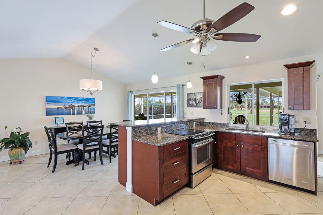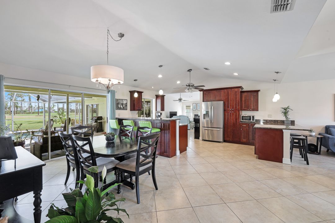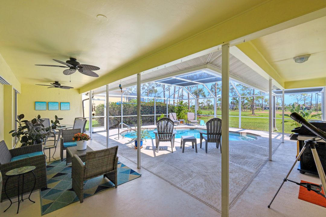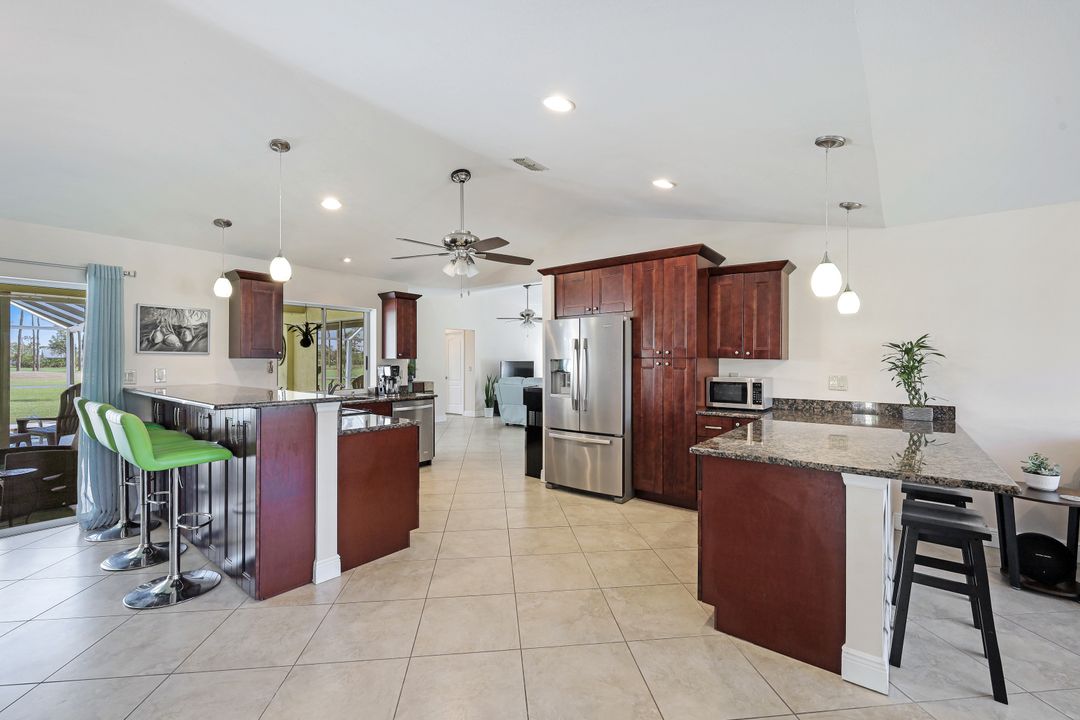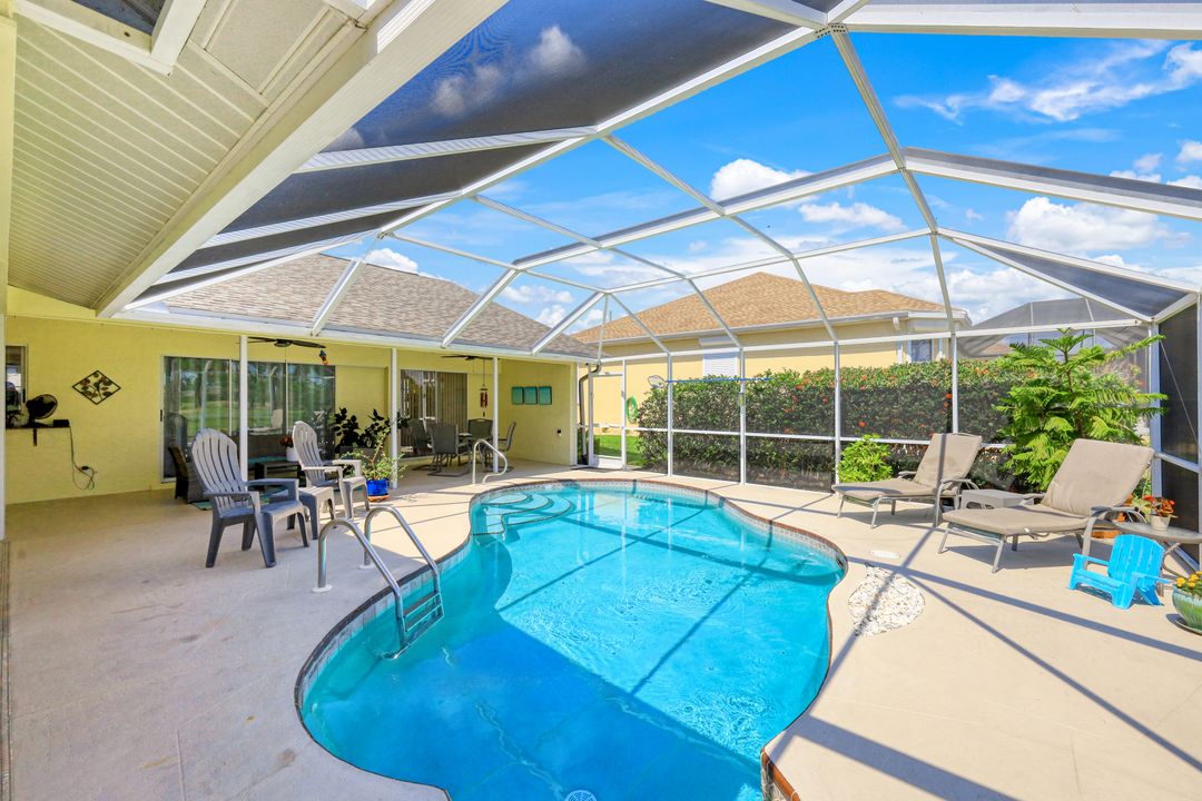 CALLING ALL GOLFERS - Desirable Southern Exposure and a Beautiful View of the 17th Hole on Palmetto Pine Golf Course! Located in Southwest Cape Coral, this Updated Pool Home is move-in ready, and has great curb appeal. The decorative double front doors welcome you into this spacious home with an Open floor plan, 1986 sq ft of living area, 3 Bedrooms, 2 Baths, and a large outdoor lanai and pool area perfect for entertaining. You will love the Huge Updated Kitchen with Granite Counters, Plentiful Wood Cabinets & Counter Space, Stainless Steel Appliances and Breakfast Bar. The Master bath has a Double Sink Vanity, Shower and Garden Tub. Additional features include: Tile on the Diagonal (carpet in 2 bedrooms), Fireplace, New Roof 2021, New AC 2022, New Pool Pump 2022, New Super Screens and reinforced Pool Enclosure 2023, New Pool Light 2020, New Whole House Water Conditioner system, New Tile in the Master bedroom, Walk-in Closets in All Bedrooms, Large Laundry room with utility tub, a Pool bath, and Pull-down stairs for attic access. The Kitchen, Family room, all Bedrooms, Master Bath, Laundry room, and the Lanai are equipped with Ceiling Fans. ALL UTILITY ASSESSMENTS PAID IN FULL! Palmetto Pine Golf Course has No membership required and No HOA fees, you can pay as you play. Ideal location close to Dining, Shopping and Beaches, with easy access to Fort Myers, RSW International Airport and the Punta Gorda Airport. Make an Offer Today!
