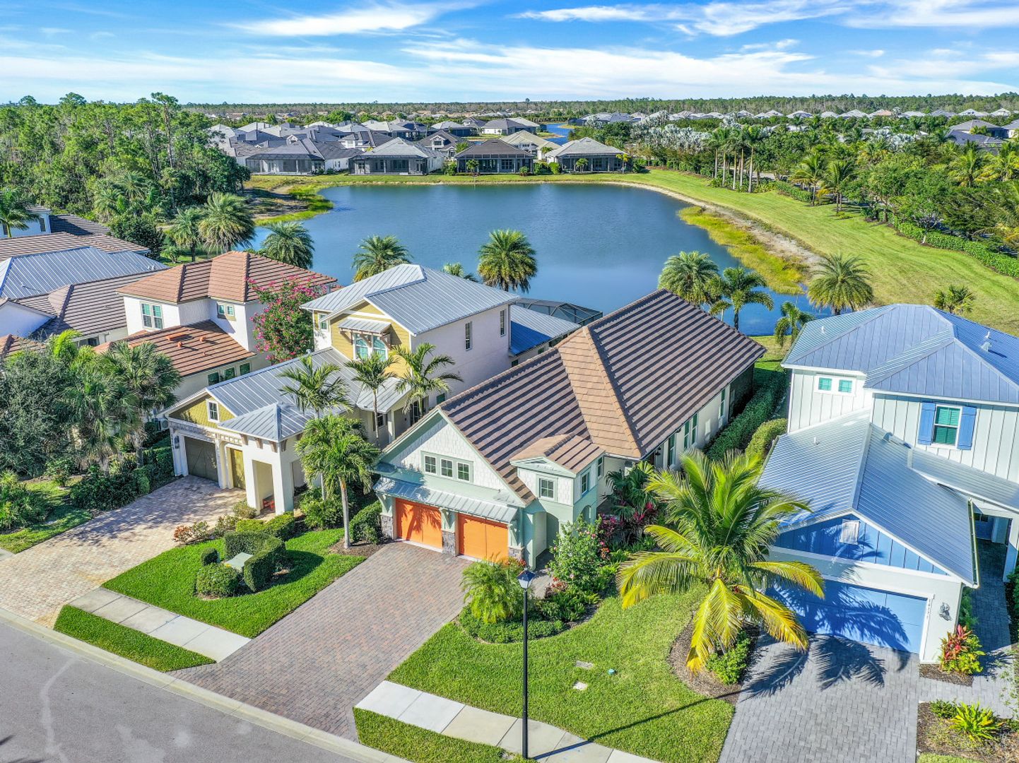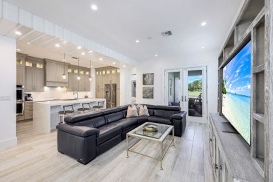 LIVE A VACATION LIFESTYLE IN NAPLES RESERVE! This immaculate FURNISHED 2 Bedroom plus Den, 2 Bath single family home offers a light & bright great room style floorplan and is situated on quiet cul-de-sac street just steps away from amenity center. When you step inside you will find wood look tile throughout the entire home, tons of HURRICANE IMPACT WINDOWS with plantation shutters, shaker style baseboards/trim, extra recessed lights, and a highly upgraded kitchen complete with upper cabinets, soft close doors/drawers, farm house style sink, upgraded appliances including a double wall oven, and double thick quartz countertops with waterfall edge & full quartz backsplash. Other fine appointments include custom closets, epoxy garage floor, car charging station, electric retractable bug screens on the lanai, custom office built-ins/desk, and more! NAPLES RESERVE offers a long list of amenities: resort pool; tiki bar; cafe; fitness center; 5 tennis courts; 4 pickleball courts; 2 bocce courts; dog park; playground; boat ramp; lakefront beach with sand volleyball and water toys; private island; and more! Great location close to Downtown Naples, Marco Island, and I75! Dues only $1443/qtr!