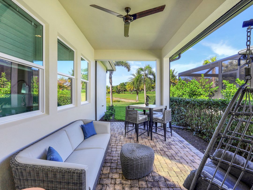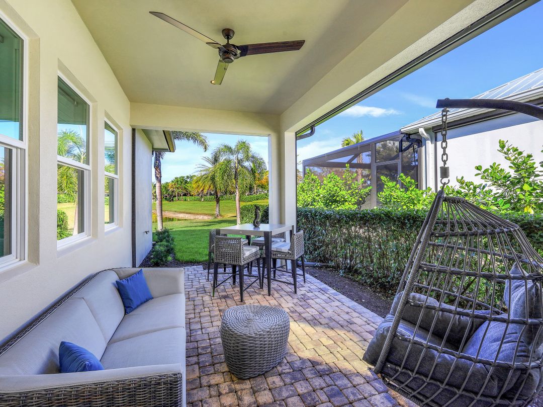 LIVE A VACATION LIFESTYLE IN NAPLES RESERVE! This immaculate FURNISHED 2 Bedroom plus Den, 2 Bath single family home offers a light & bright great room style floorplan and is situated on quiet cul-de-sac street just steps away from amenity center. When you step inside you will find wood look tile throughout the entire home, tons of HURRICANE IMPACT WINDOWS with plantation shutters, shaker style baseboards/trim, extra recessed lights, and a highly upgraded kitchen complete with upper cabinets, soft close doors/drawers, farm house style sink, upgraded appliances including a double wall oven, and double thick quartz countertops with waterfall edge & full quartz backsplash. Other fine appointments include custom closets, epoxy garage floor, car charging station, electric retractable bug screens on the lanai, custom office built-ins/desk, and more! NAPLES RESERVE offers a long list of amenities: resort pool; tiki bar; cafe; fitness center; 5 tennis courts; 4 pickleball courts; 2 bocce courts; dog park; playground; boat ramp; lakefront beach with sand volleyball and water toys; private island; and more! Great location close to Downtown Naples, Marco Island, and I75! Dues only $1443/qtr!