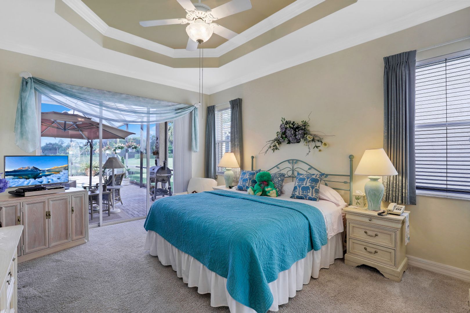 This highly desired "Aquamarine" floorplan of Saturnia Lakes features 4 Bedrooms, 3 Baths, 3 Car Garage, and 2616 Sq Ft all on one level! You will enjoy sitting on the lanai overlooking the pool and private, tranquil lake and landscaped view in the distance. Southwestern exposure means this home is light and bright and also makes the pool deck the perfect area for enjoying the Florida sun! 12' ceilings, multiple sliders to the lanai, transom windows, and 8' doors greet you the moment you walk in the front door. Extended garage (30'x22'), ELECTRIC ROLL DOWN & ACCORDION SHUTTERS on all openings, diagonal tile floors, updated laminate floorings, and crown molding are just some of this home's special features. "Club at Saturnia Grande" offers resort pool, hot tub, lap pool, kiddie pool, saunas, fitness center, billiards room, ball room, 4 tennis courts, basketball court, and more! HOA fees include Landscaping, Irrigation, Clubhouse Amenities, Alarm Monitoring, Cable TV, Internet, and Phone! A RATED SCHOOLS! Prime NORTH NAPLSE LOCATION just 5 min to I75, 7 min from Seed to Table, 15 min to Mercato, 20 min to the Beach, 30 min to Downtown/5th Ave, and 25 min to RSW Airport.
