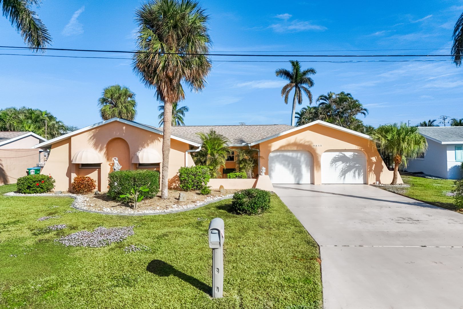 GULF ACCESS POOL HOME JUST MINUTES TO OPEN WATER!!! Discover the perfect blend of style, comfort, and location with this stunning 3-bedroom, 2-bathroom, 2-car garage, Gulf access pool home in the heart of SE Cape Coral making this home a boaters dream. Features you'll love include the stylish flooring with solid surface floors throughout, with luxury vinyl in the bedrooms and living room, and tile in the kitchen, bathrooms, and other spaces. The updated kitchen showcases wood shaker cabinets, gorgeous granite countertops, and stainless steel appliances, making meal prep a breeze. Both bathrooms are elegantly updated with modern vanities, striking modern light fixtures, and glass shower doors for a contemporary feel, plus dual sinks in the primary bathroom. Enjoy the spacious primary bedroom, complete with a walk-in closet. The long row of sliders opens up to the lanai, creating a seamless transition to the outdoor living area. This design is ideal for entertaining guests during the cooler months or enjoying the tranquil Florida evenings by your private pool. For storm protection almost all windows are hurricane impact-rated, with accordion and manual shutters for the sliders for extra peace of mind. Conveniently located close to shopping, dining, and entertainment, this home offers easy access to everything Cape Coral has to offer. Whether you’re looking to dock your boat in your backyard, entertain poolside, or simply soak up the Florida lifestyle, this home has it all. Don’t miss the opportunity to own this beautifully updated Gulf access property in one of Cape Coral’s most desirable neighborhoods. Schedule your private showing today and make your Florida dreams a reality!