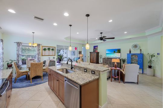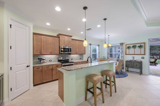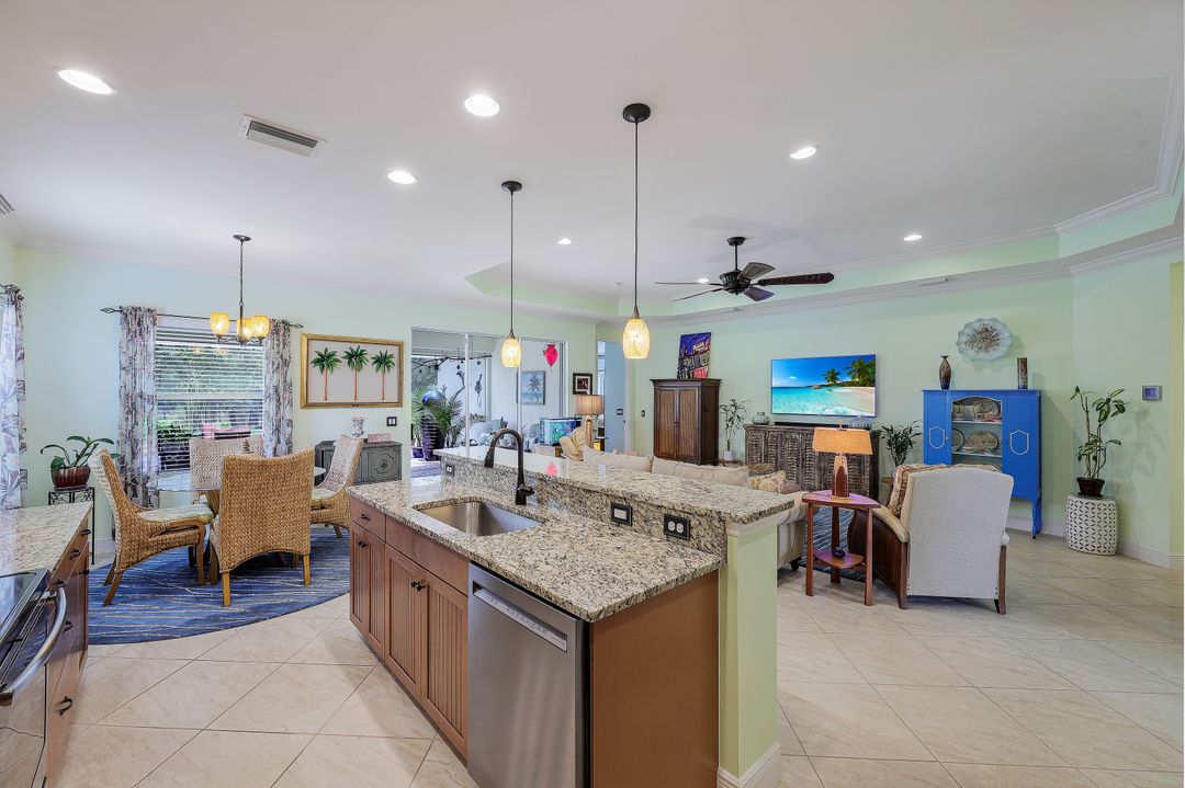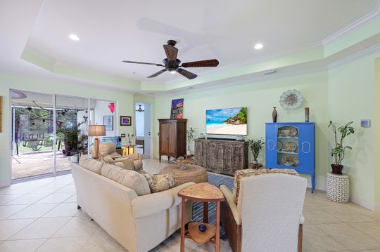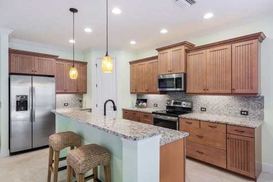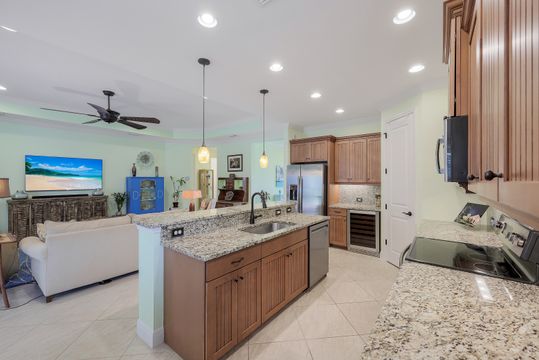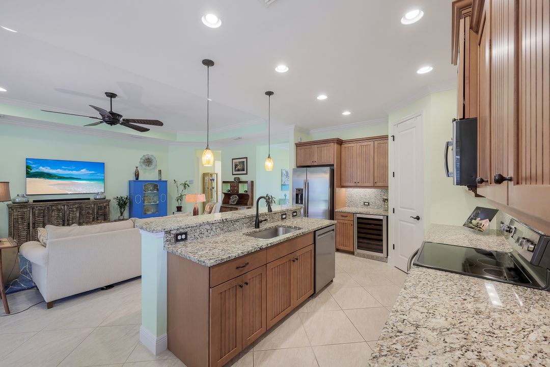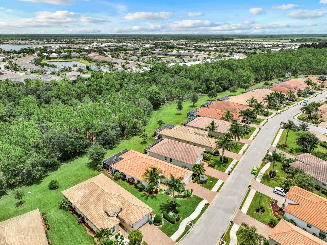 BRIGHT, CLEAN, AND MOVE-IN READY! Beautiful single family residence in Reflection Lakes At Naples with an abundance of upgrades and custom features. What makes this home unique? Let’s start with the huge extended lanai of 798 SqFt to enjoy and entertain on while observing the deer walking past. Add to that the garage is extended with an additional 4 feet of depth making it 22’ x 25’. Features inside include 8-ft doors, crown molding, larger baseboards, in-floor electric outlet, new water heater and newer washer & dryer. For home efficiency the garage door is insulated, a radiant heat barrier was added in the attic, and a stunning impact-resistant stained-glass insert adorns the front entry door. The floorplan is open and airy with a great room, large kitchen island, and den at the front of the home. The kitchen boasts beautiful counters, backsplash, soft-close doors & drawers, installed wine cooler, stainless steel appliances including a super quiet dishwasher. Reflection Lakes offers a lush clubhouse with fitness center, multi-purpose room, resort-style pool, kiddie pool, bocce, and outdoor pavilion. Enjoy an easy drive to downtown Naples, Marco Island, and the beaches.