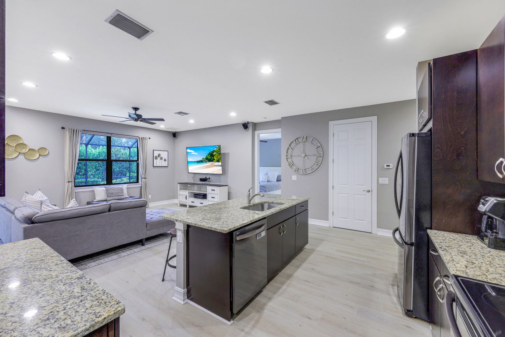This spacious 4 Bedroom plus Loft (First floor Master Suite), 2.5 Bath single family POOL HOME is located in a prime North Naples location at the corner of Vanderbilt Beach Rd & Collier Blvd/951 and is just minutes away from the NEW Founders Square, Logan Landing, Seed to Table, Mercato, Beaches, and I75! Situated in the back of the neighborhood away from any major roads, this home sits on a private and quiet lot with the ability to fence in the rear yard! Inside, you will find new luxury laminate flooring throughout the common areas, plush new carpets in the bedrooms and loft, newer LG black stainless appliances, closet built-in cabinets, and more! Other fine appointments include widened driveway, surround system system in the Great Room, and more! Tuscany Pointe is a gated enclave of just 154 single family homes with LOW FEES of just $260/month which includes landscaping, irrigation system maintenance, and irrigation water!