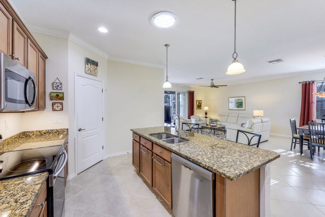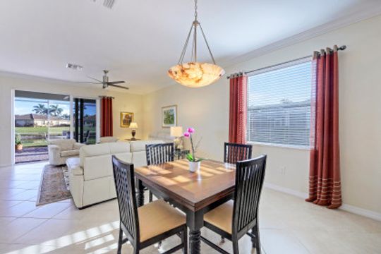 Reflection Lakes offers lots of amenities with low Homeowner’s fees. The Community Clubhouse, Pool, Fitness center and gated entry add to the quiet lifestyle of this neighborhood. The meticulously maintained home includes Impact sliding doors leading to your Southeast facing extended lanai overlooking the lake for beautiful sunrises. There is plenty of room for your private pool. Storm shutters on all windows for added peace of mind. Tucked away on a cul-du-sac with very little traffic, the exterior of the home was upgraded to include Stone finishing on front exterior. The 4 th bedroom is complete with an en-suite bath allowing privacy for guests or family members. Also makes the perfect “work from home” atmosphere. Plenty of shopping and entertainment in this growing area.