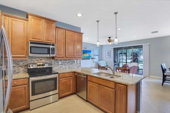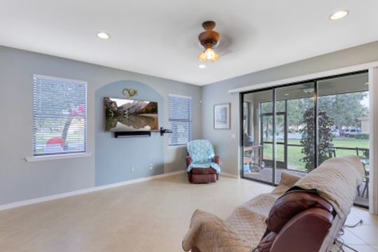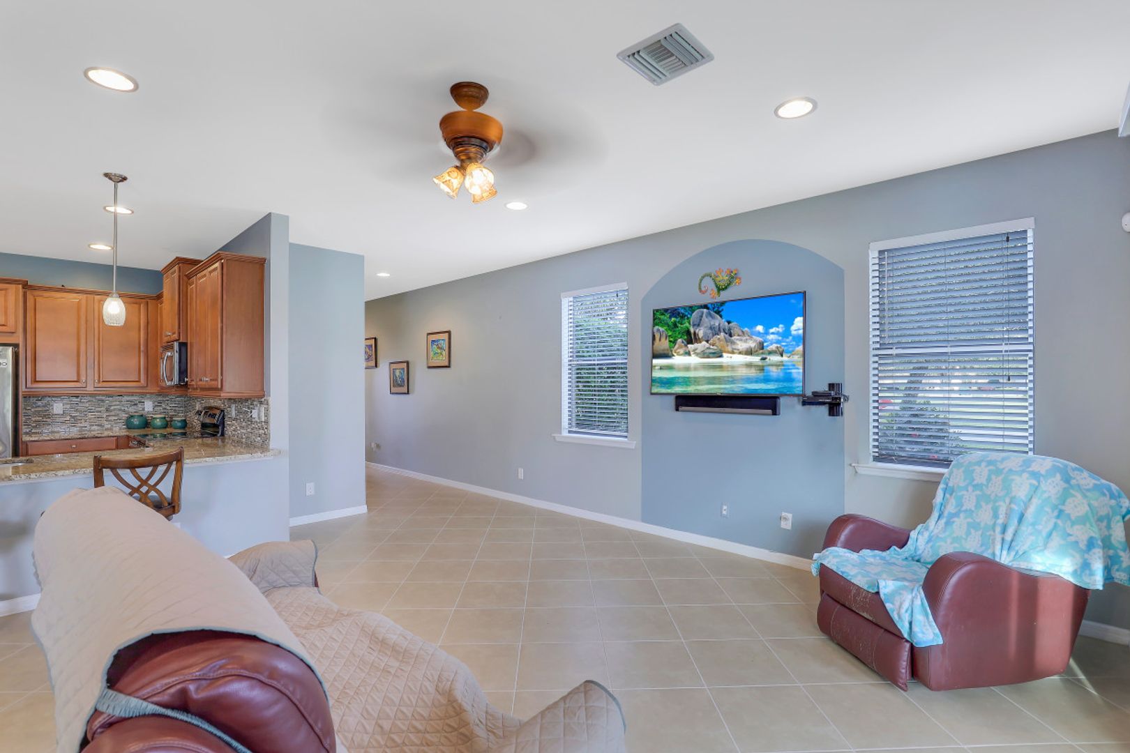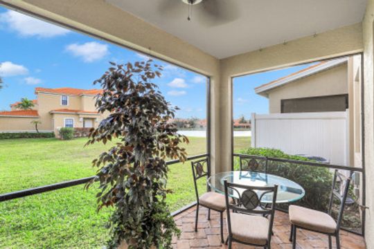 Wonderful large side yard gives you plenty of light in this 2014 build townhome with lake views from your lanai. Larger floorplan and newer build make this an enviable choice with three bedrooms plus den and two and a half baths. Two car garage.