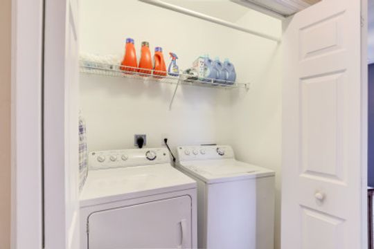 Extra storage in large pantry with barn door, newly painted kitchen and steam cleaned and newly grouted and sealed porcelain tile floors with tile on the diagonal make this easy to move into. Friendly and Fun Neighborhood. Each bedroom has a walk-in closet. Laundry is upstairs too!