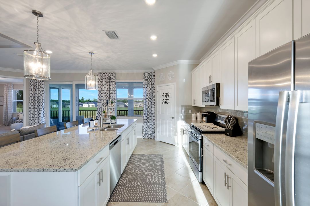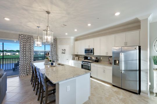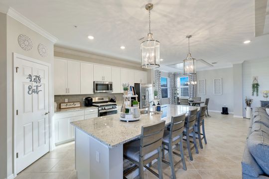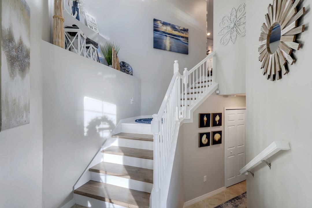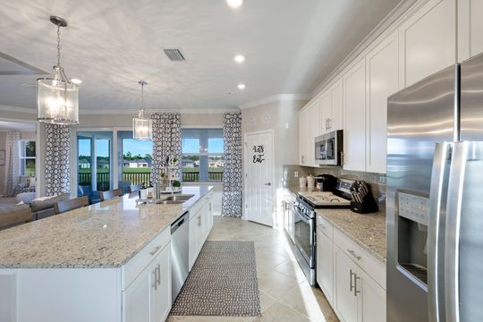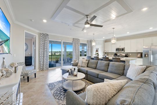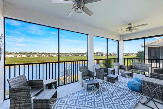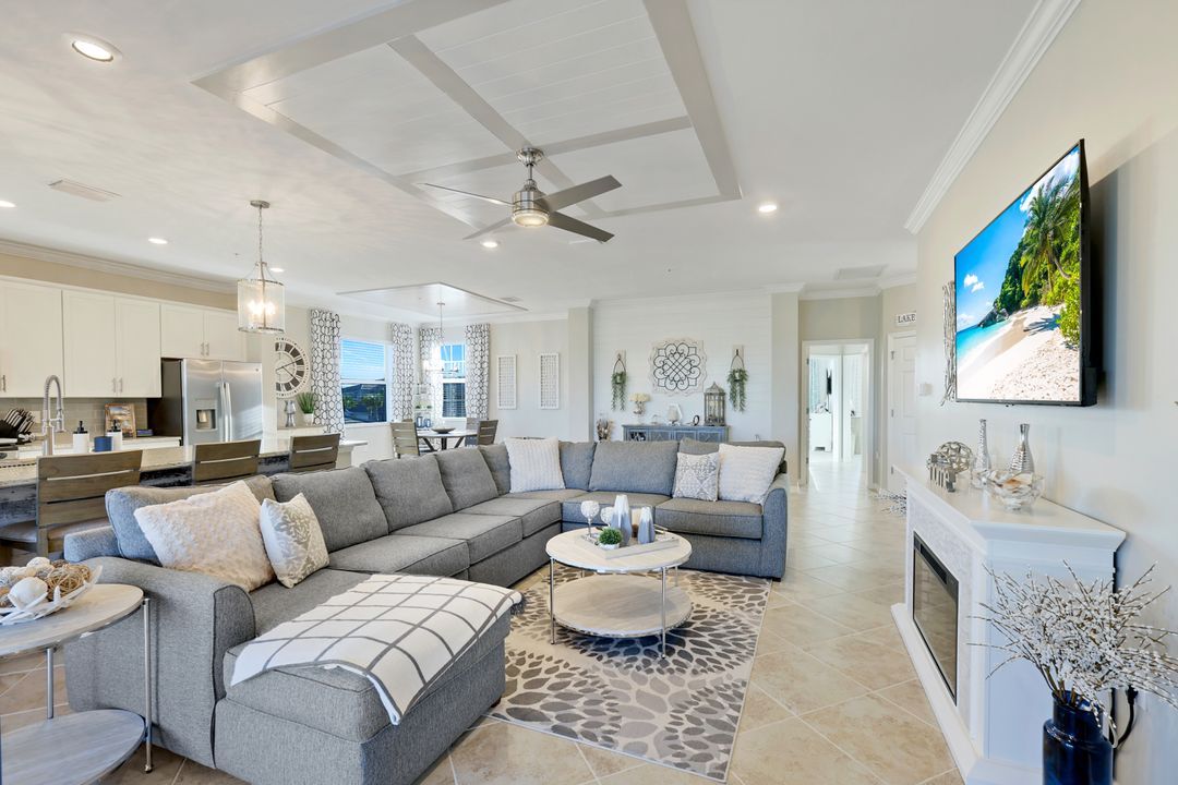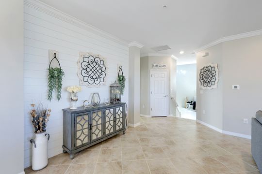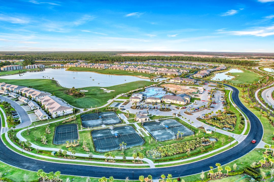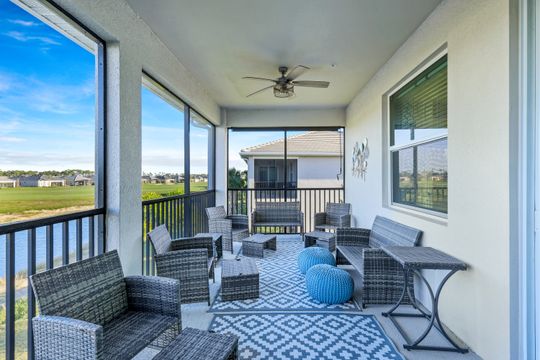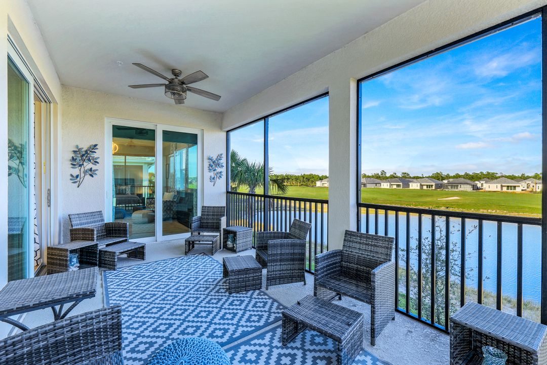 Seller financing option available. Welcome to this beautiful second-floor coach home in the heart of Babcock National. This spacious home offers breathtaking morning views over the serene lake and golf course. Featuring three bedrooms and two bathrooms, this home boasts many upgrades throughout, including impressive custom woodworking, shiplap walls, hardwood on the staircase, and thoughtfully chosen light fixtures and curtains that add elegance to every room. It offers a convenient 2.5-car garage, providing ample space for your vehicle, toys, and storage needs. With this furnished split floor plan, you'll enjoy privacy and flexibility. GOLF MEMBERSHIP is included, offering 18 challenging holes with an aqua driving range and putting green, pro shop, and more. Enjoy tennis, pickleball, tropical community pool/spa, full fitness facility, sauna, shopping, restaurants, and the WOW lifestyle offered at amenity-rich Babcock National!